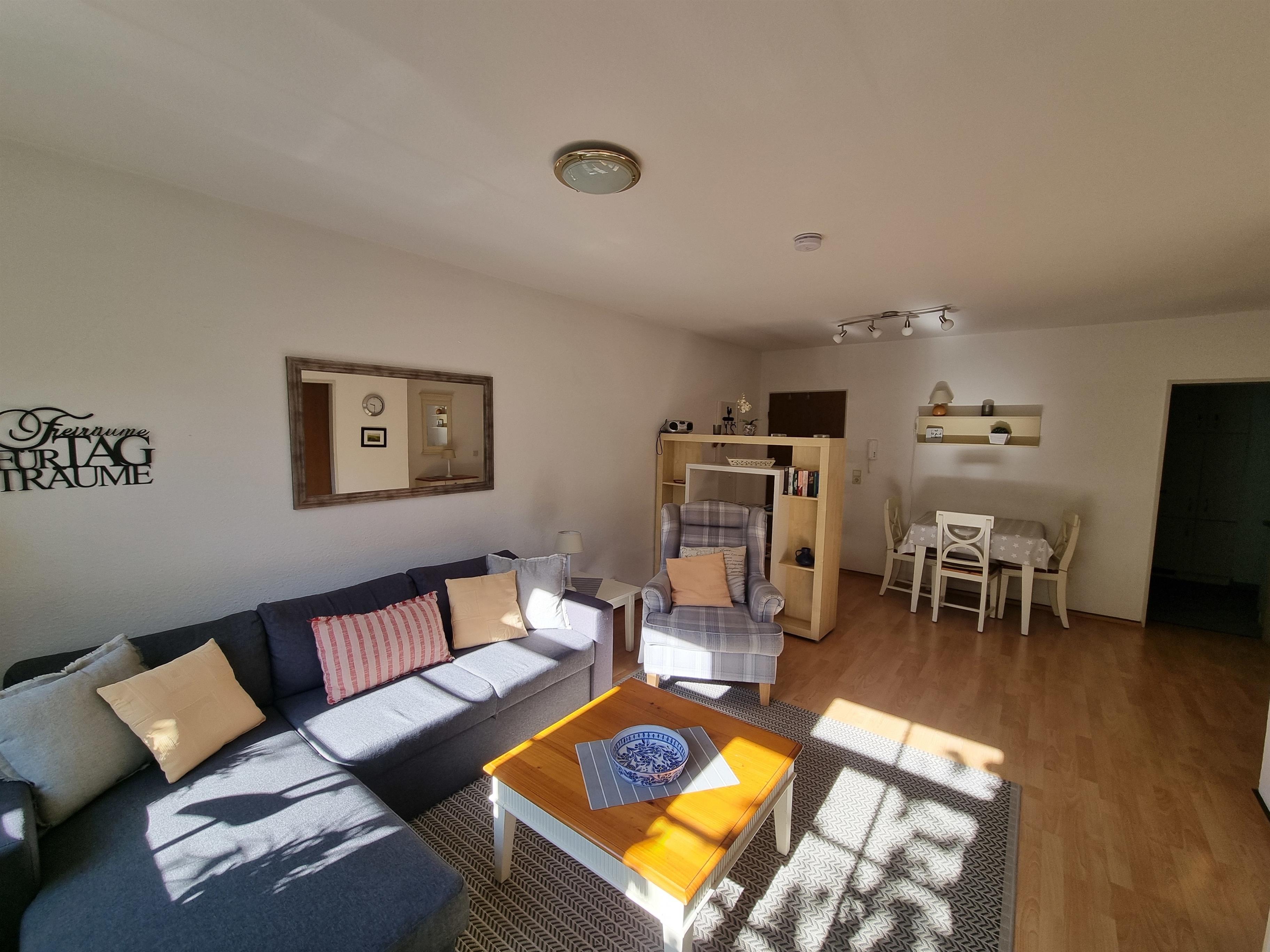 Moderne Ferienwohnung in Wyk, 100m vom Strand, mit WLAN, Küche, TV und gemütlichem Wohnbereich.