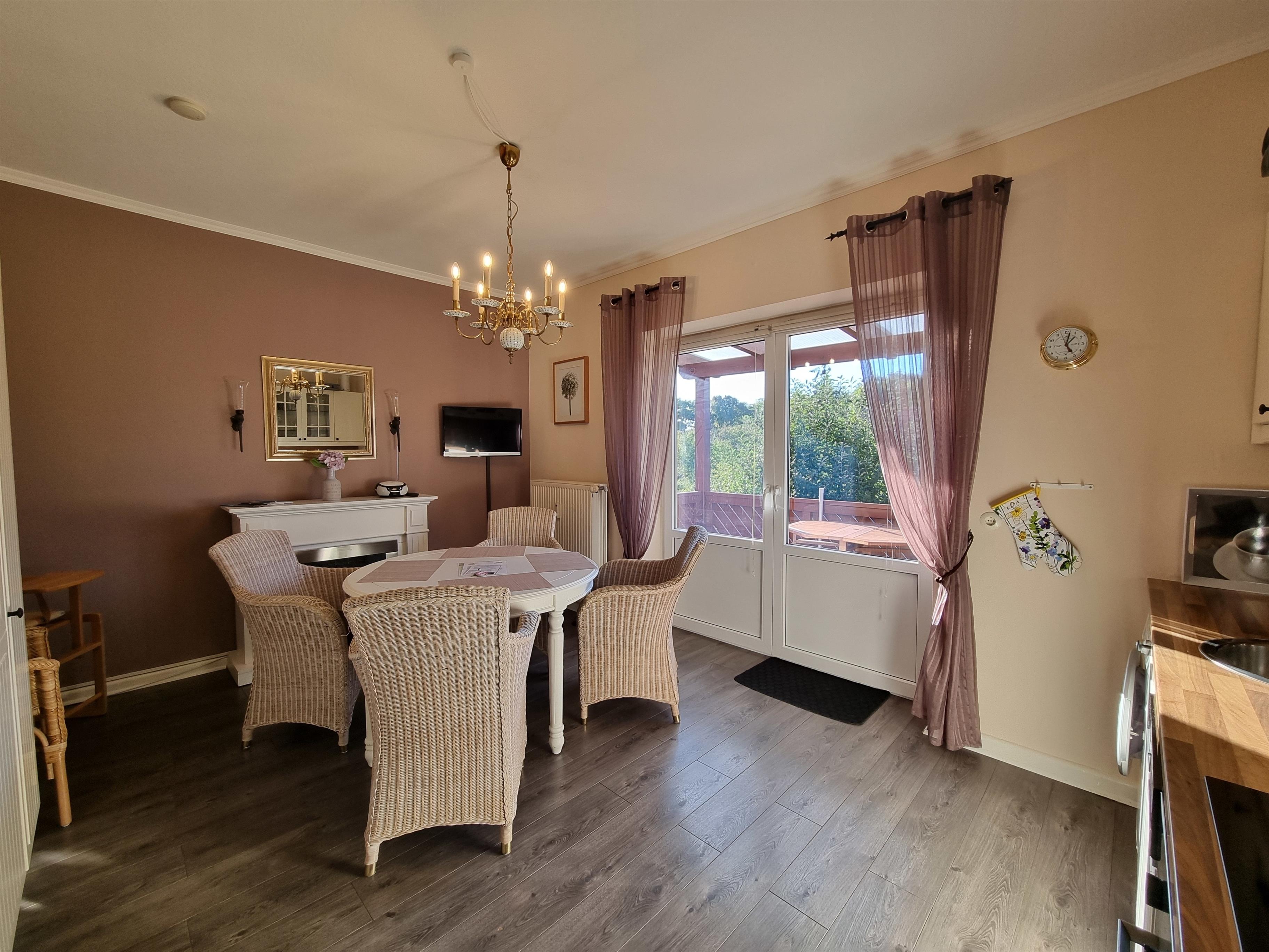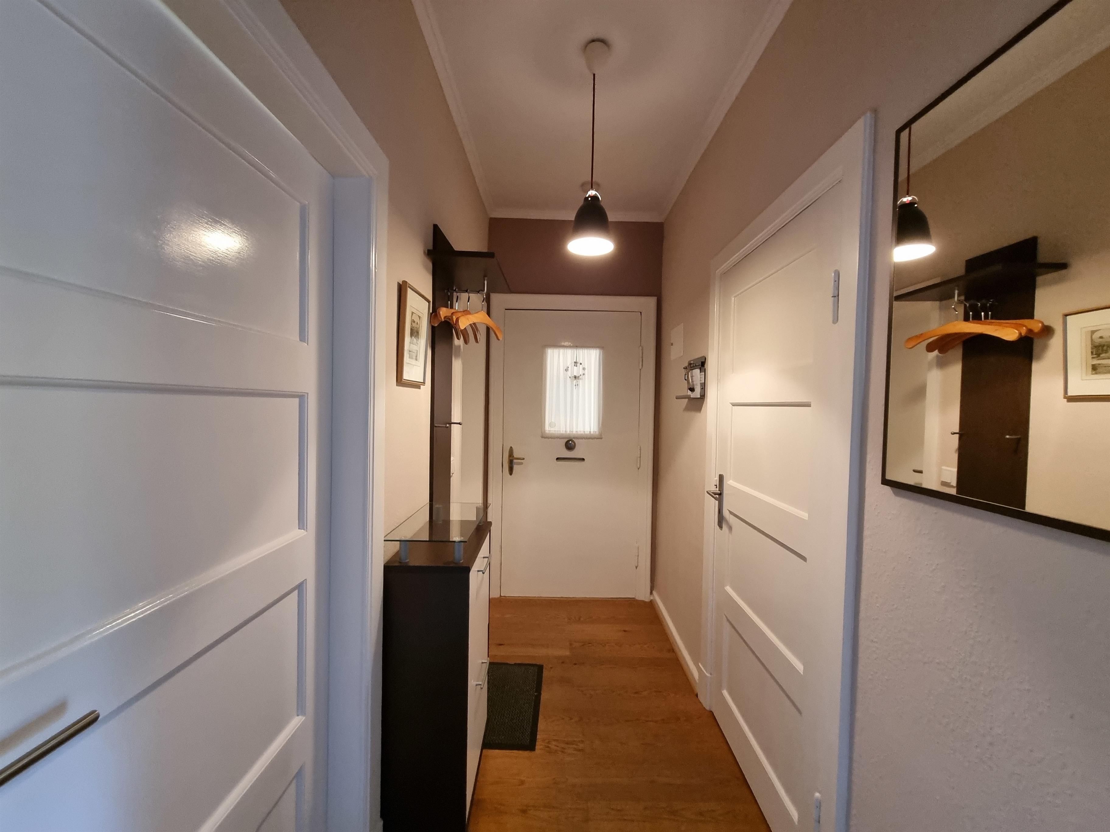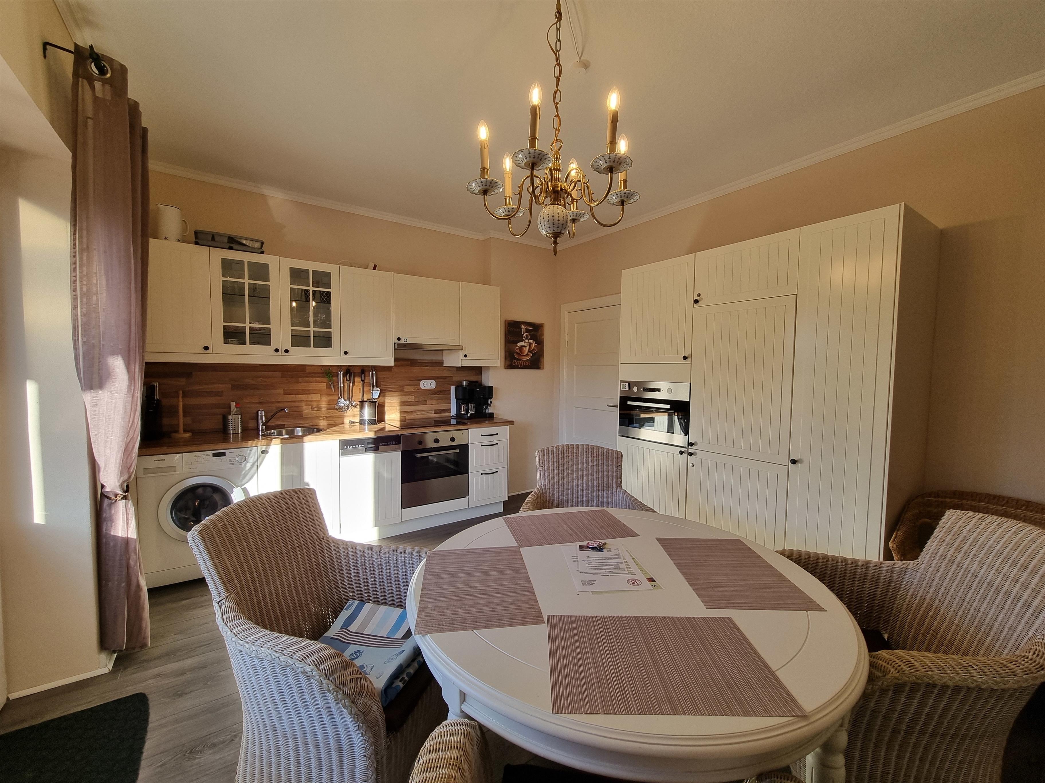 In der voll ausgestatteten Küche finden Sie alles, was Sie zum Kochen benötigen. Von hier aus gelangen Sie direkt auf den schönen Balkon, auf dem Sie die Ruhe genießen und entspannt in den Tag starten können. Ein Waschtrockner steht Ihnen ebenfalls zur Verfügung.