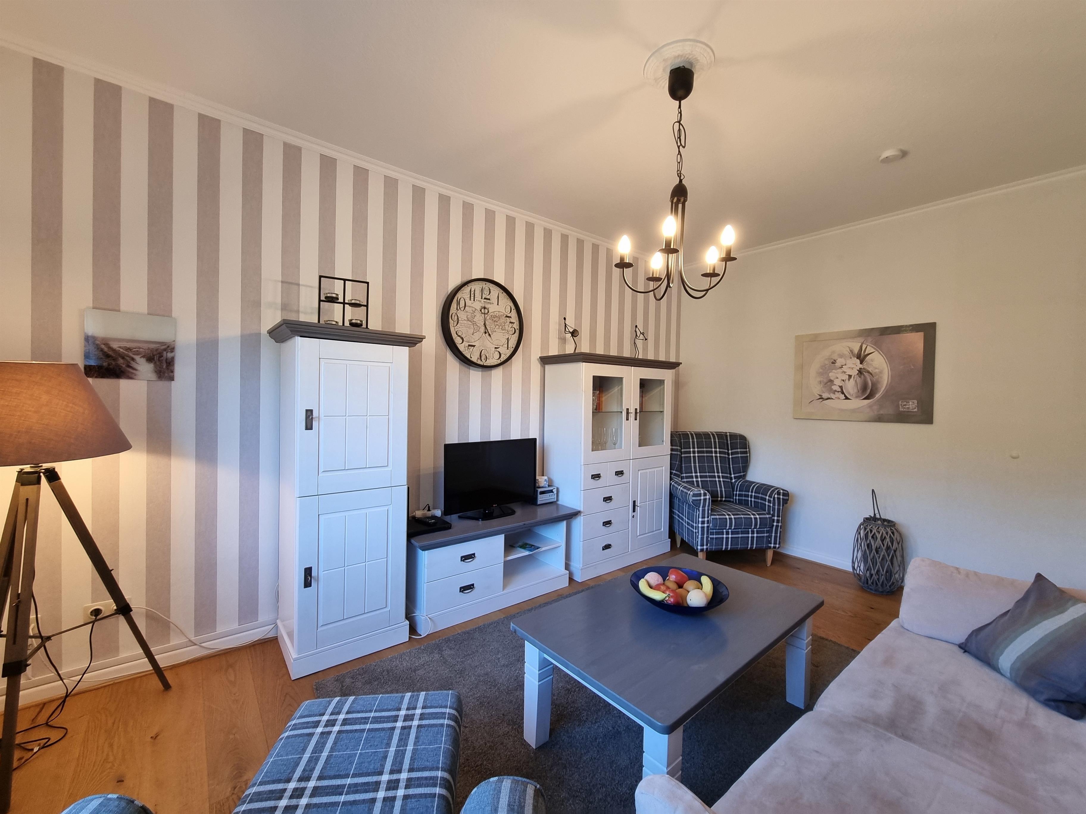 Das Schlafzimmer verfügt über ein komfortables Doppelbett 1,80 m x 2,00 m und einen großzügigen Kleiderschrank. Es ist außerdem ausreichend Platz vorhanden, um ein Kinderbett aufzustellen. Bettwäsche und Handtücher sind für 25 € pro Person inklusive. Das helle und freundliche Wohnzimmer bietet neben einem gemütlichen Sofa, das als zusätzliche Schlafgelegenheit dient, auch eine Auswahl an Büchern und Spielen für Ihre Unterhaltung.