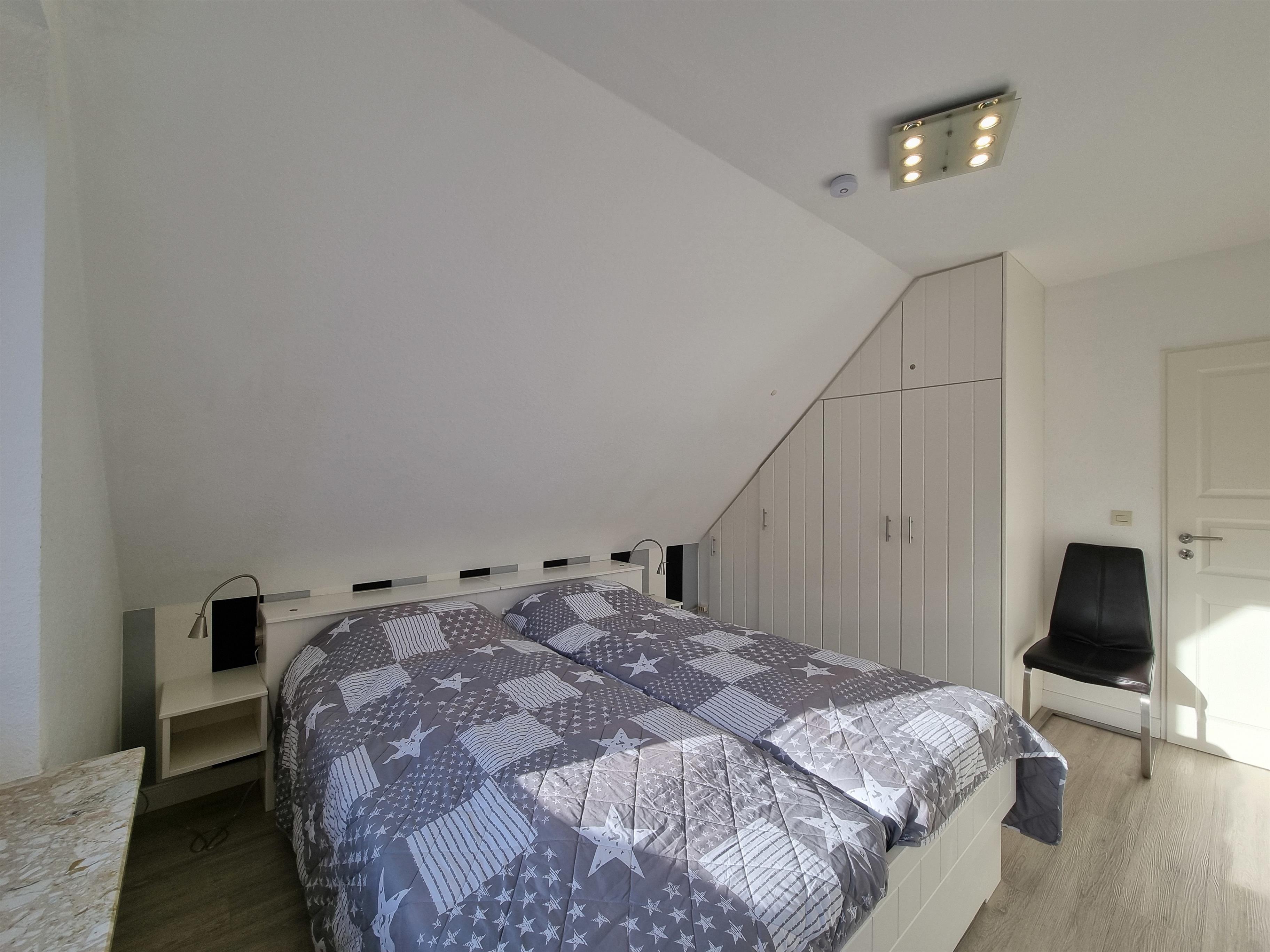 Das Schlafzimmer ist mit einem komfortablen Einbaubett (1,80 × 2,00 m) mit offenem Fußende ausgestattet. Von hier aus haben Sie Zugang zum Ostbalkon, auf dem Sie die Morgensonne genießen können. In den vorhandenen Einbauschränken steht ausreichend Stauraum für Ihr Gepäck zur Verfügung.