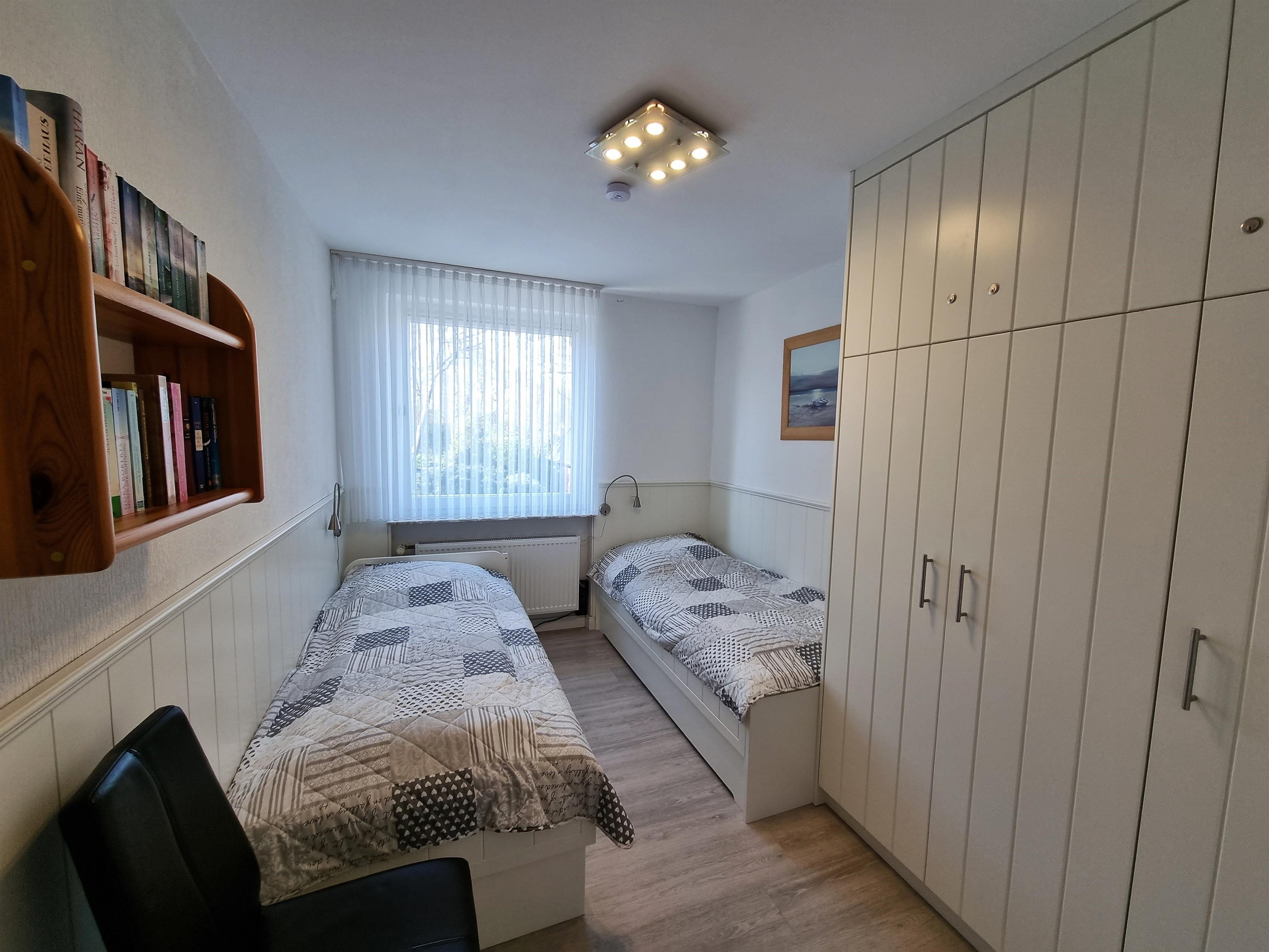 Das Kinderzimmer verfügt über zwei Einzelbetten (je 0,90 × 2,00 m) sowie einen Kleiderschrank.