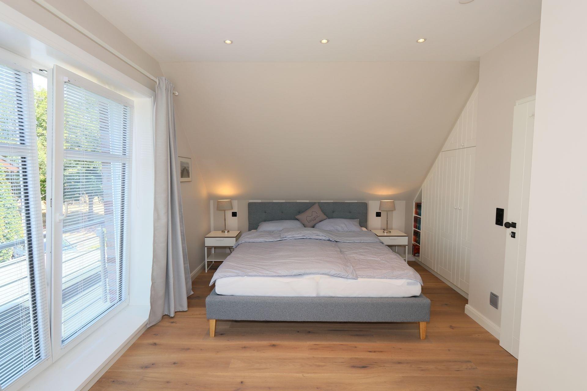 Das Ferienhaus ist ca. 130 qm groß und bietet 4 Schlafzimmer für insgesamt 7 Personen. Zwei helle freundliche Badezimmer mit Duschbereich, im Erdgeschoss barrierearm, sorgen dafür, dass es am Morgen nicht zu Wartezeiten kommt. Im großzügig und gemütlich eingerichteten Wohn-Esszimmer befindet sich die modern eingerichtete Küche, in der Sie alles finden, was für einen gelungenen Urlaub nötig ist. Von hier haben Sie Zugang zur Süd-Westterrasse und Garten mit Liegewiese. Im Erdgeschoss befindet sich ein Schlafzimmer mit Doppelbett und ein Bad. Ein Hauswirtschaftsraum mit Waschmaschine und Trockner sorgt für weiteren Komfort. Die Räumlichkeiten im Erdgeschoss sind barrierearm. Die Türen innerhalb des Erdgeschosses haben ein Durchgangsmaß von 86 cm. Der Zugang für z. B. Rollstuhlfahrer ist über die Eingangstür bei der Terrasse möglich. Das Obergeschoss bietet 2 weitere Schlafzimmer mit Doppelbett, sowie 1 Schlafzimmer mit 2 Einzelbetten. Außerdem das zweite Bad. Dieses Haus ist somit gerade für große Familien gut geeignet. Zwei PKW Stellplätze und ein abschließbares Fahrradhäuschen befinden sich auf dem Grundstück. Zwei Pkw-Stellplätze inkl. Ladestation für ein E-Auto, Elektrogrill für die Terrasse. Fußbodenheizung im Bad. Ein kleiner Hund ist gegen Gebühr willkommen.