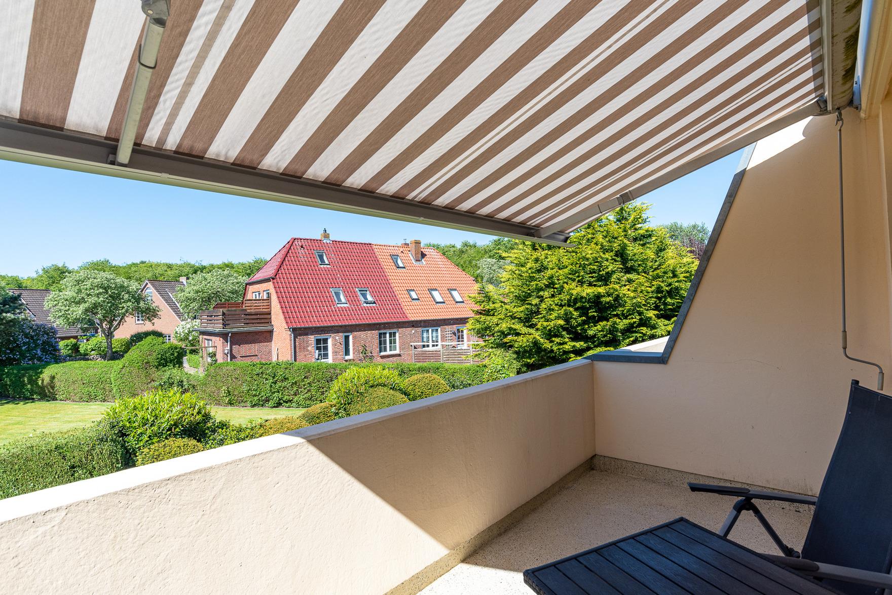 Moderne, ruhige Ferienwohnung mit großem Südbalkon nahe Sandwall in Wyk auf Föhr.