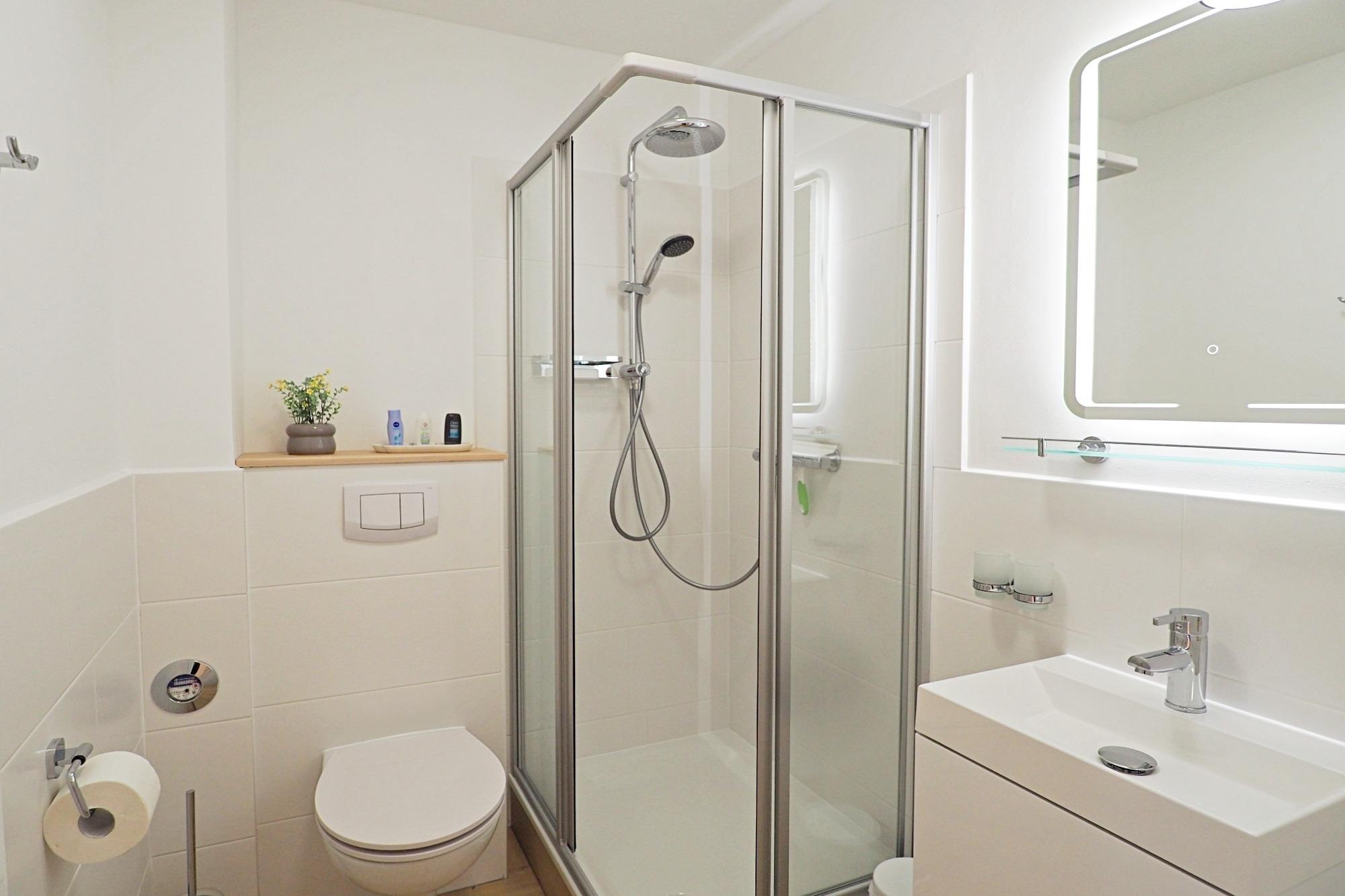 Es erwartet Sie ein neues Schlafzimmer mit einem Doppelbett (1,60m x 2,00m), das neue Badezimmer mit Regendusche und der komplett neu eingerichtete Wohn- und Essbereich mit neuer Küchenzeile.