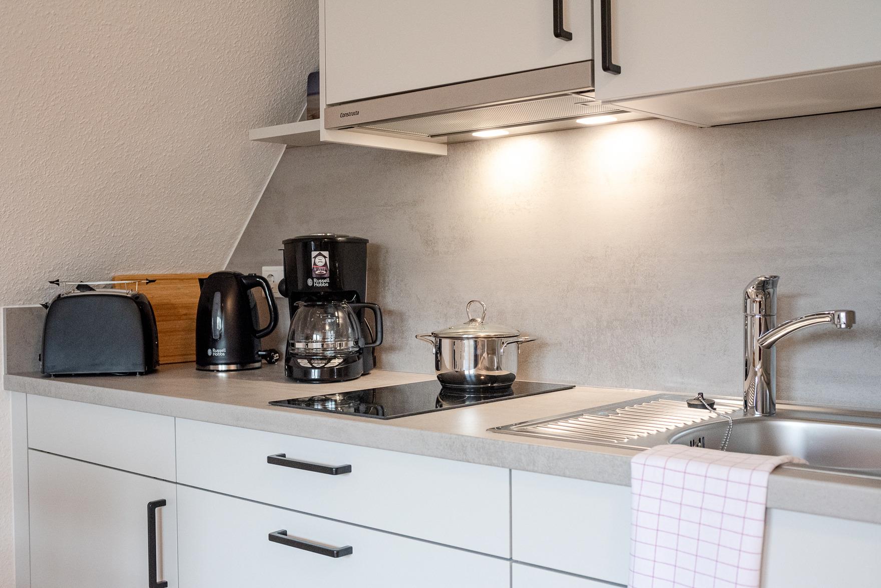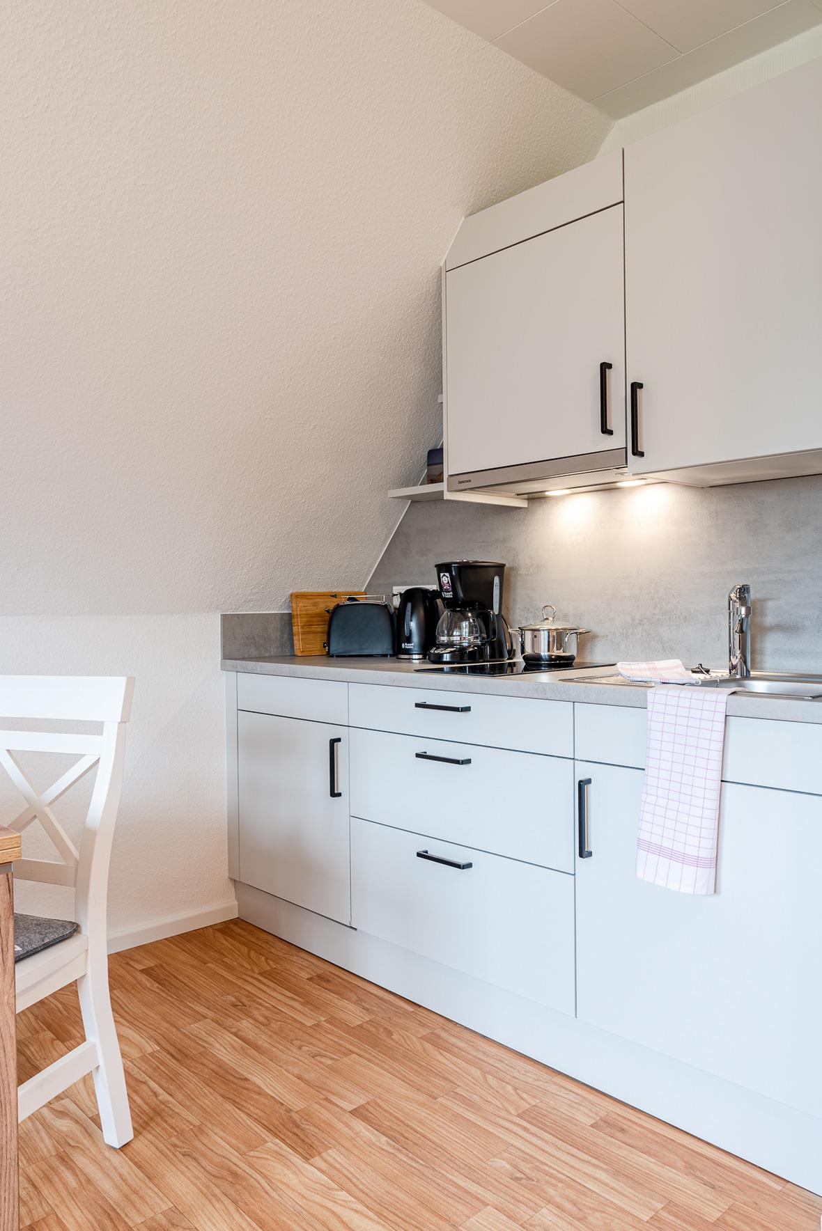 Diese Obergeschossferienwohnung liegt am Rande der "Löwenhöhle" von Wyk. Von hier aus hat man kurze Wege in die Innenstadt oder in die Dörfer. Die Wohnung verfügt über eine kleine, offene Küchenzeile. Eine kleiner Esstisch, eine Kaffeemaschine, Mikrowellenbackofen, Toaster und ausreichend Geschirr, Gläser, Teller, Becher etc. für bis zu 2 Personen gehören zur Ausstattung.