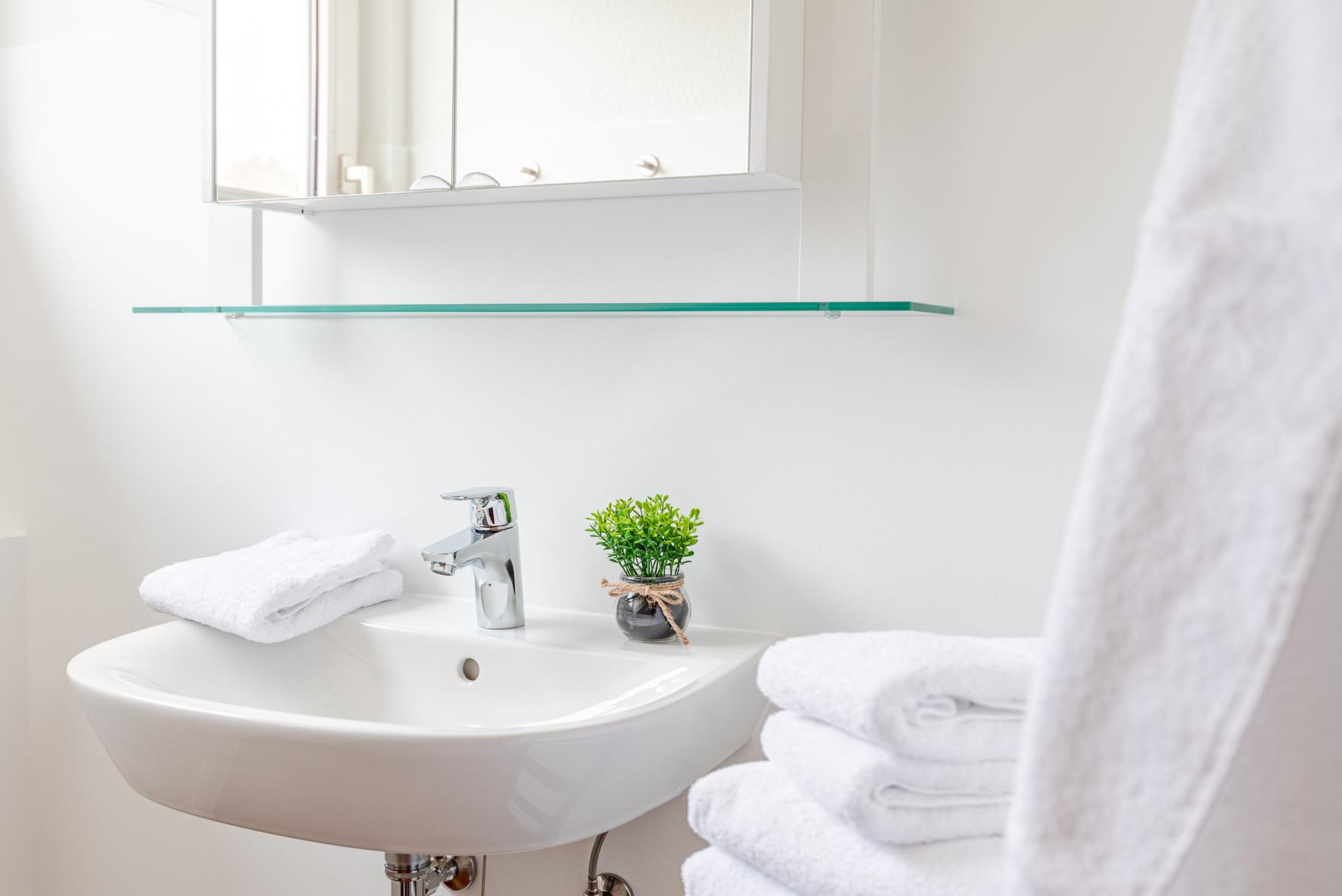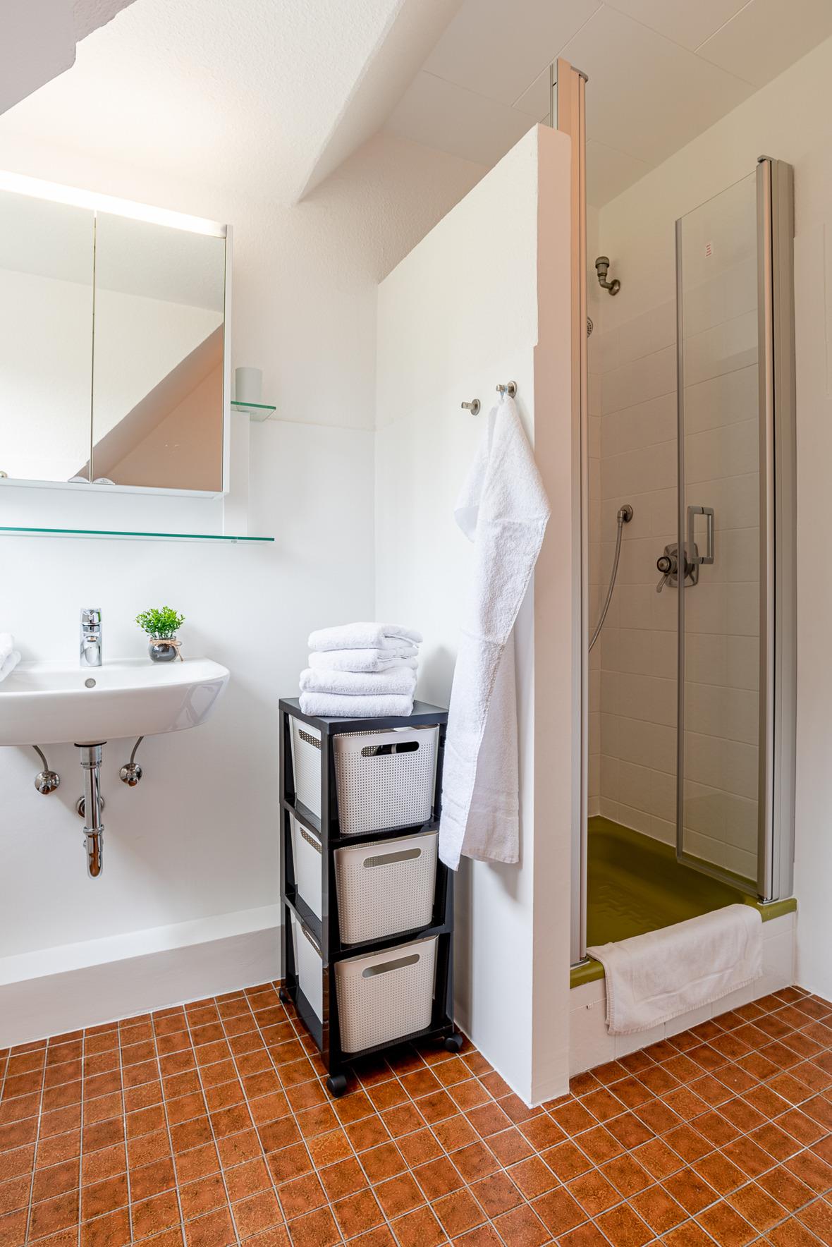 Im Vorflur steht ein Abstellraum für Koffer zur Verfügung. Ebenfalls befindet sich dort ein Staubsauger, ein Bügelbrett mit Bügeleisen und diverse Reinigungsmittel.