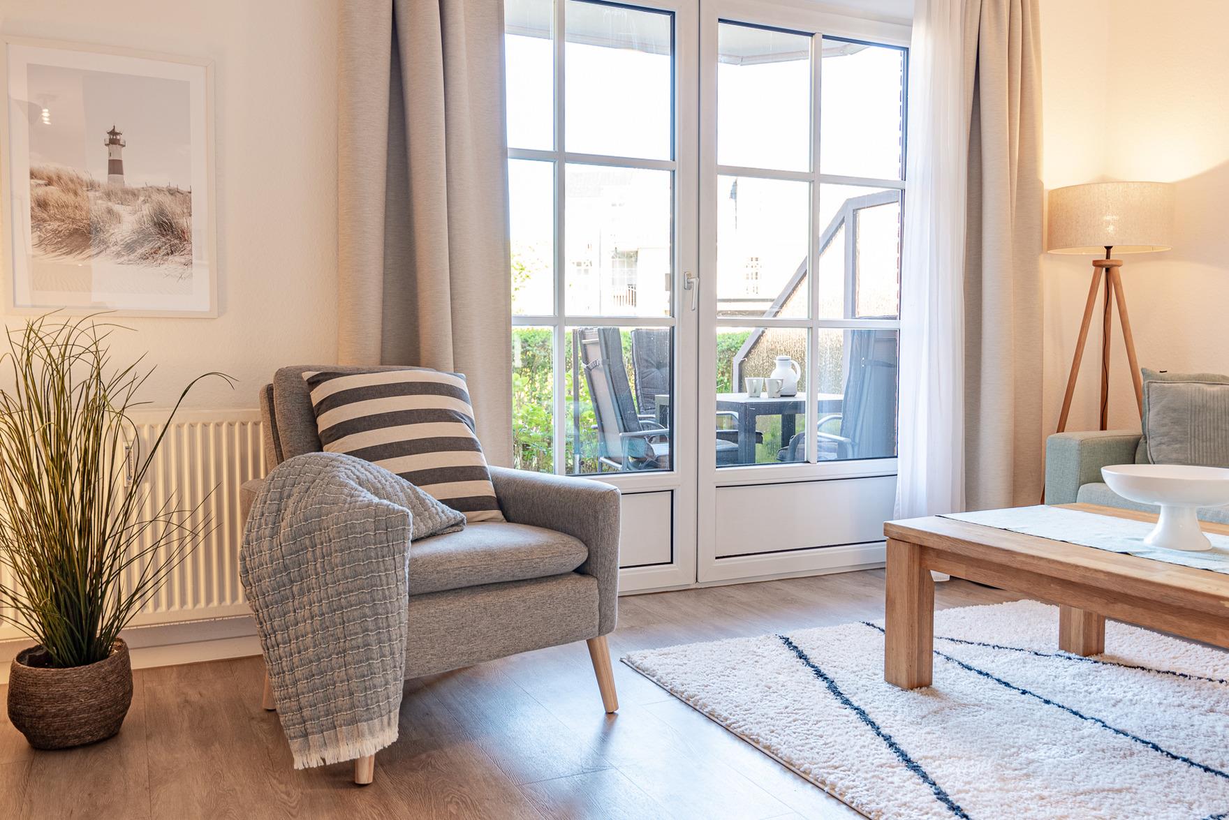 Gemütliche Ferienwohnung am Südstrand in Wyk mit Terrasse, WLAN und Parkplatz, ideal für erholsame Tage am Meer.