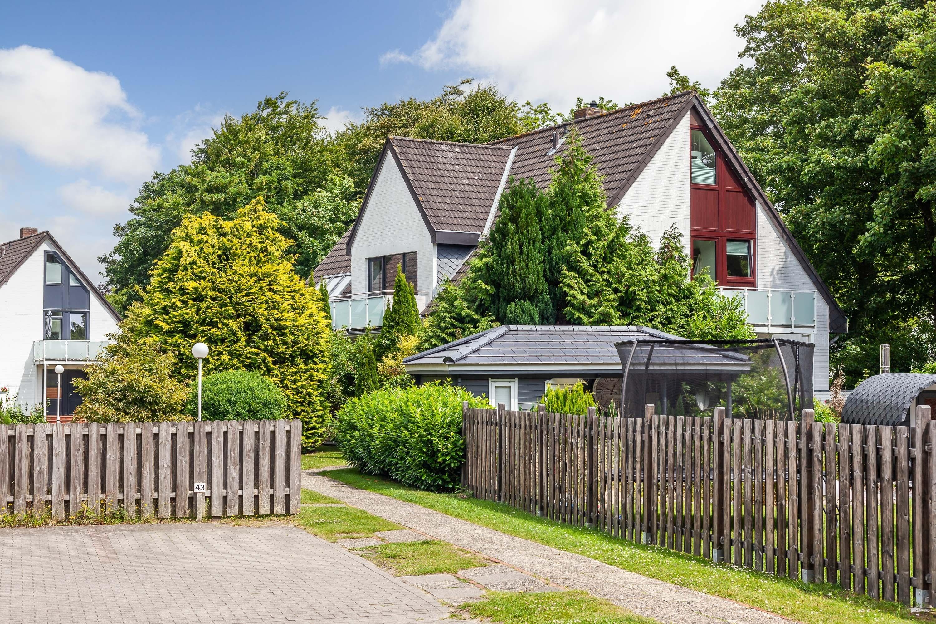 Das Haus liegt am Südstrand von Wyk, ca. 300 m vom Strand entfernt. In unmittelbarer Nähe befinden sich Bushaltestelle, Gastronomie und Einkaufsmöglichkeiten. Ein Spielplatz gehört ebenfalls zur Ferienanlage.