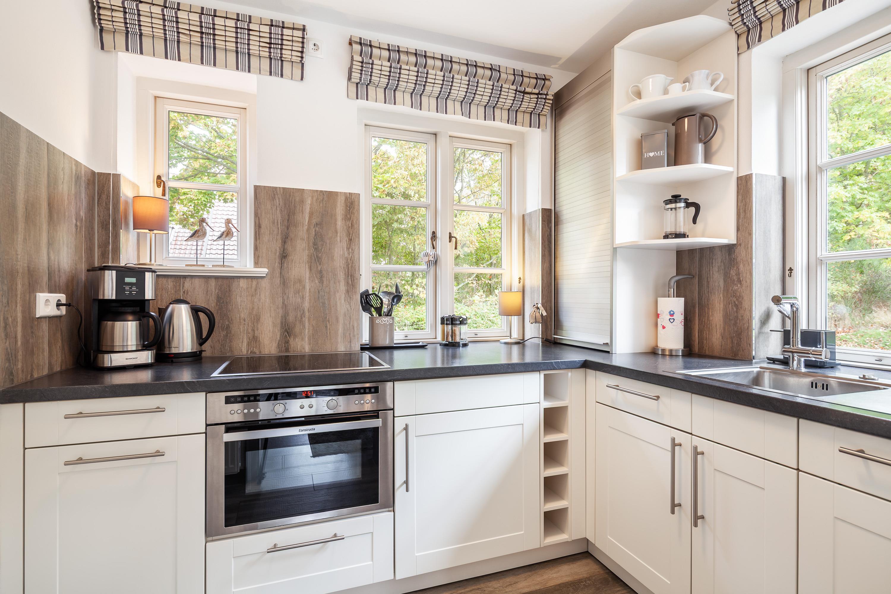 Auch die moderne Küche mit Backofen/ Mikroelle, Herd mit Ceranfeld, Kühlschrank sowie Geschirrspülmaschine lässt keine Wünsche offen.