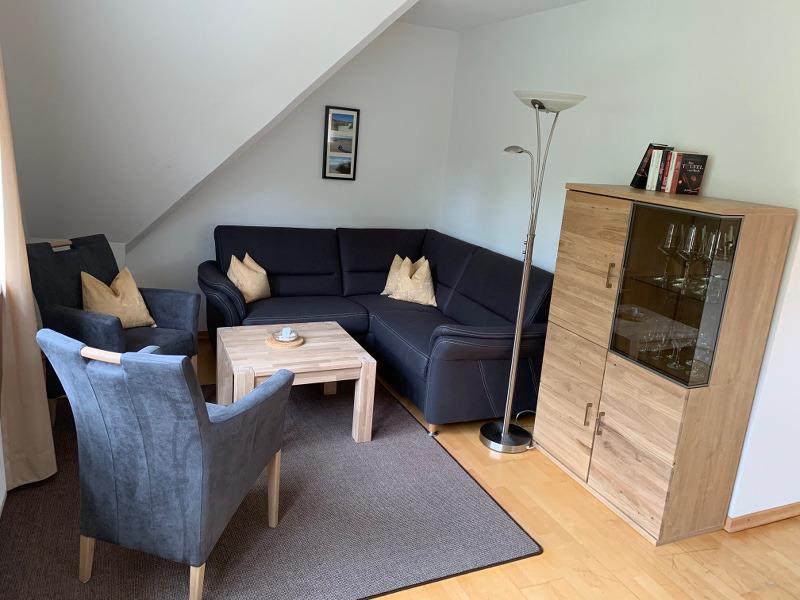 Die Oberschosswohnung Nr. 4 bietet Platz für zwei bis vier Personen. Ein großzügiges und helles Wohnzimmer mit bequemen Ecksofa, ein Essplatz sowie eine moderne Küchenecke lassen keine Wünsche offen. [nbsp]Ein Schlafzimmer mit Doppelbett sowie ein Duschbad mit Fenster gehören ebenfalls zur Wohnung.