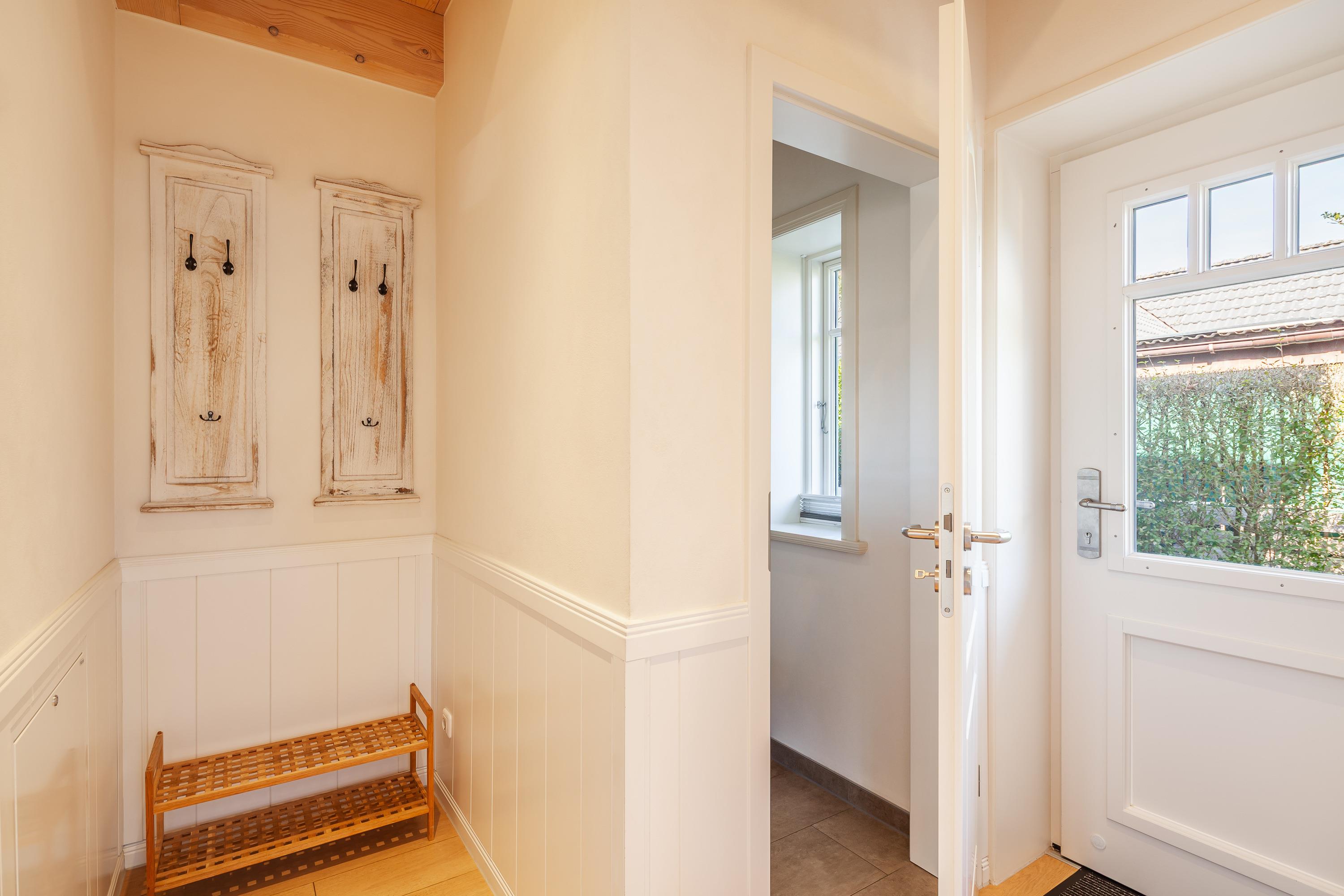 Die moderne Unterkunft wurde im Sommer 2015 fertiggestellt. Eiche-Dielenböden sowie Fliesen in Betonoptik im Erdgeschoss und Design-Böden im Obergeschoss, die moderne Küche und die eigene Sauna zeugen von bester Qualitätsausstattung. Der Tischler leistete hier Glanzarbeiten bis ind Detail: sichtbare Holzdecken im Erdgeschoss, Holzfenster, Einbauschränke.