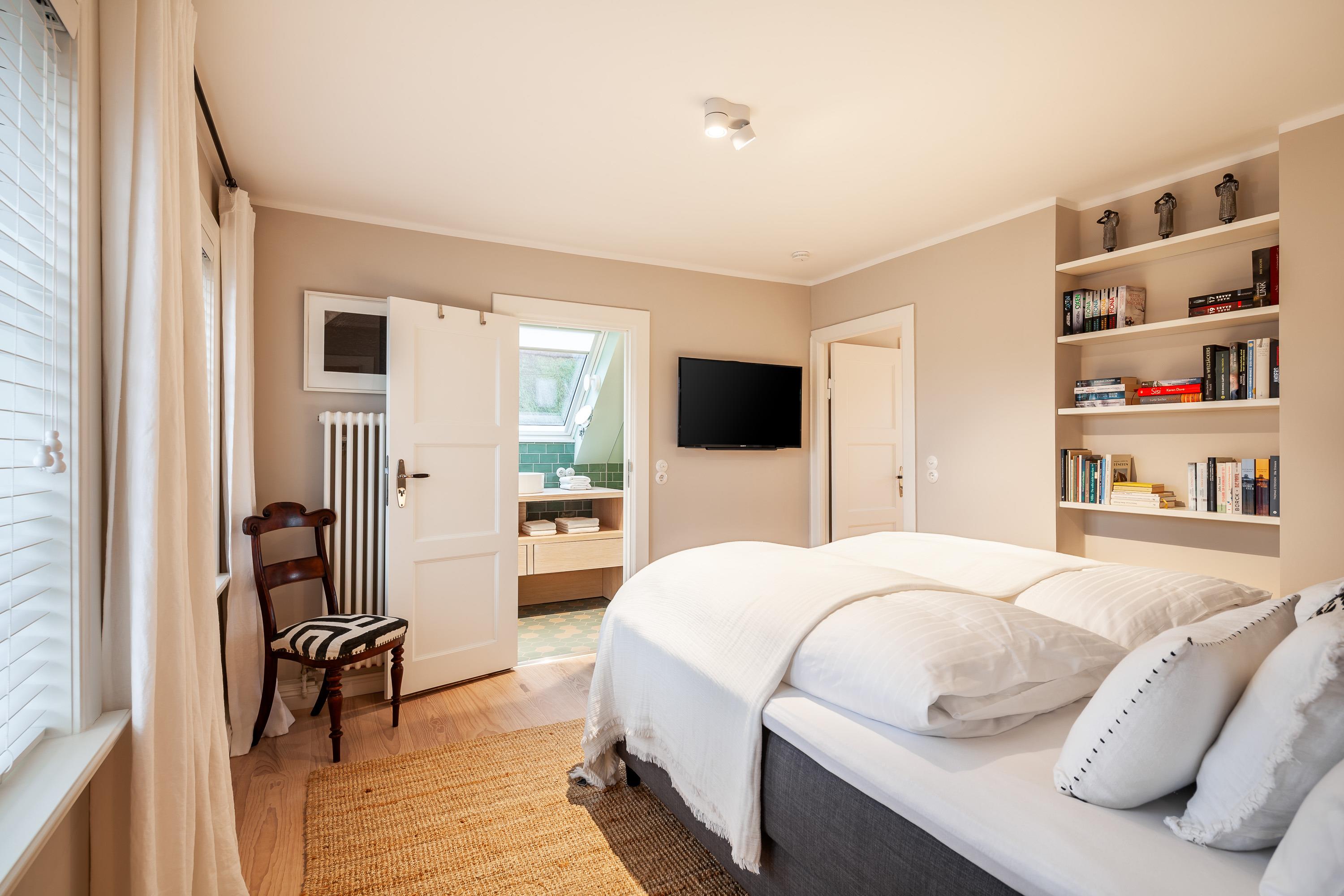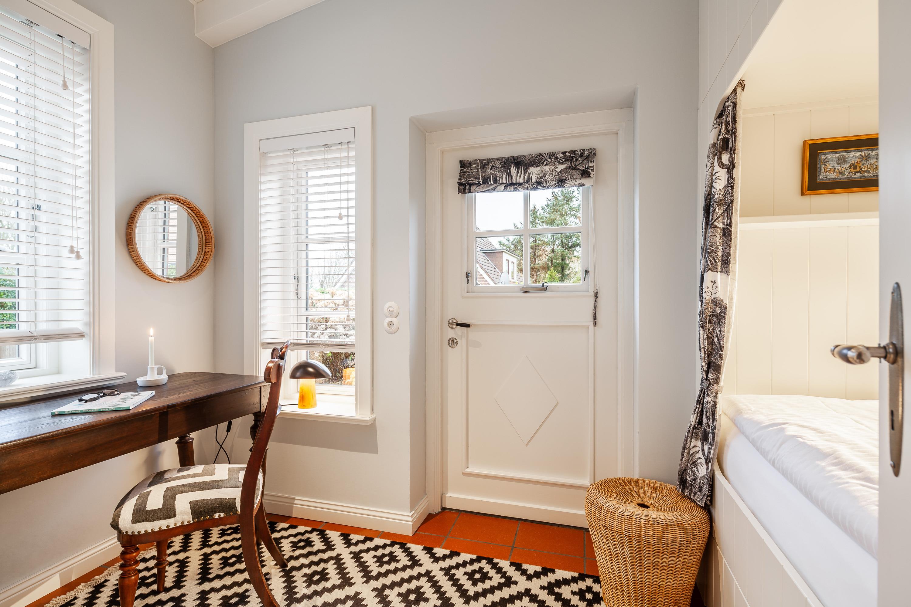 Thies Huus wurde in den 1920er Jahren von dem Föhrer Schmied Matthias Lerche erbaut. Im Frühjahr 2020 wurde das Haus komplett saniert und im Obergeschoss entstanden zwei Schlafzimmer mit Boxspringbetten und jeweils einem angrenzenden Duschbad mit WC. Im Anbau entstand ein kleines Studierzimmer mit Schlafalkoven, sodass bequem 4 – 5 Personen im Haus übernachten können. Im EG befindet sich ein weiteres Bad mit Wanne und WC.
