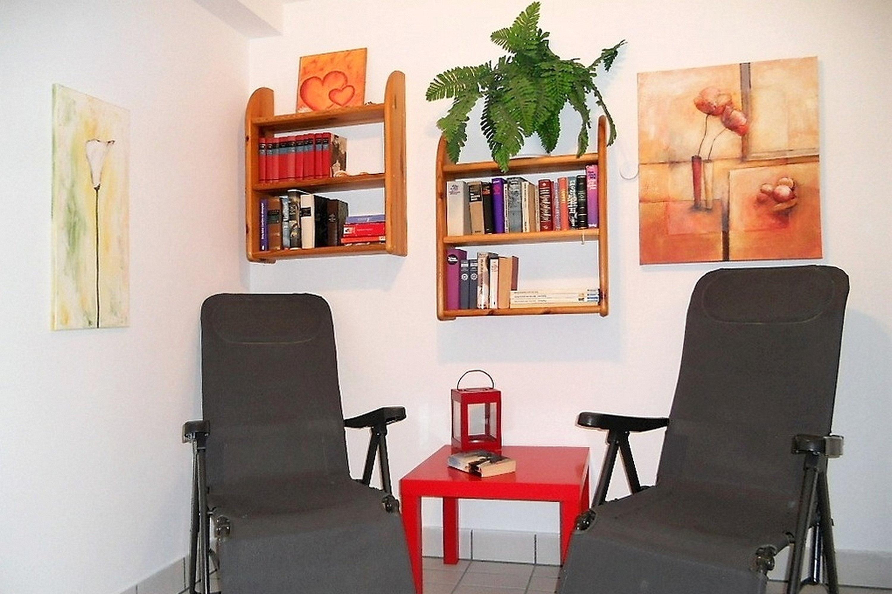 Die Wohnung Apfelblüte liegt im Haus Sommergarten, einer großen Ferienhausanlage mit gemütlichen Sitzmöglichkeiten. Für unsere kleinen Gäste gibt es ausreichend Platz zum Toben und selbstverständlich Spielmöglichkeiten. Die zentrale Lage in der Badestraße ist der ideale Ausgangsort für Ausflüge. Das Aquafoehr mit seinem Schwimmbad, Sauna und Wellnessangeboten, die Wyker Innenstadt, das Friesenmuseum und der schöne Strand sind in wenigen Minuten zu erreichen. Im Untergeschoss des Hauses 40a befindet sich auch ein hauseigenes Schwimmbad (kostenfrei), ein Ruheraum und eine Dampfsauna (gegen Gebühr) sowie ein Dampfbad(gegen Gebühr)und einige Fitnessgeräte (kostenfrei) zur gemeinschaftlichen Nutzung. Münzwaschmaschine und Münztrockner stehen zur gemeinschaftlichen Nutzung ebenfalls zur Verfügung. Zur Wohnung Apfelblüte gehört ein eigener Parkplatz.