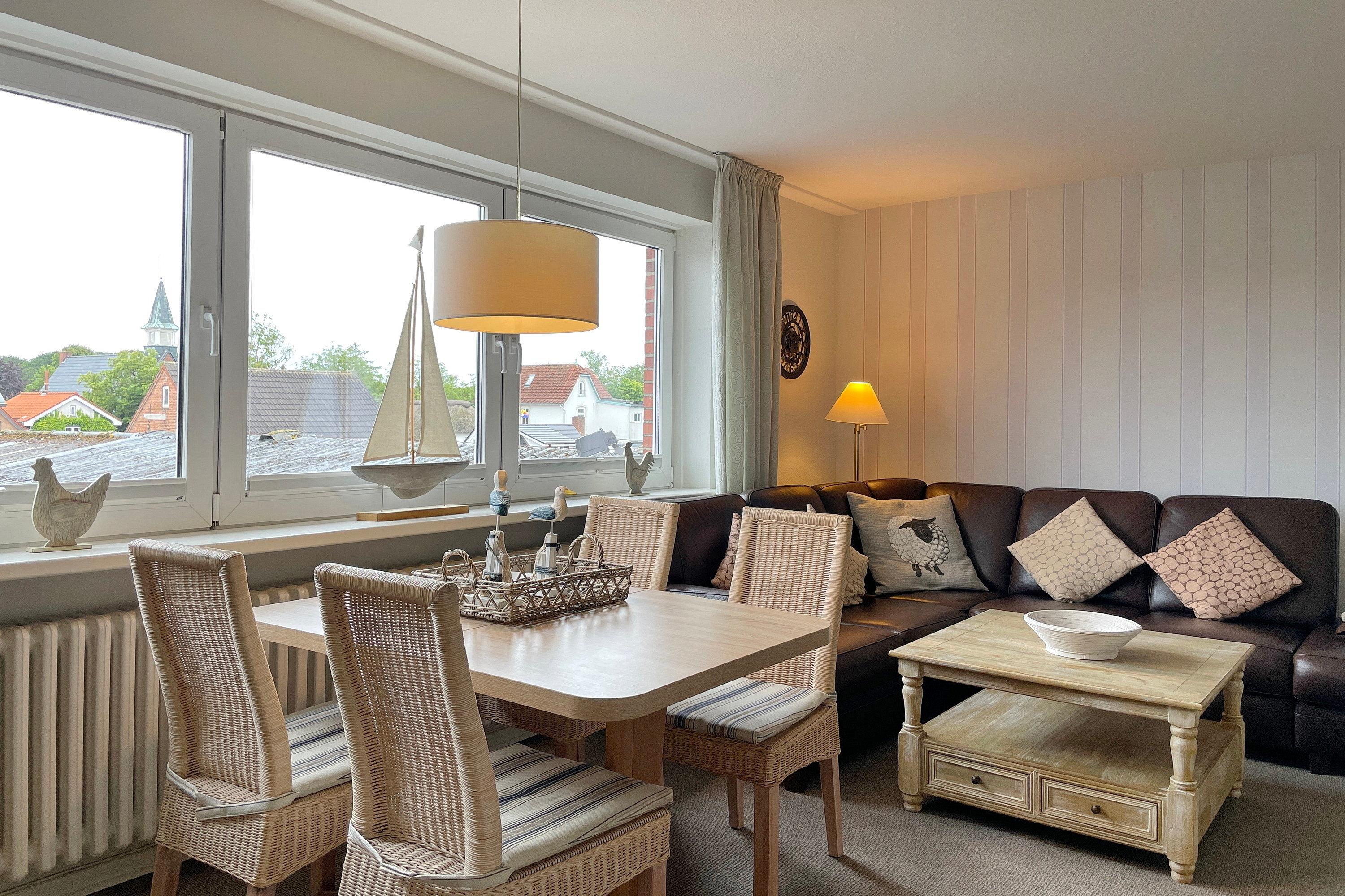 Beim Essen bietet sich Ihnen ein herrlicher Blick weit über die Dächer der umliegenden Häuser bis zur Mühle und auf dem großen Leder-Ecksofa findet die ganze Familie Platz!