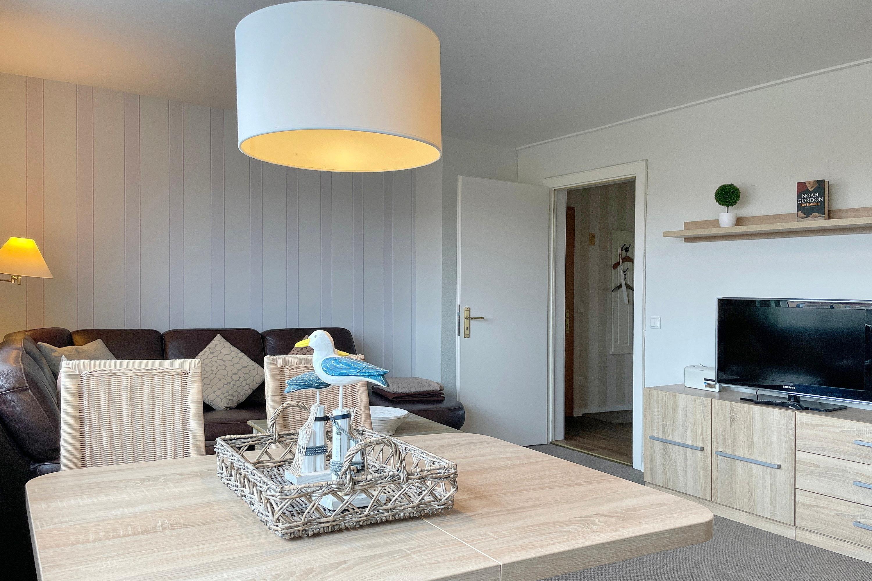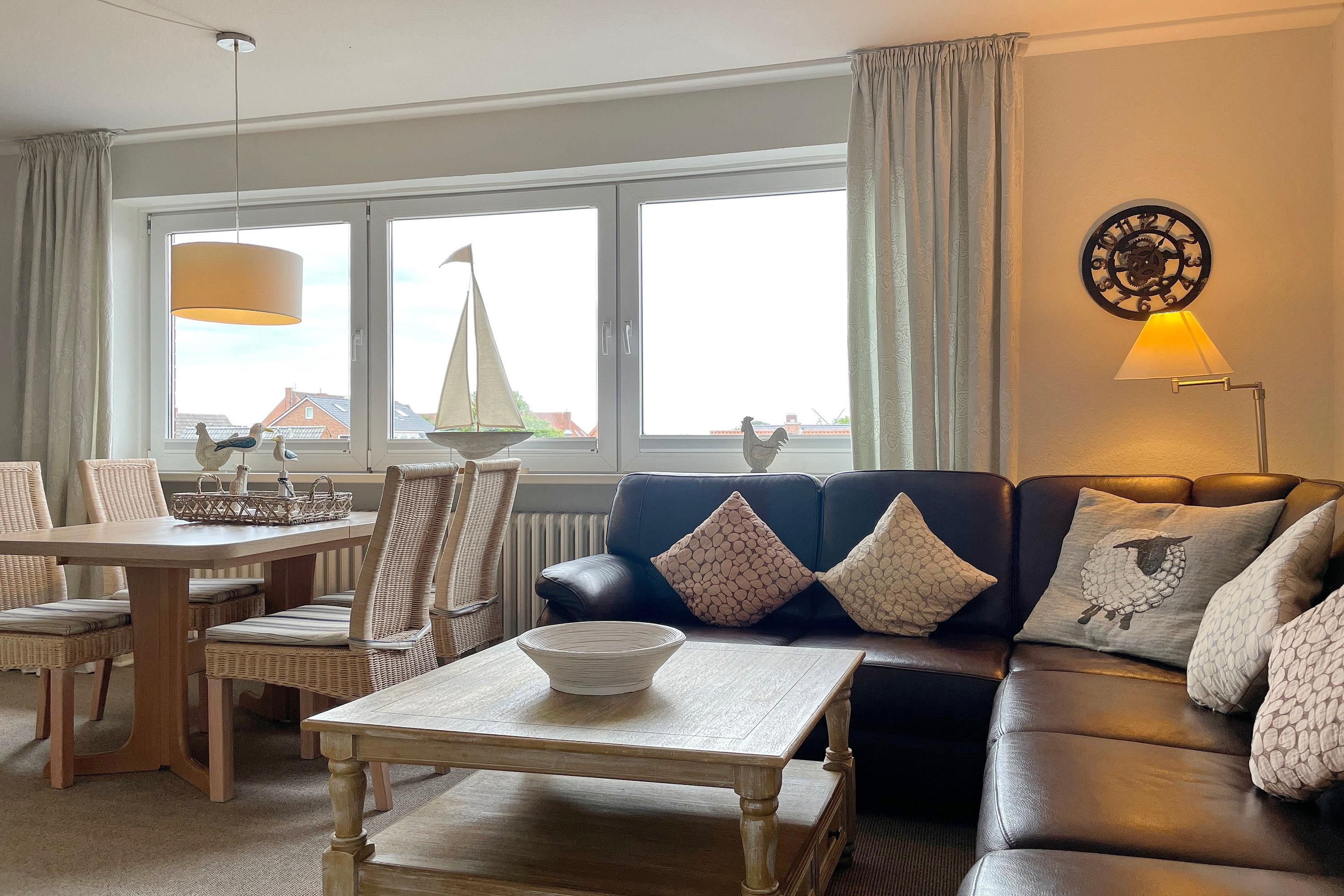 Moderne Ferienwohnung Silbermöwe in Wyks Innenstadt, nur 150 m vom Strand, ideal für erholsame Tage an der Nordsee.