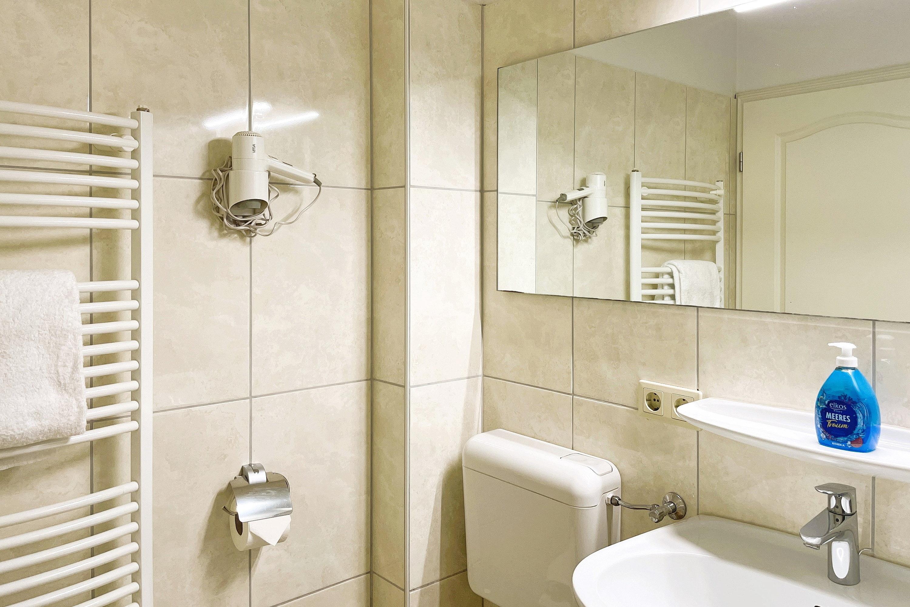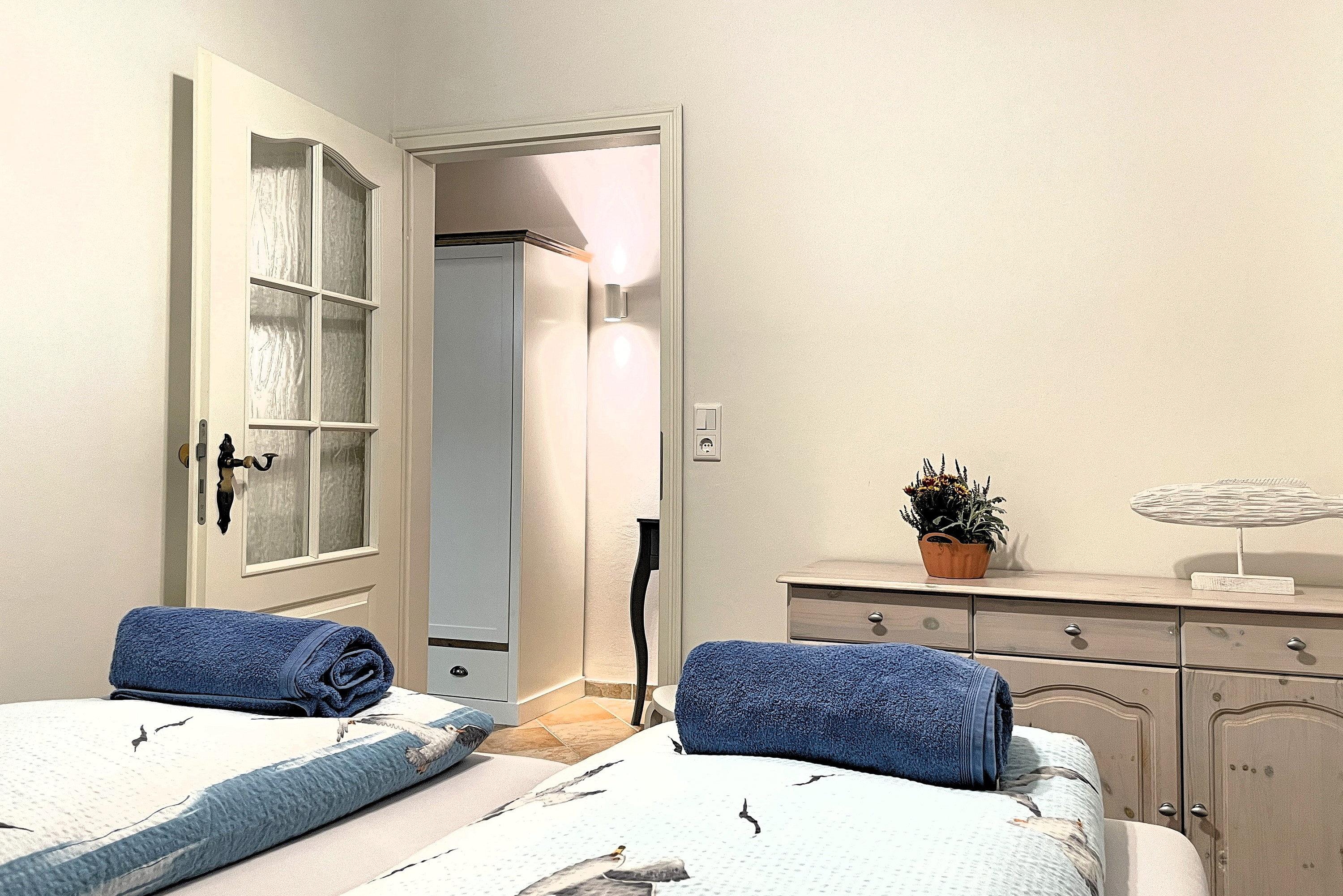 Das Fischerhuus liegt nur wenige Meter entfernt vom beliebten Wyker Südstrand in der ruhigen zweiten Reihe an der Gmelinstraße. Ein Lebensmittelladen, die Bushaltestelle, ein Schlachter, Bäcker und Restaurants befinden sich ebenfalls in der Nähe. Ihr Auto können Sie direkt auf dem Gemeinschaftsparkplatz vor dem Haus abstellen. Zu den weiteren Annehmlichkeiten gehören die kostenlose Nutzung des Schwimmbads und der Sauna, ideal zur Entspannung nach einem aktiven Tag. Zudem stehen Ihnen im Untergeschoss des Hauses Gemeinschaftswaschmaschinen und -trockner zur Verfügung.