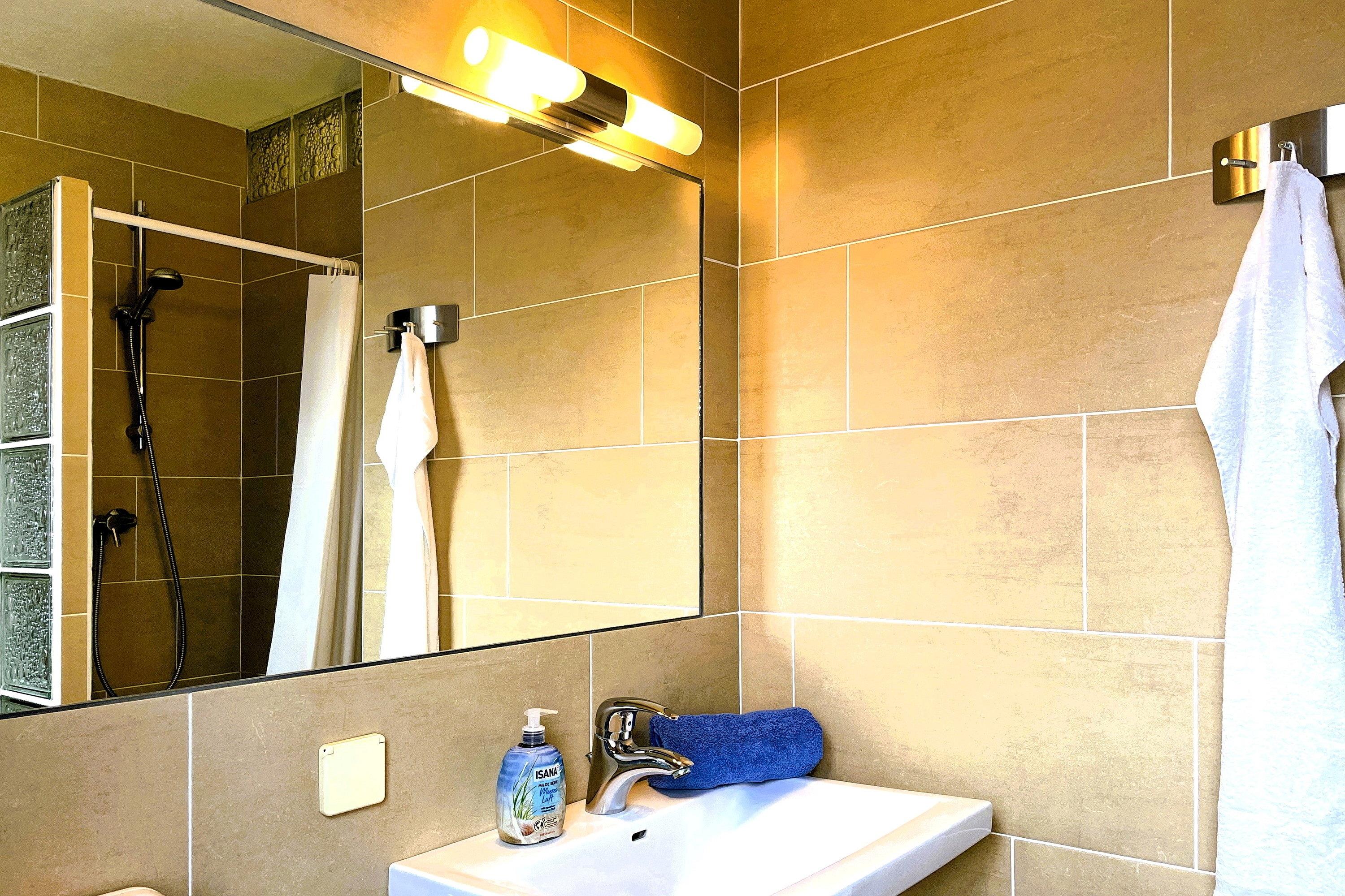 Das Fischerhuus liegt nur wenige Meter entfernt vom beliebten Wyker Südstrand in der ruhigen zweiten Reihe an der Gmelinstraße. Ein Lebensmittelladen, die Bushaltestelle, ein Schlachter, Bäcker und Restaurants befinden sich ebenfalls in der Nähe. Ihr Auto können Sie direkt auf dem Gemeinschaftsparkplatz vor dem Haus abstellen. Zu den weiteren Annehmlichkeiten gehören die kostenlose Nutzung des Schwimmbads und der Sauna, ideal zur Entspannung nach einem aktiven Tag. Zudem stehen Ihnen im Untergeschoss des Hauses Gemeinschaftswaschmaschinen und -trockner zur Verfügung.