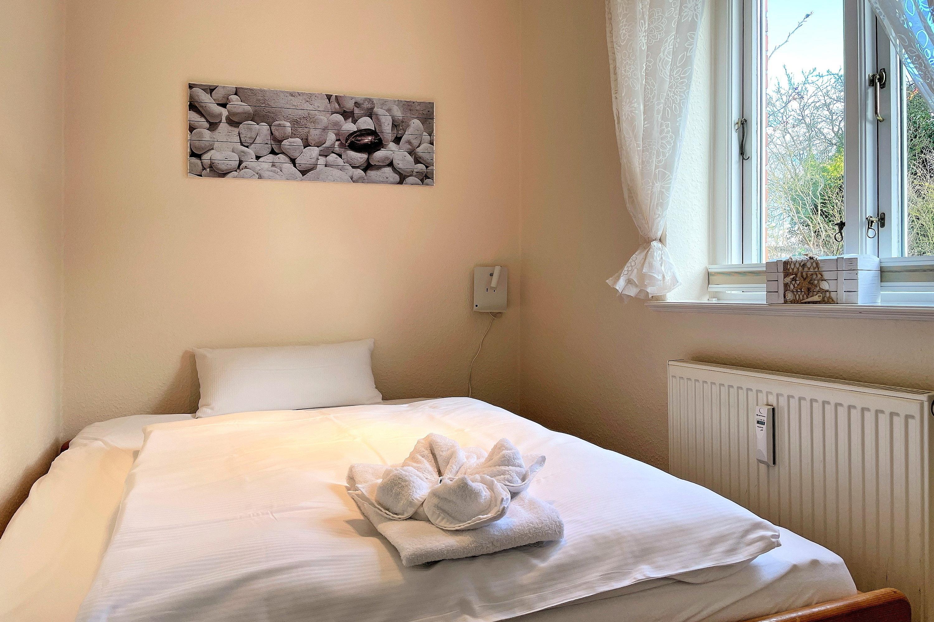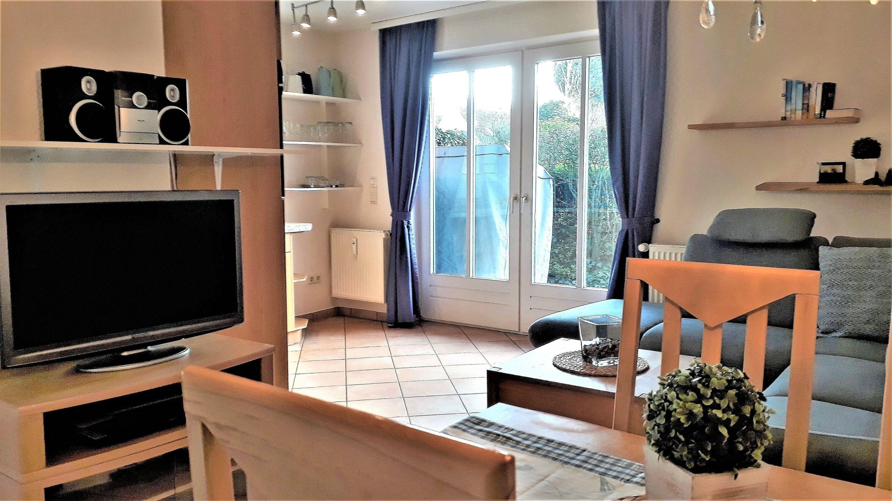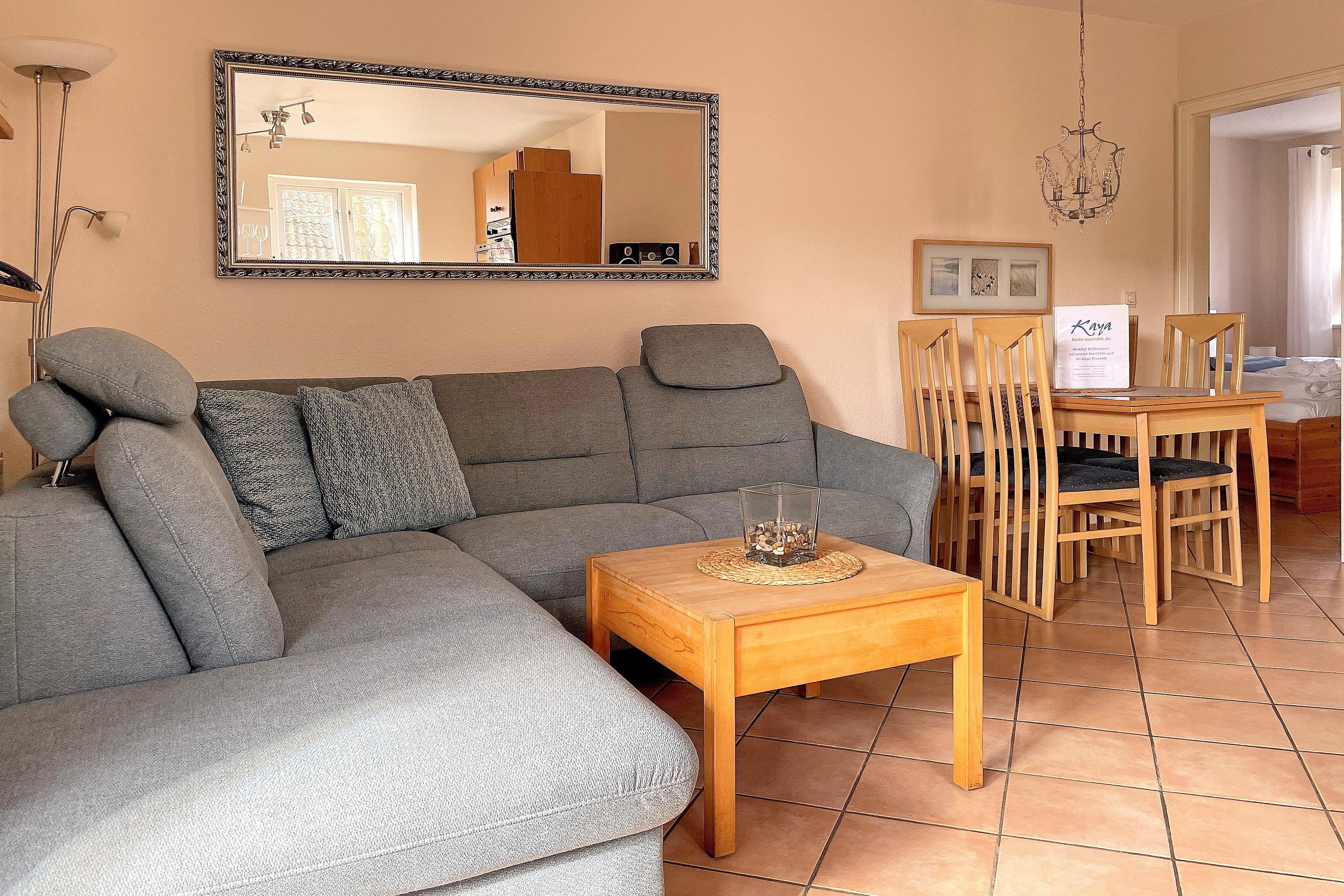 Zentral in Wyk liegt diese Wohnung in einer Ferienhausanlage auf einem großen Grundstück mit viel Platz zum Toben und Spielen für unsere kleinen Gäste. Im Untergeschoss des Hauses finden Sie eine Sauna (gegen Gebühr), einen Ruheraum, Waschmaschine und Trockner (gegen Gebühr) zur gemeinschaftlichen Nutzung. Gerne stellen wir Ihnen ein Kinderbett und einen Hochstuhl bereit. Ein PKW- Stellplatz befindet sich direkt am Domizil.