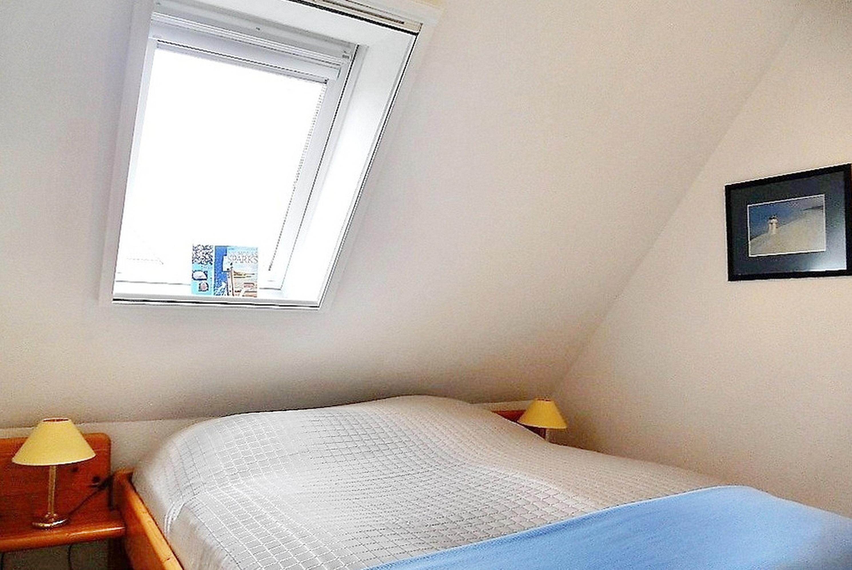 Unsere gemütliche Obergeschosswohnung Friesenperle 6 erstreckt sich über zwei Etagen und bietet 4 Gästen ausreichend Platz erholsame Urlaubstage zu verbringen. Das Bad ist mit Dusche mit flachem Einstieg und Handtuchheizkörper ist, verfügt über einen Doppelwaschtisch und ein Fenster. Der Schlafraum mit Doppelbett (160 x 200 cm) und Dachfenster mit Blick zu den Sternen lädt zum Träumen ein. Der Hauptwohnbereich mit integrierter Küche und Essplatz wirkt einladend und das Wohnzimmer mit zwei hübschen Sofagarnituren, WLAN, Flachbild-TV, DVD-Player, Haustelefon und Stereoanlage eignet sich hervorragend zum Entspannen. Von hier aus gelangen Sie auf den Südbalkon mit Gartenmöbeln (ca. April bis Oktober). Die Küchenzeile mit Ceranfeldherd und Backofen, Geschirrspüler, Kühlschrank mit Gefrierfach, Kaffeemaschine und einer zusätzlichen Senseo Maschine ist vollausgestattet. Im 2. Obergeschoss finden Sie einen weiteren offenen Schlafbereich vor mit zwei Einzelbetten (90 x 200 cm) und einem zweiten Fernseher. Ihr Hund ist hier ebenfalls herzlich Willkommen. Genießen Sie herrliche Urlaubstage in einer Wohnung, die keine Wünsche offen lässt.