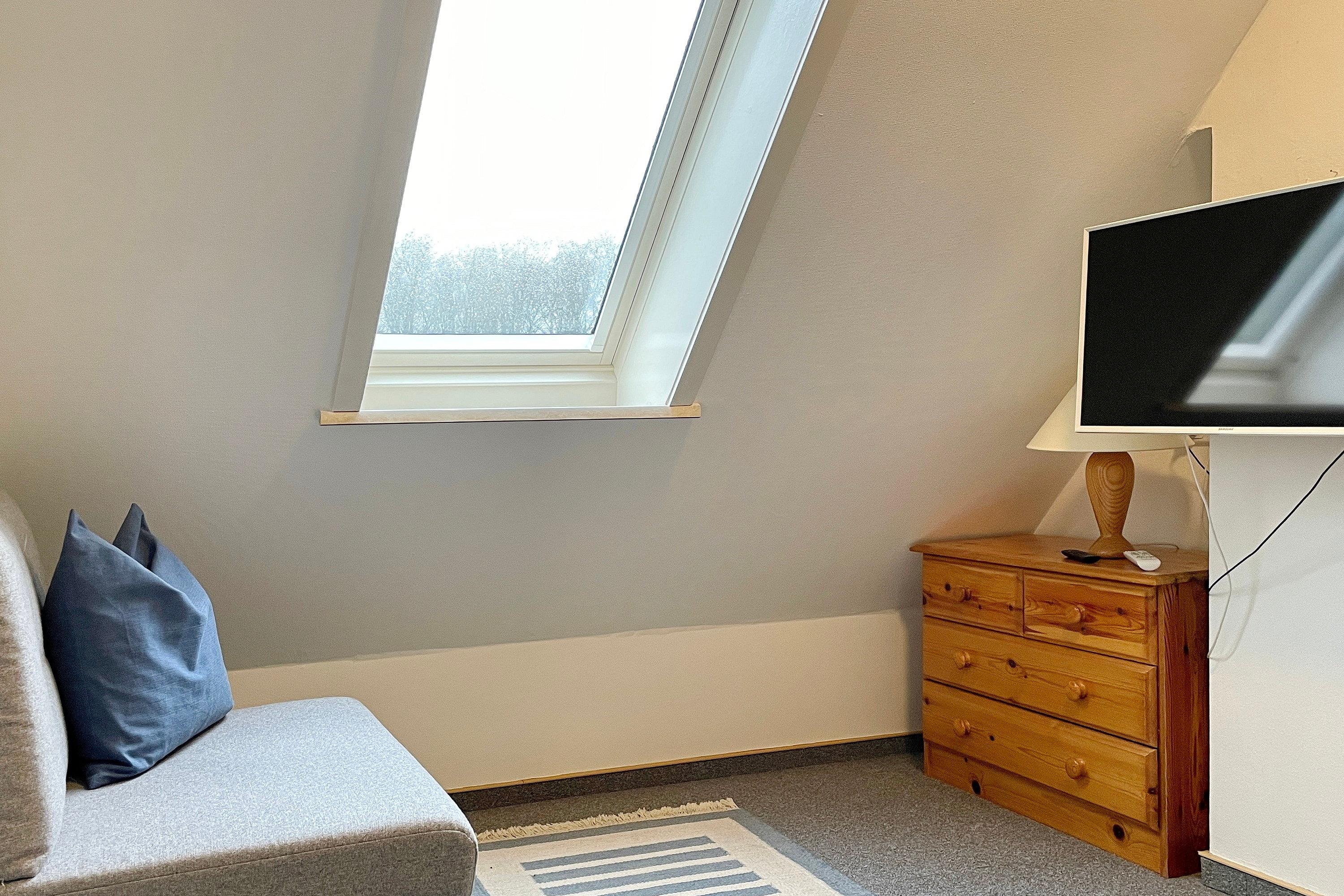 Im 2. Obergeschoss befindet sich ein Spielzimmer für Kinder, welches auch ein gemütlicher Rückzugsort ist um in aller Ruhe ein gutes Buch zu lesen. Der dort befindliche Fernseher ist zur Nutzung von Streamingdiensten gedacht.