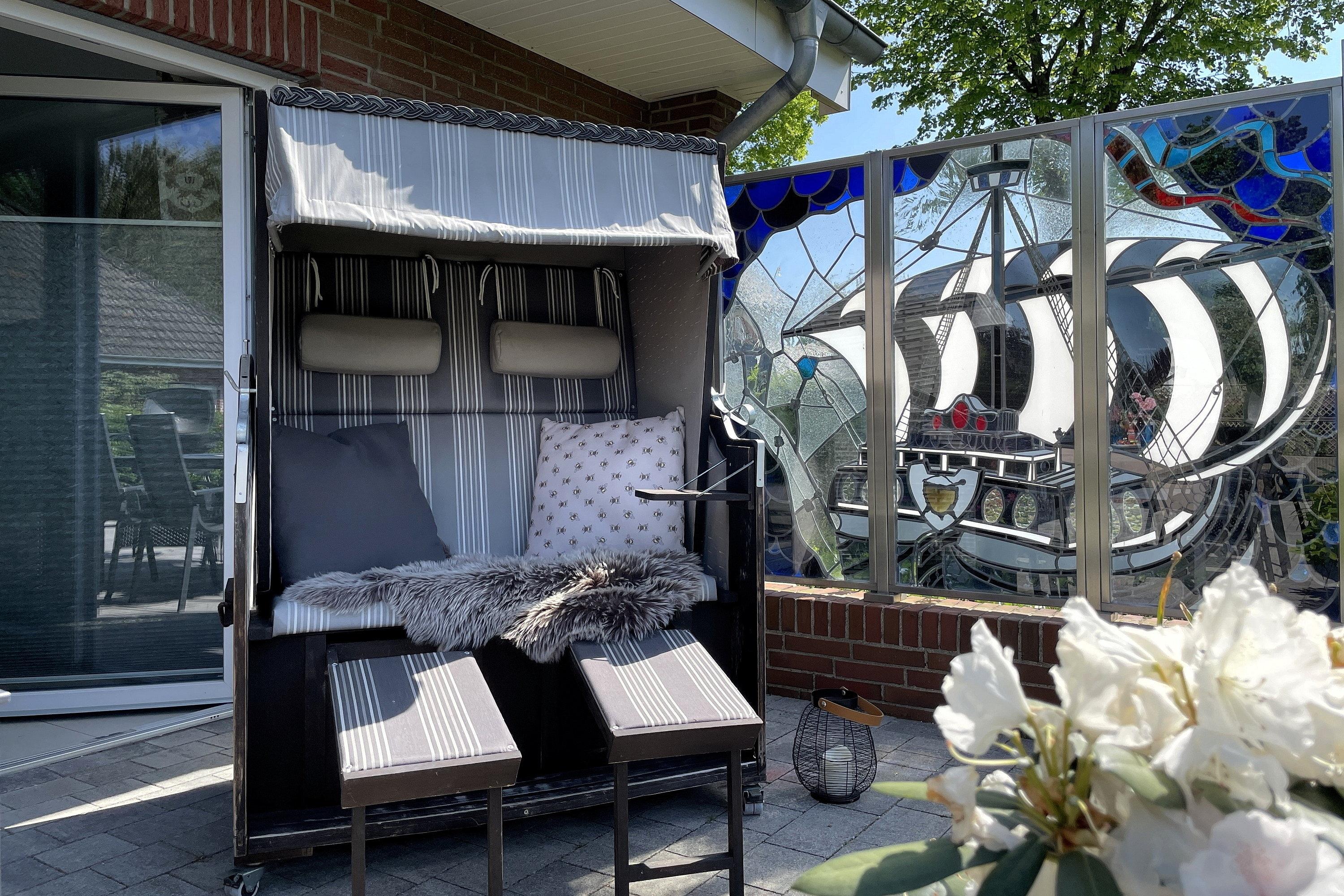 Unser Hus Strungud mit 2 Wohnungen liegt in der Strandstraße in Wyk. Wie der Name Strungud (Strandgut) bereits aussagt, haben Sie mit diesen Domizilen wirkliche Funde entdeckt. Die Eigentümer haben mit viel Liebe und Engagement Wohnungen geschaffen, die auch besonderen Ansprüchen gerecht werden. Die EG-Wohnung wurde rollstuhlgerecht gebaut und die OG-Wohnung ist für kleine Familien sowie Großfamilien bis zu 8 Gäste konzipiert. Am Haus befindet sich ein großer Unterstand für Fahrräder, Rollstuhl oder auch Bollerwagen und zwei PKW- Stellplätze. Die Strandstraße liegt am Rande von Wyk, so dass Sie die Innenstadt als auch Ziele auf dem Land schnell erreichen können. Die Eigentümer haben sich mit der Sanierung (2017) einen Wunsch erfüllt: Ein traumhaft schönes Domizil, welches in der EG-Wohnung auf die Bedürfnisse von Rollstuhlfahrern ausgerichtet ist. Dabei wurde sowohl auf die Höhe der Fenstergriffe und Lichtschalter als auch auf die Breite der Türen geachtet. Das Domizil erreichen Sie über eine breite Auffahrt mit elektrischem Türöffner. Der Wohn- und Essbereich wurde liebevoll und praktisch gestaltet, wobei auf höchsten Komfort Wert gelegt wurde. Das besondere Schmuckstück ist die offene, vollausgestattete und rollstuhlgerechte Küche, die durch eine höhenverstellbare Arbeitsplatte sowohl für Rollstuhlfahrer als auch für mitreisende Gäste praktisch zu bedienen ist. Das Schlafzimmer mit Badezimmer wurde ebenso praktisch durchdacht und charmant gestaltet mit elektrisch verstellbarem Bett, moderner ebenerdiger Dusche mit Sitzmöglichkeit und einer Raffinesse, die keine Wünsche offenlässt. Zur Wohnung gehört weiterhin ein 2. kleines Bad mit WC, Dusche und Waschbecken, ein 2. Schlafzimmer (beide Räume nicht rollstuhlgerecht!) sowie eine große Terrasse mit Garten. Das besondere Domizil für einen schönen Urlaub!