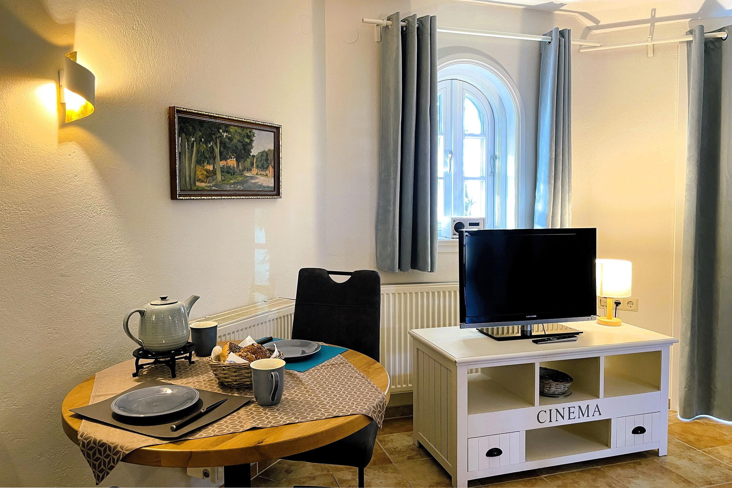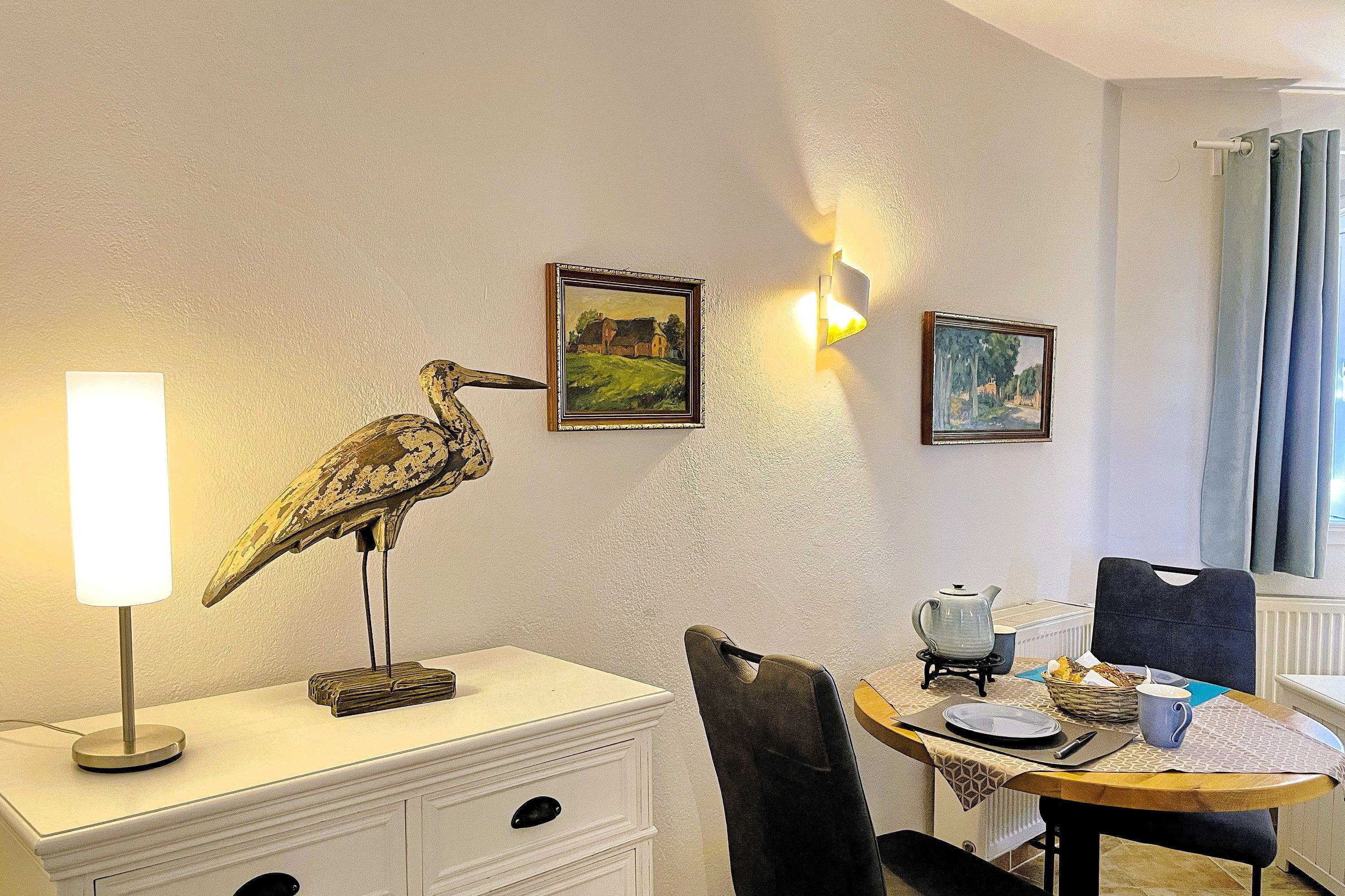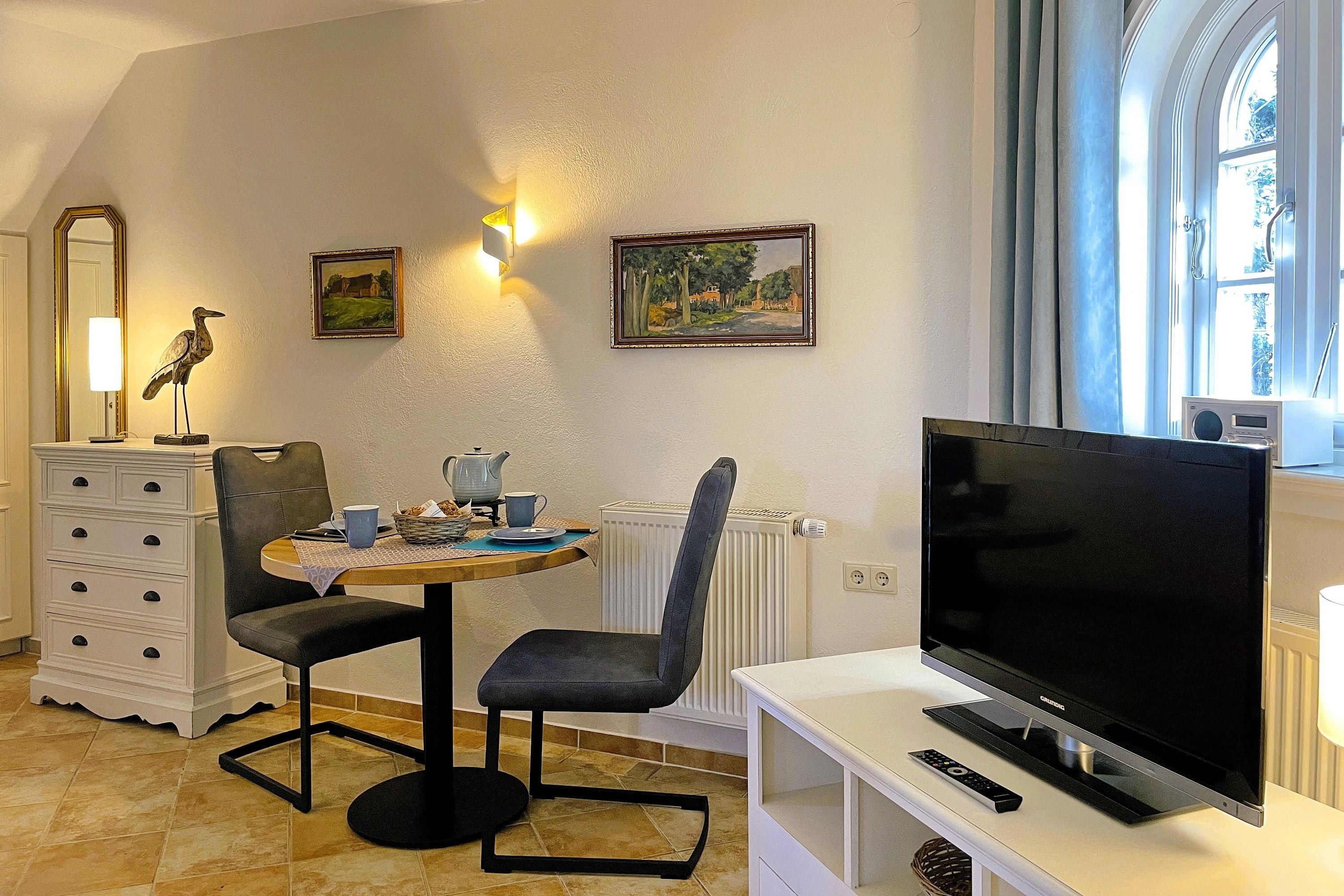 Die Ferienwohnung "Halligenblick" bietet Ihnen einen komfortablen Aufenthalt mit atemberaubendem Meerblick. Diese charmante Unterkunft verfügt über zwei Zimmer und ist perfekt für Paare oder Alleinreisende, die eine erholsame Zeit an der Nordsee verbringen möchten. Im gemütlichen Wohnzimmer finden Sie ein bequemes Schlafsofa (160x200) für eine zusätzliche Person, großzügige Wandschränke für Ihre Habseligkeiten und einen Essbereich mit Tisch und Stühlen. Die abgegrenzte Küchenzeile ist kompakt, aber zweckmäßig ausgestattet. Hier stehen Ihnen ein Induktionskochfeld mit zwei Platten, eine Filterkaffeemaschine, ein Wasserkocher, ein Toaster und ein Kühlschrank zur Verfügung. Geschirr, Besteck und Kochutensilien sind ebenfalls vorhanden.