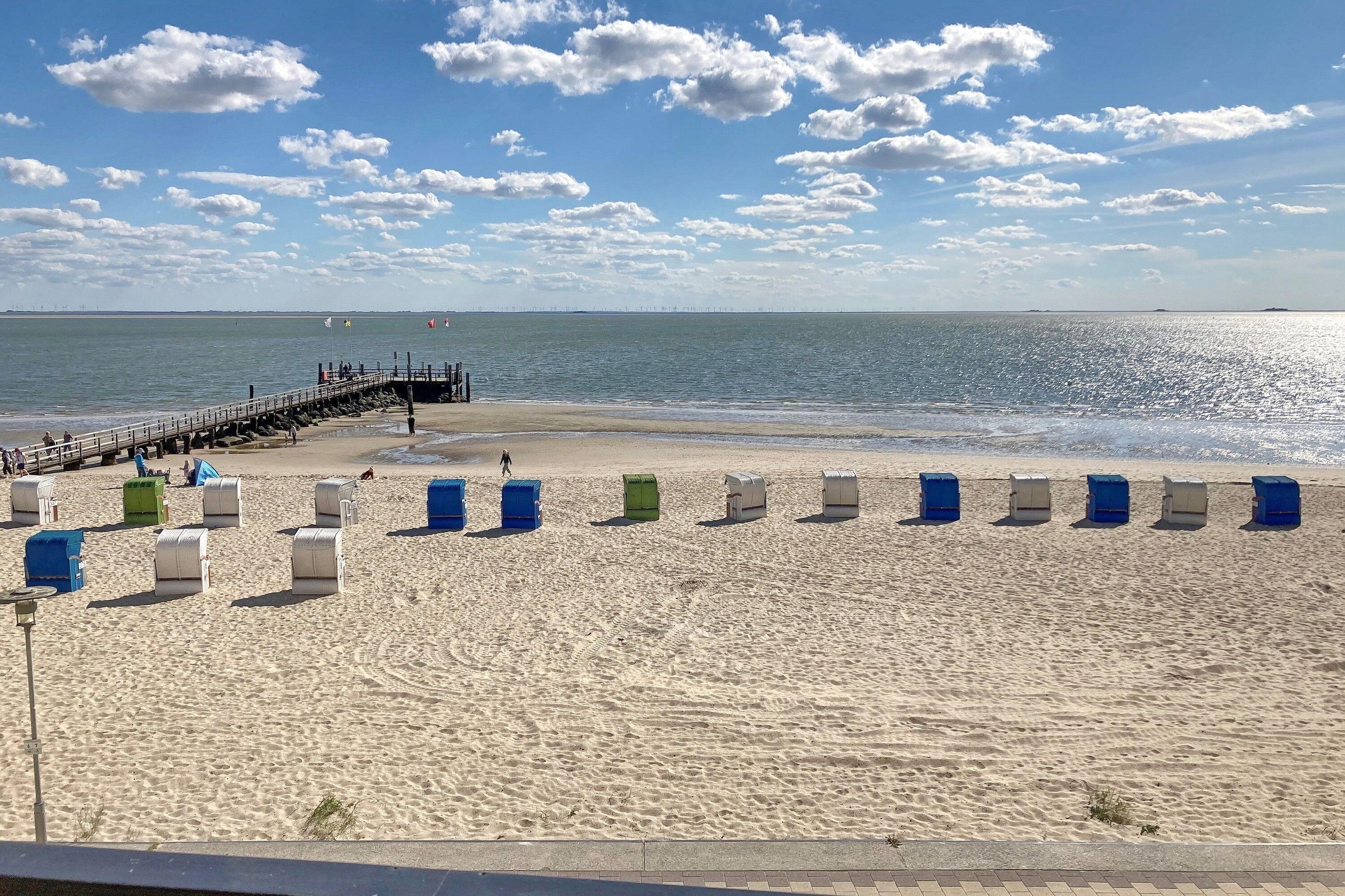 Unsere Irma 12 mit ca. 42qm ist eine liebevoll eingerichtete Ferienwohnung im ersten Stock des zentral gelegenen Hauses Irma und ist sowohl per Treppe als auch mit dem Aufzug ( 4 Stufen bis zum Aufzug) erreichbar. Fühlen Sie sich sogleich Willkommen in unserem gepflegten Domizil, welches traumhafte Urlaubstage für 2 bis max. 4 Personen verspricht. Dank der großzügigen Fensterfront, welche sich über die gesamte Länge des Wohnbereiches erstreckt, ist das Wohnzimmer lichtdurchflutet und bietet Ihnen einen traumhaften Blick auf den Strand, das Meer und die Halligen. Natürlich verfügt die Wohnung über einen schönen Essplatz direkt am Fenster und eine gemütliche Couch sowie W-Lan, eine Stereoanlage, einen Flachbild- TV und einen DVD- Player. Außerdem befinden sich hier 2 Schrankbetten (90x200 cm), die zu erholsamen Nächten einladen. Die offene Küche mit Ceranfeldherd, einer Mikrowelle mit Grillfunktion und einem Geschirrspüler schließt direkt an den Wohnbereich an und natürlich sind eine Wasserkocher, Toaster, eine Senseo Duo (Kaffeemaschine, die für Pads und Filterkaffee genutzt werden kann) ausreichend Geschirr vorhanden. Vom Flur aus gelangen Sie in das kleine, hellgeflieste Bad mit Dusche und Handtuchheizkörper sowie in das Schlafzimmer mit zwei weißen, hochwertigen Einzelbetten (90 x 190 cm) mit verstellbarem Lattenrosten und einem geräumigen weißen Kleiderschrank im neuen Glanz erstrahlt. Im Keller des Hauses stehen Waschmaschine und Trockner gegen eine geringe Gebühr zur gemeinschaftlichen Nutzung zur Verfügung. Vom Keller aus gibt es auch einen direkten Zugang zum Strand (im Frühling, Sommer und Herbst.) Erleben Sie den Strand, das Schauspiel von Ebbe und Flut sowie die frische Nordseeluft hautnah vom überdachten Balkon aus und genießen Sie eine phänomenale Aussicht bereits beim Morgenkaffee..