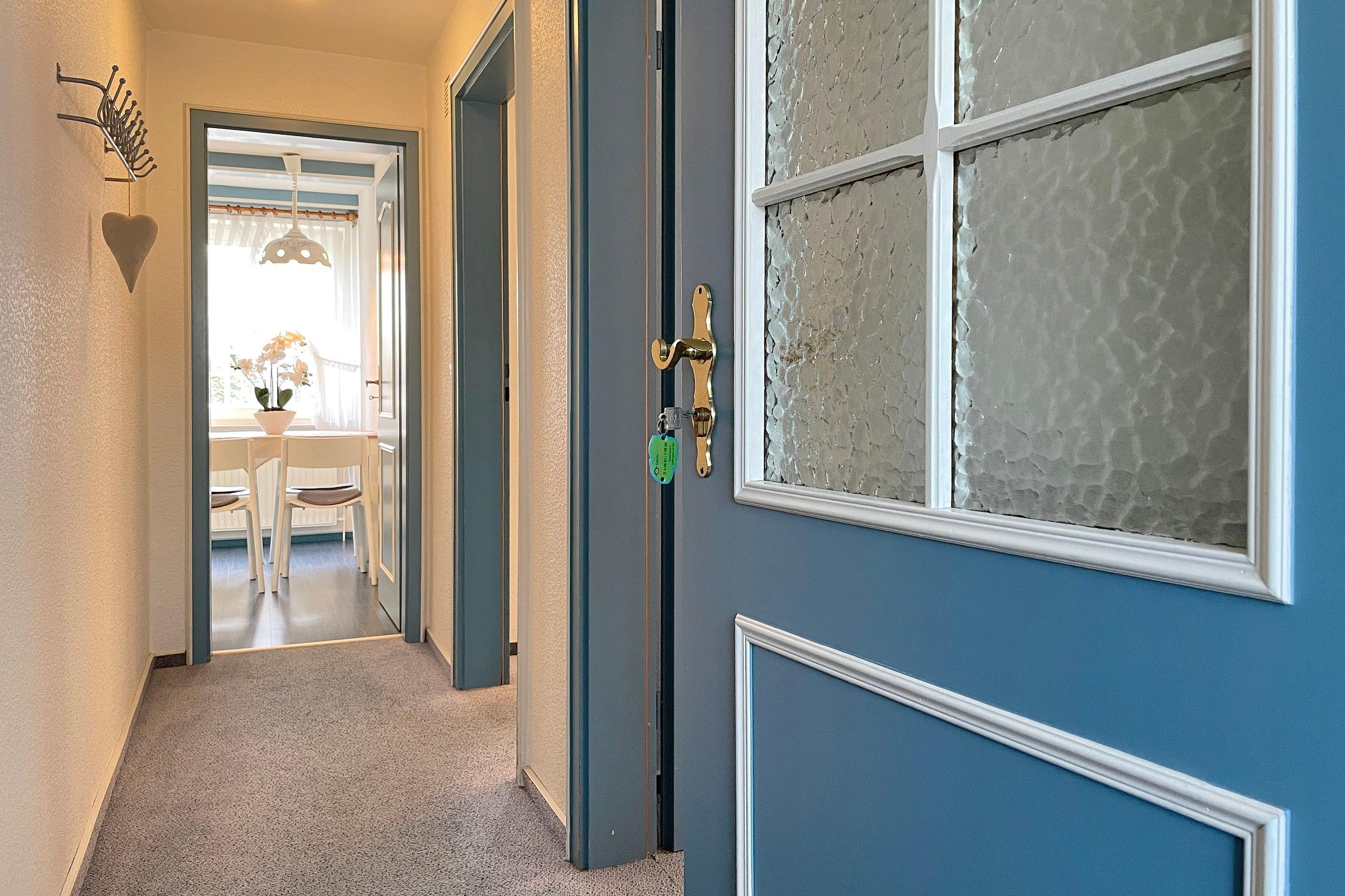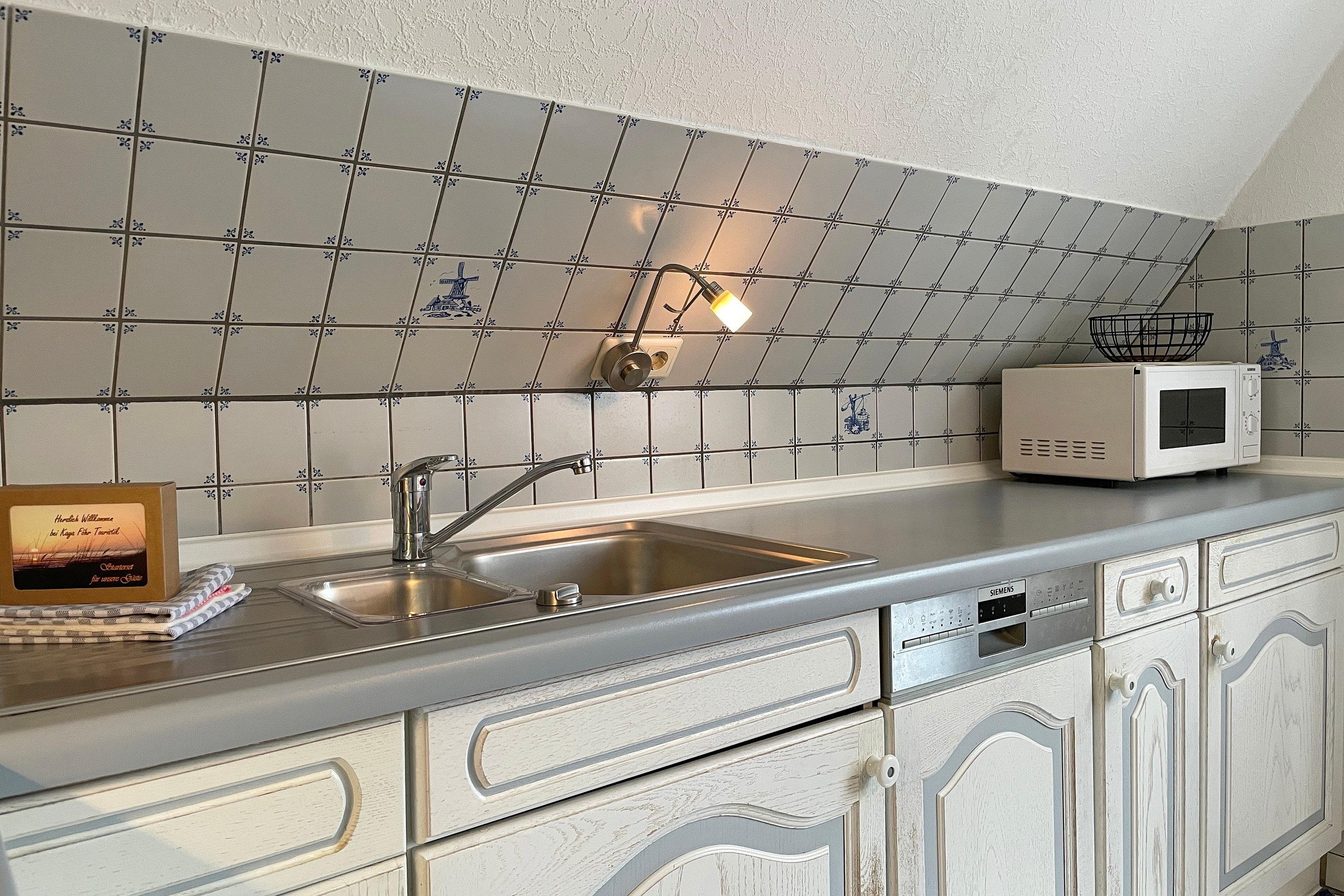 Die Obergeschosswohnung Manuela Sieck OG bietet bis zu 4 Personen schöne Urlaubstage. Das freundlich gestaltete Wohnzimmer mit zwei hochwertigen Sofas, WLAN, Flachbild-TV und zwei einzelnen Schrankbetten (je 90x 200 cm) ist lichtdurchflutet und lädt zu geselligen Abenden ein. Die Wohnküche mit integriertem Essplatz, Ceranfeldherd mit Backofen, Geschirrspüler, Kühlschrank mit Gefrierfach und Mikrowelle ist gut ausgestattet, so dass das Kochen Spaß macht. Ein geräumiges Bad mit Fenstern und ein zusätzliches WC, ebenfalls mit Fenster, sind hell gefliest. Nach einem erlebnisreichen Urlaubstag können Sie ruhige Träume im Schlafzimmer genießen, welches mit Doppelbett (180x200cm), geräumigen Kleiderschrank und einem zusätzlichen Gästebett (90x190cm)ausgestattet ist. Der individuelle und maritime Charme der Wohnung macht dieses Domizil bei seinen Gästen sehr beliebt. Wir freuen uns auf Ihren Anruf!