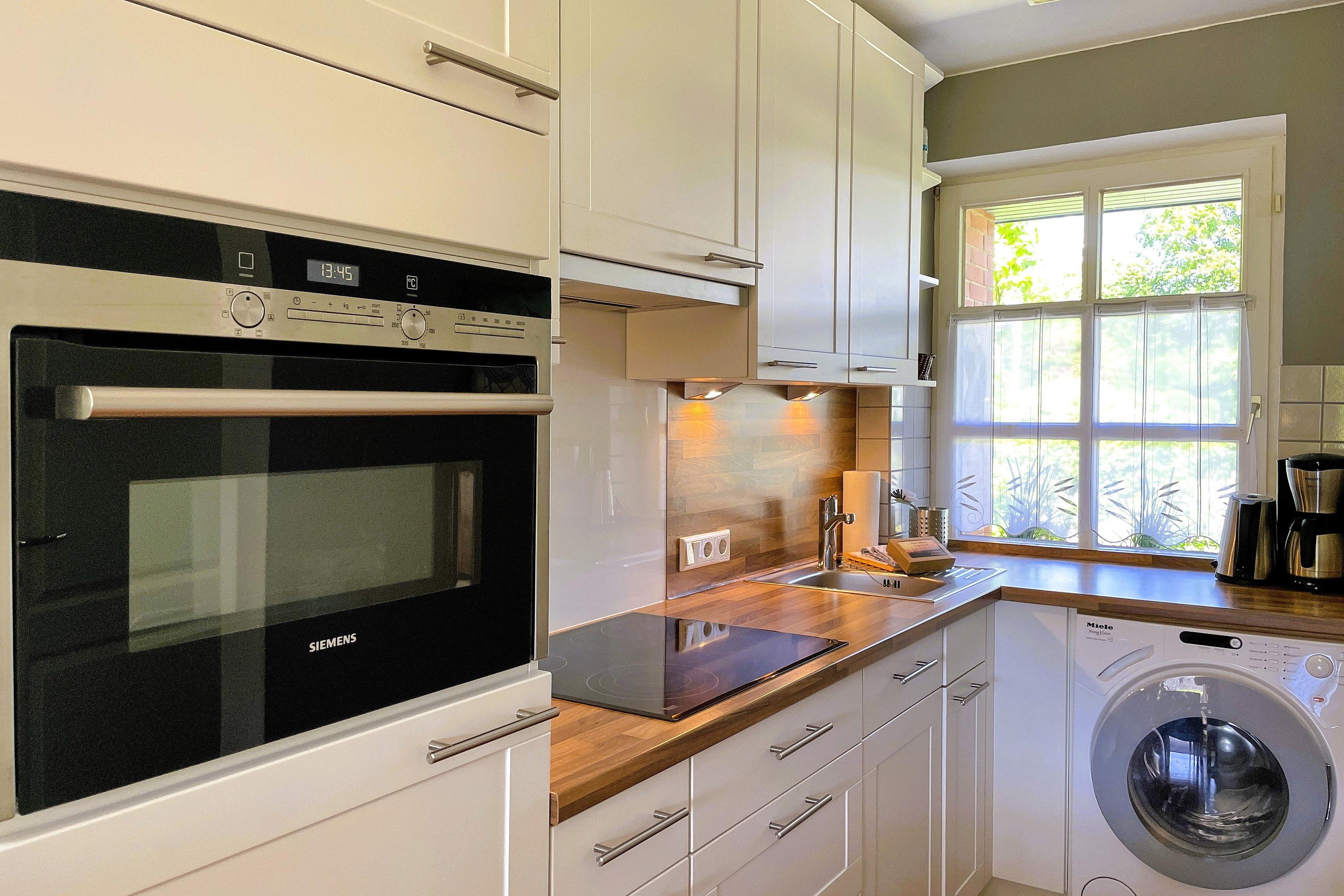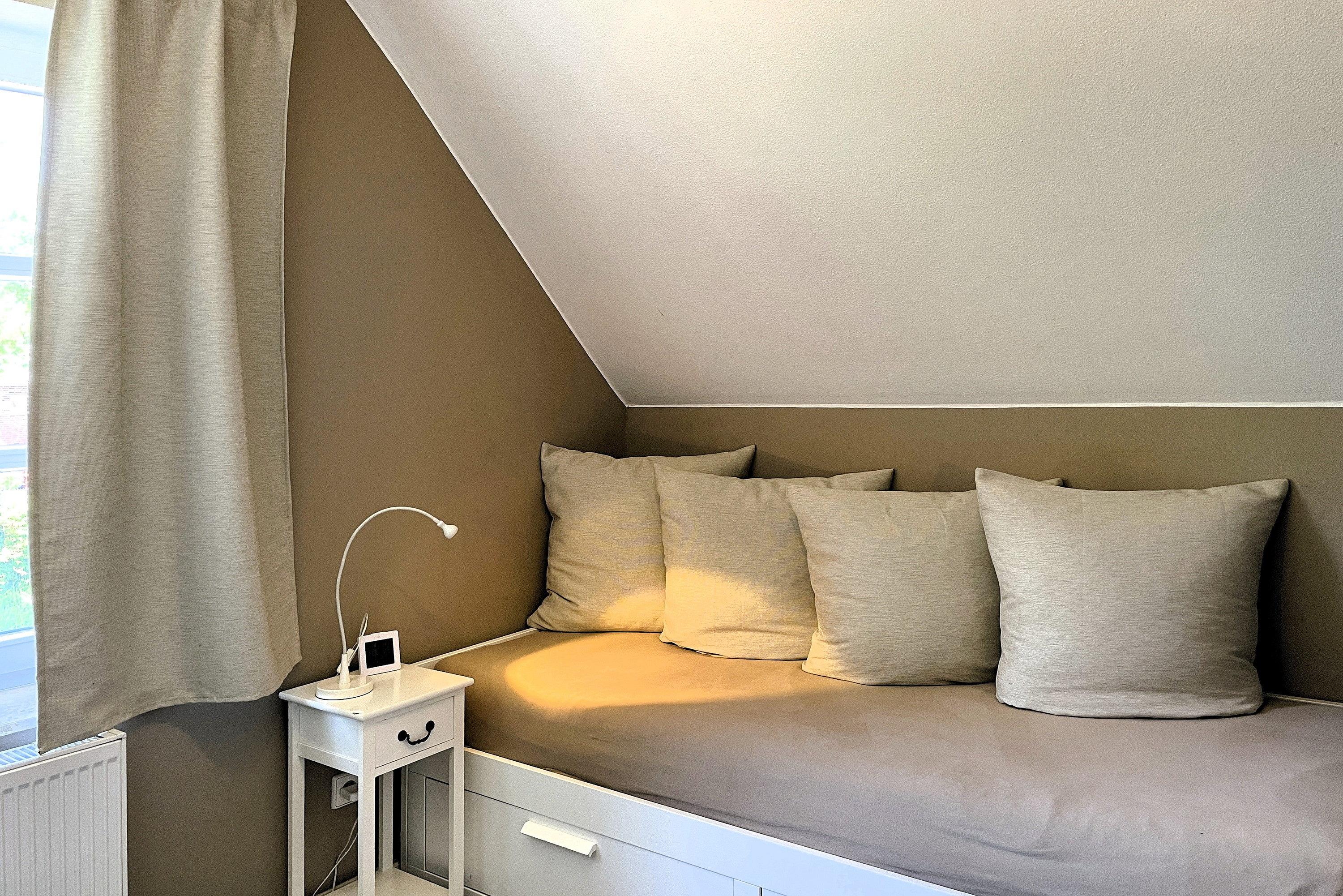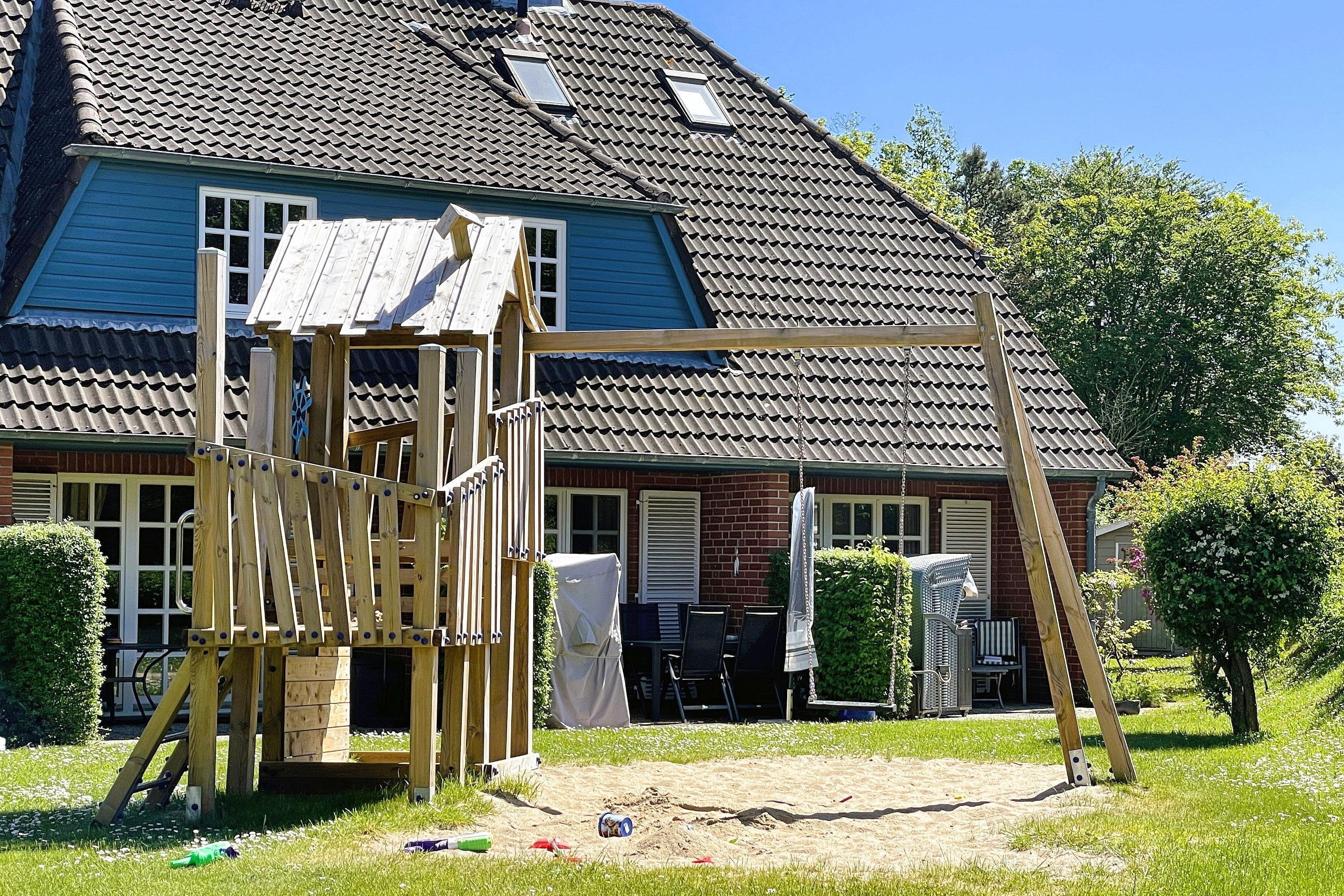 Herzlich willkommen in unserem Reihenendhaus "Meine Insel", Ihrem perfekten Rückzugsort für Paare und Familien. Auf ca. 60 qm bietet die Nichtraucher-Wohnung Platz für 1 bis 4 Gäste und besticht durch eine gemütliche Ausstattung mit Inselflair. Im Erdgeschoss erwartet Sie ein heller Wohnbereich mit integrierter Essecke sowie eine offene, gut ausgestattete Küche mit Backofen, Ceranherd, Spülmaschine und einer kostenfreien Waschmaschine – ideal für einen längeren Urlaub. Es stehen ein Flachbildfernseher (3 im gesamten Haus, davon 2 Smart-TVs) und ein Internetradio (mit Spotify-Connect) zur Verfügung. Vom Wohnzimmer gelangen Sie direkt auf die teilüberdachte Südwest-Terrasse, die in den Sommermonaten mit Gartenmöbeln, Sonnenschirm und Strandkorb zum Sonnen und Relaxen einlädt während Kinder sich im angrenzenden Gemeinschaftsgarten austoben und sich am Spielgerät mit Schaukel erfreuen können. Über eine Treppe erreichen Sie die Schlafbereiche und das Bad. Das Elternschlafzimmer ist mit einem komfortablen Doppelbett (180 cm x 200 cm mit 2 Einzelmatratzen) ausgestattet, während das Kinderreich mit zwei Einzelbetten (90 cm x 200 cm) , einer Auswahl an Gesellschaftsspielen und Büchern sowie eine Spielkiste (Lego/Playmobil) kleine Gäste begeistert. Hier befindet sich auch ein gemütliches Tagesbett für eine kleine Auszeit. Das moderne Badezimmer verfügt über eine Dusche, einen Handtuchheizkörper und ein Fenster, das für Tageslicht und Frischluft sorgt. Ihr Auto können Sie direkt auf dem eigenen Parkplatz abstellen.