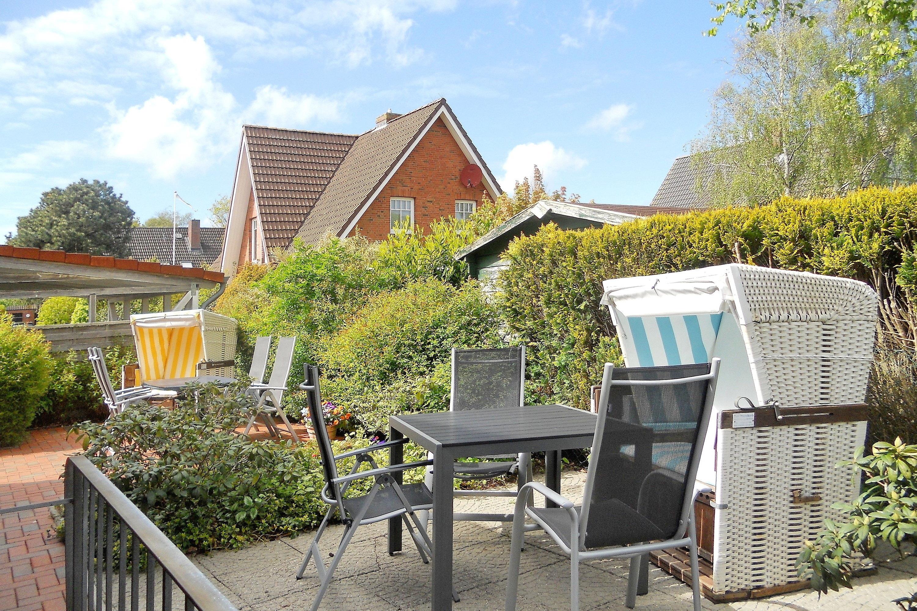 Mitten in Wyk liegt unsere EG-Wohnung 1 mit ca. 80 qm und lädt zu schönen Urlaubstagen ein. Vom Flur gelangen Sie in die einzelnen Räume. Der großzügige Wohnbereich mit integriertem Essplatz und kleiner Küche ist das Herzstück der Wohnung. Ausgestattet mit einem Flachbild-TV, WLAN, Telefon mit Flat ins dt. Festnetz sowie DVD-Player und einer Stereoanlage können Sie gesellige Stunden verbringen oder Sie möchten vielleicht alle zusammen am Esstisch ein Spiel spielen. Die gut ausgestattete Küche ist klein aber fein. Im Elternschlafzimmer mit Doppelbett und Kleiderschrank steht ein zusätzlicher Fernseher. Von hier können Sie- ebenso wie vom Wohnzimmer- die Terrasse betreten. Im kleinen, gemütlichen Kinderzimmer befinden sich 2 Einzelbetten, die für erholsamen Schlaf sorgen. Im Bad mit Fenster können Sie zwischen Dusche und Badewanne wählen. Im Keller des Hauses steht zur gemeinschaftlichen Nutzung ein kleiner Fitnessraum, eine Sauna, Waschmaschine und Trockner für Sie bereit. Alle Wohnungen sind allergiker- und kinderfreundlich eingerichtet. Das gepflegte Haus mit dem idyllischen Garten liegt nah am Stadtwäldchen mit dem Abenteuerspielplatz Löwenhöhle und lädt somit Jung und Alt zum Spazierengehen und Verweilen ein. In ca. 10 Gehminuten erreichen Sie den Strand und das Meer, die Fußgängerzone mit zahlreichen Cafés, kleinen Geschäften und Restaurants.