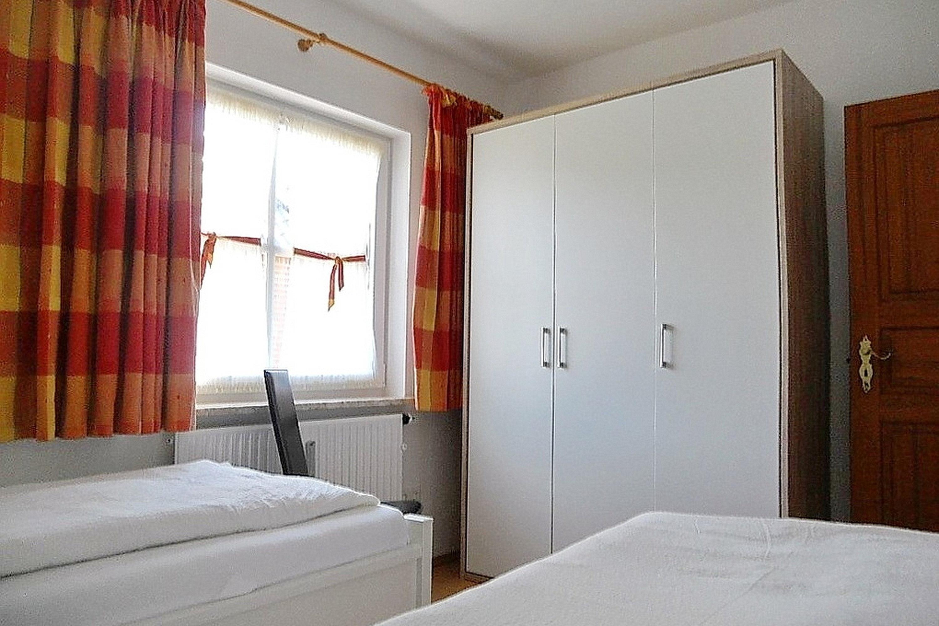 Mitten in Wyk liegt in ruhiger Lage unser Domizil Rugstieg 8 mit 4 Ferienwohnungen für 2 bis 5 Gäste. Die Wohnungen sind allergiker- und kinderfreundlich eingerichtet. Die Wohnung 3 befindet sich im 1. Obergeschoss des Hauses und wirkt sehr einladend. Der lichtdurchflutete Wohnraum mit integriertem Essbereich und der angrenzenden sehr gut ausgestatteten Küche ist geschmackvoll eingerichtet und verfügt über WLAN, Telefon mit Flat ins dt. Festnetz, Flachbild-TV, Blueray-Player und Stereoanlage. Von hier gelangen Sie auf den herrlichen Balkon und können die Ruhe mit Blick auf den Garten und des nahe gelegenen Waldes genießen. Im ersten Obergeschoss befindet sich des Weiteren ein Schlafzimmer mit 2 Einzelbetten und Kleiderschrank und ein Badezimmer mit Badewanne und separater Dusche. Über eine Treppe gelangen Sie in das zweite Obergeschoss mit einem Schlafzimmer mit Doppelbett. Von diesem Zimmer gelangen Sie in das Kinderzimmer mit einem Einzelbett und einem Kinderbettchen. Alle Schlafzimmerfenster lassen sich extra verdunkeln und sorgen für ruhige und entspannte Nächte. Die Eigentümer haben diese Wohnung mit liebevollen Accessoires und harmonisch aufeinander abgestimmten Möbeln zu einem sehr schönen Urlaubsdomizil gemacht. Im Untergeschoss des Hauses befindet sich eine Sauna mit einigen Fitnessgeräten sowie Waschmaschine und Trockner zur gemeinsamen kostenfreien Nutzung. Das gepflegte Haus mit dem idyllischen Garten liegt nah am Stadtwäldchen mit dem Abenteurespielplatz Löwenhöhle entfernt und lädt somit Jung und Alt zum Spazierengehen und Verweilen ein. In ca. 10 Gehminuten erreichen Sie den Strand und das Meer sowie die Fußgängerzone mit zahlreichen Cafés, kleinen Geschäften und Restaurants.