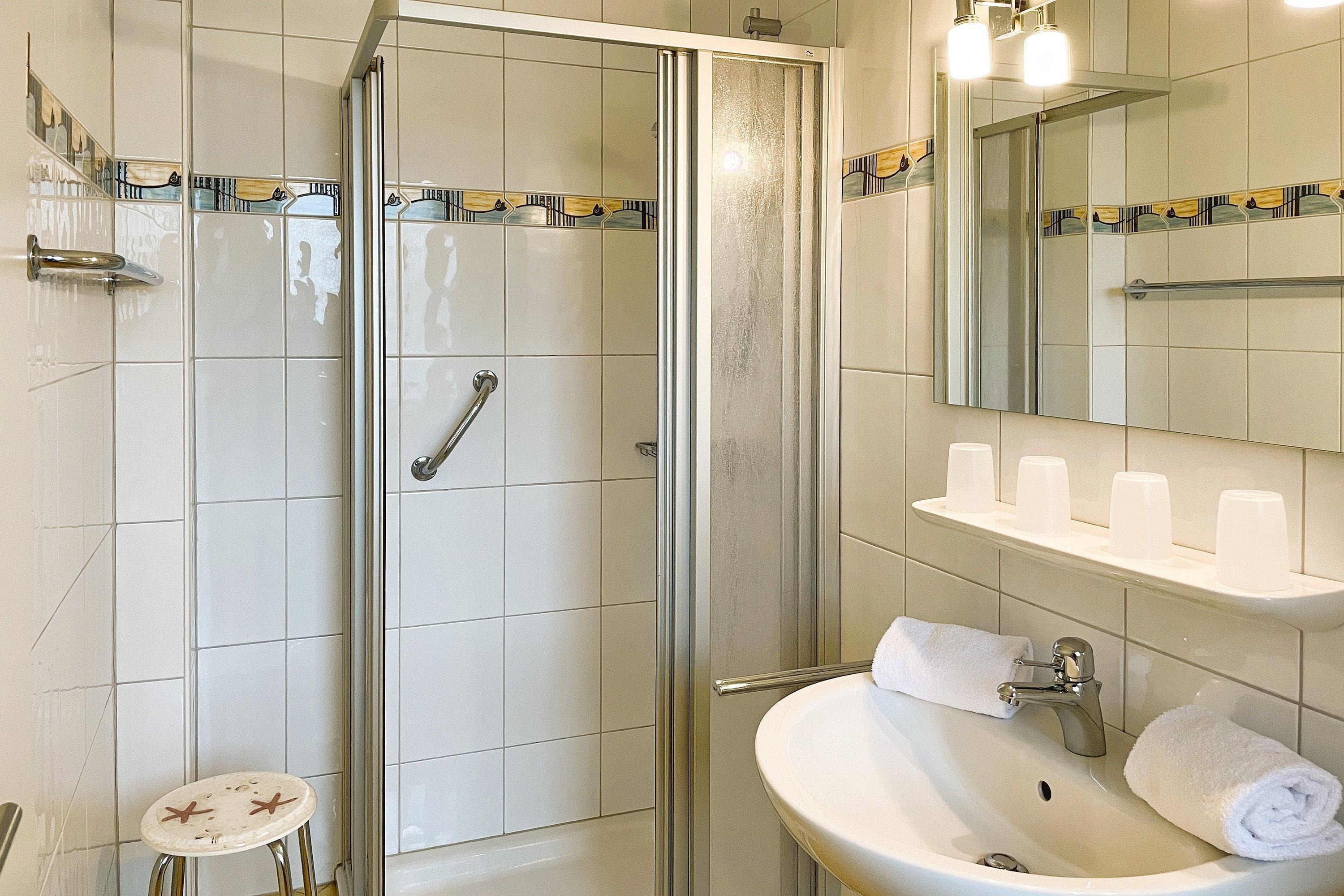 Die Ferienhausanlage Seeadler befindet sich in der verkehrsberuhigten Zone am Sandwall nur wenige Meter von Cafés, Restaurants, den kleinen Föhrer Geschäften und natürlich dem Strand und dem Meer entfernt. Unsere Wohnung Seeadler 04 ist mit seiner zentralen Lage und seiner guten Aufteilung eine beliebte Ferienwohnung, die wir Ihnen gerne empfehlen. Im ersten Obergeschoss gelegen, eignet sich die Ferienwohnung mit ca. 60 qm ideal für 2 bis 4 Personen. Das geräumige Wohnzimmer mit bequemer Sitzgarnitur, WLAN, Smart-TV, Spiele- und Bücherauswahl, Stereoanlage und hochwertiger Essecke ist hell und freundlich. Die Möbel sind harmonisch aufeinander abgestimmt und Sie können sich sogleich wohlfühlen. Die integrierte Einbauküche ist mit Geschirrspüler, Kühlschrank mit Gefrierfach, Ceranfeldherd mit Backofen, Dunstabzugshaube und Kaffeemaschine, Eierkocher sowie Wasserkocher gut ausgestattet und lädt zum Kochen ein. Ihren Süd-Ostbalkon mit Balkonmöbeln erreichen Sie direkt vom Wohnzimmer. Des Weiteren verfügt die Wohnung über ein hellgefliestes Bad mit Fenster und Dusche mit niedrigem Einstieg und über zwei Schlafräume. Das Elternschlafzimmer verfügt über ein Doppelbett und einen dreitürigen Kleiderschrank. Kinder werden sich im liebevoll gestaltenten Kinderzimmer mit zwei Einzelbetten, CD-Player und einer Bücherauswahl sicher sehr wohl fühlen. Im großzügigen Flurbereich steht ein weiterer Schrank zur Nutzung bereit sowie eine hübsche Garderobe.