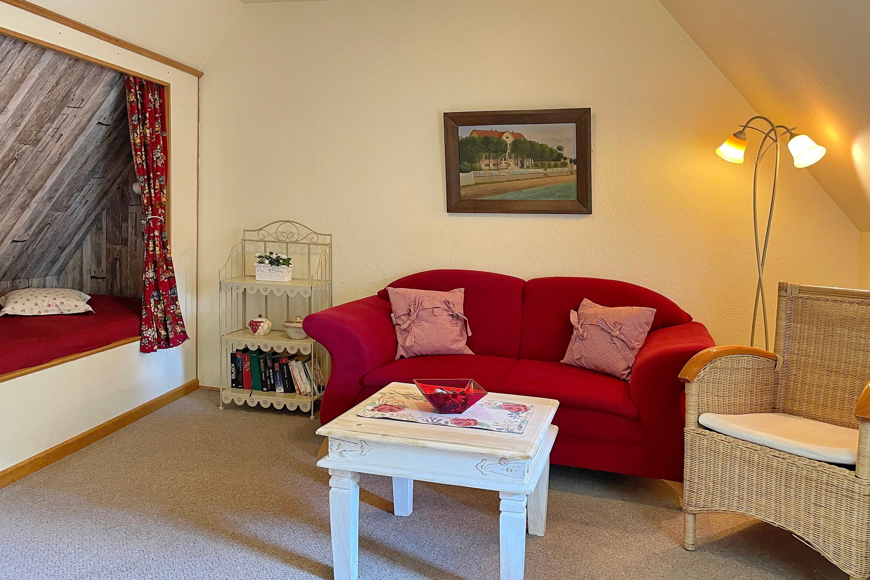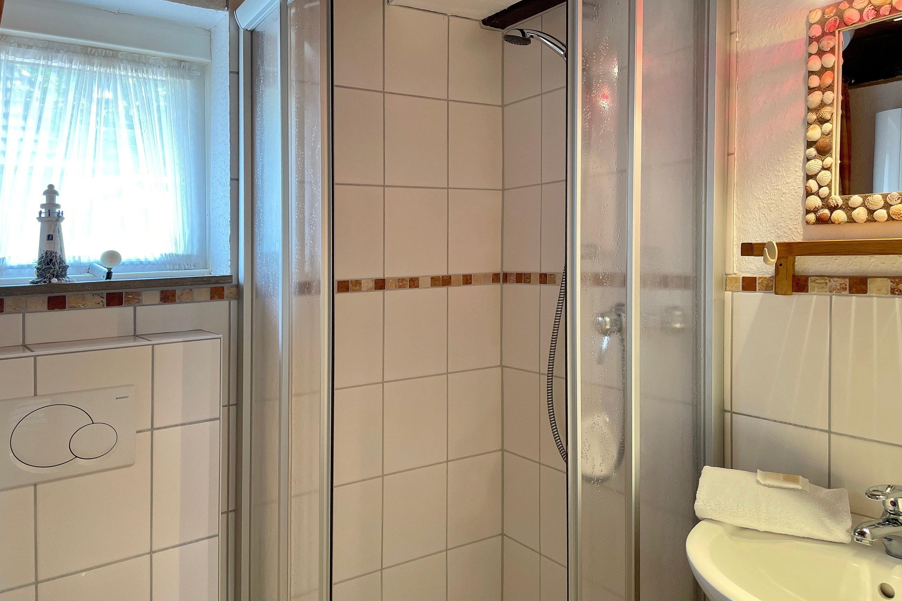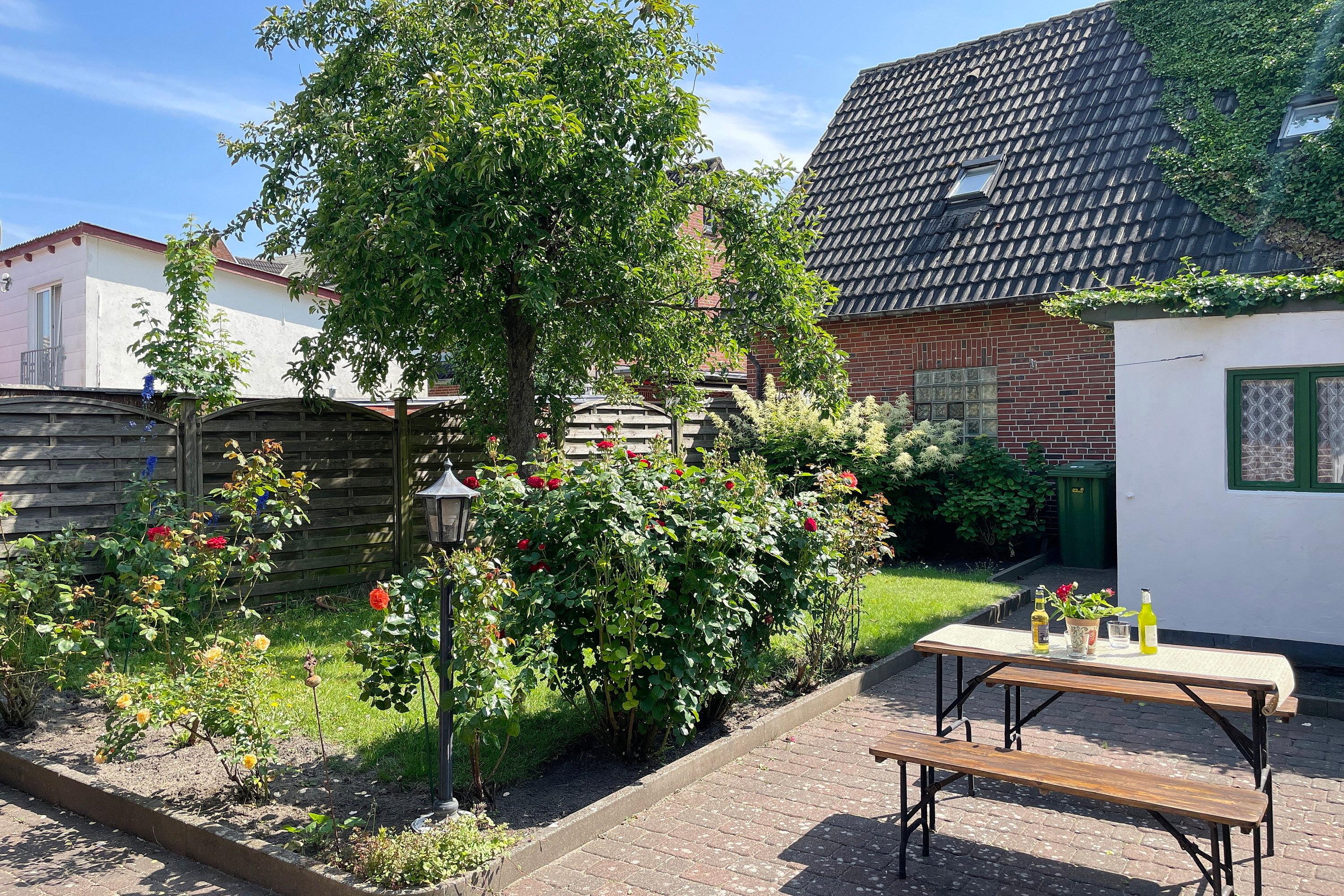 In der Hafenstaße im Herzen von Wyk liegt das gemütliche Haus Stamp, nur wenige Minuten vom Strand und vom Hafen entfernt. Alle wichtigen Versorgungseinrichtungen wie Bäckereien und Supermärkte befinden sich in unmittelbarer Umgebung, ebenso wie die Fußgängerzone und die Strandpromenade mit Boutiquen, Cafés, Kino, Restaurants und vielem mehr! Das Domizil Stamp ist ein reetgedecktes Friesenhaus für 6 Personen und heißt Sie mit seinem friesischen Charme Willkommen. Erleben Sie die friesische Gemütlichkeit und Gastfreundschaft in Ihrem Domizil. Im Erdgeschoss befinden sich 2 Schlafräume, eines mit Doppelbett (140 x 200 cm), das andere mit 2 Einzelbetten (80 x200 cm) und einem zusätzlichem Waschbecken. Das gemütliche Wohnzimmer mit WLAN, Musikanlage und Flachbild-TV lädt zum Entspannen ein und wirkt behaglich. Die Wohnküche mit Essplatz, Geschirrspüler, Backofen, Mikrowelle, Kaffeemaschine und vielem mehr führt Sie auf die Terrasse und den Garten, wo Sie herrliche Sonnenstunden im Sommer verbringen können. Eine kleine Besonderheit stellt die altfriesische Durchreiche ins Wohnzimmer dar. Auf beiden Etagen befindet sich ein Duschbad, das funktional und liebevoll gestaltet wurde. Das dritte Schlafzimmer mit einem Doppelbett (180 x 200cm) und einem zusätzlichem Kojenbett (80 x 180 cm) erreichen Sie über die Treppe, die zum ersten Obergeschoss führt. Hier gibt es weiterhin einen zusätzlichen Wohnraum mit einem weiteren Kojenbett (80x180cm), der sich hervorragend eignet, wenn Sie sich einmal zurückziehen möchten.