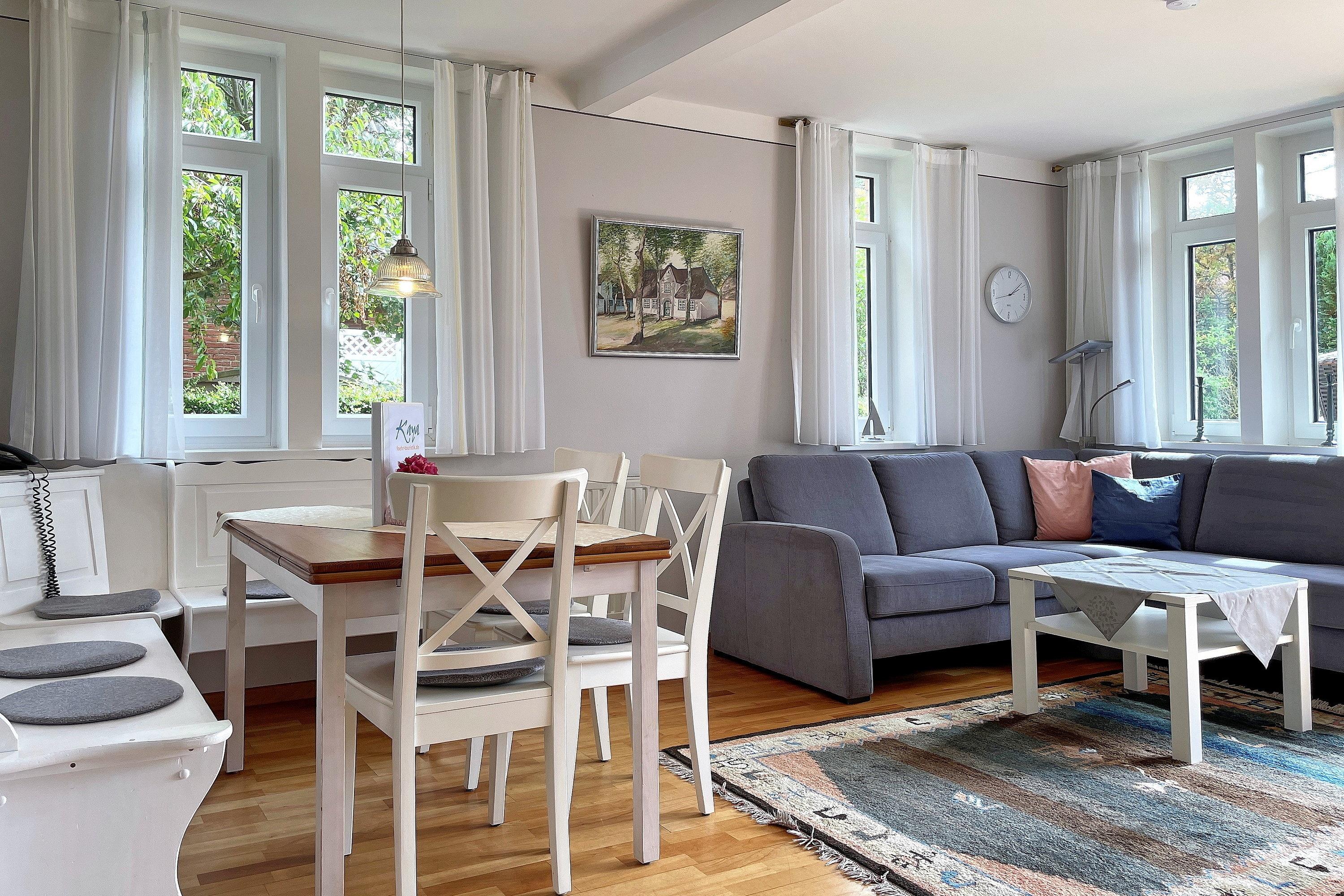 Charmant, sehr gut ausgestattet und sehr geschmackvoll sind beide Haushälften des Doppelhaus Stünkel in der Helgoländerstraße mitten im Herzen von Wyk. Die Eigentümer möchten das Sie sich hier genauso wohl fühlen wie sie selbst und das merkt man.