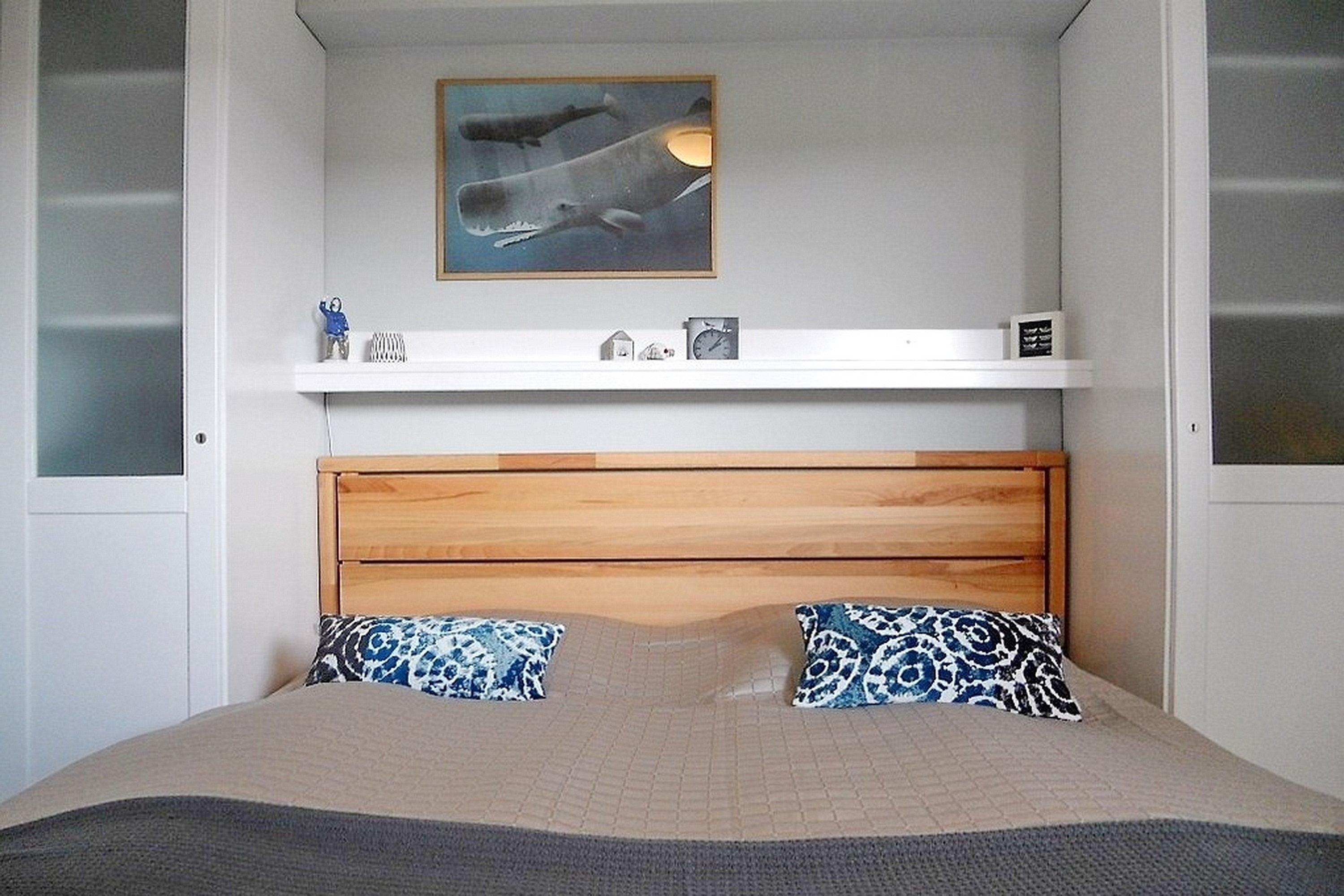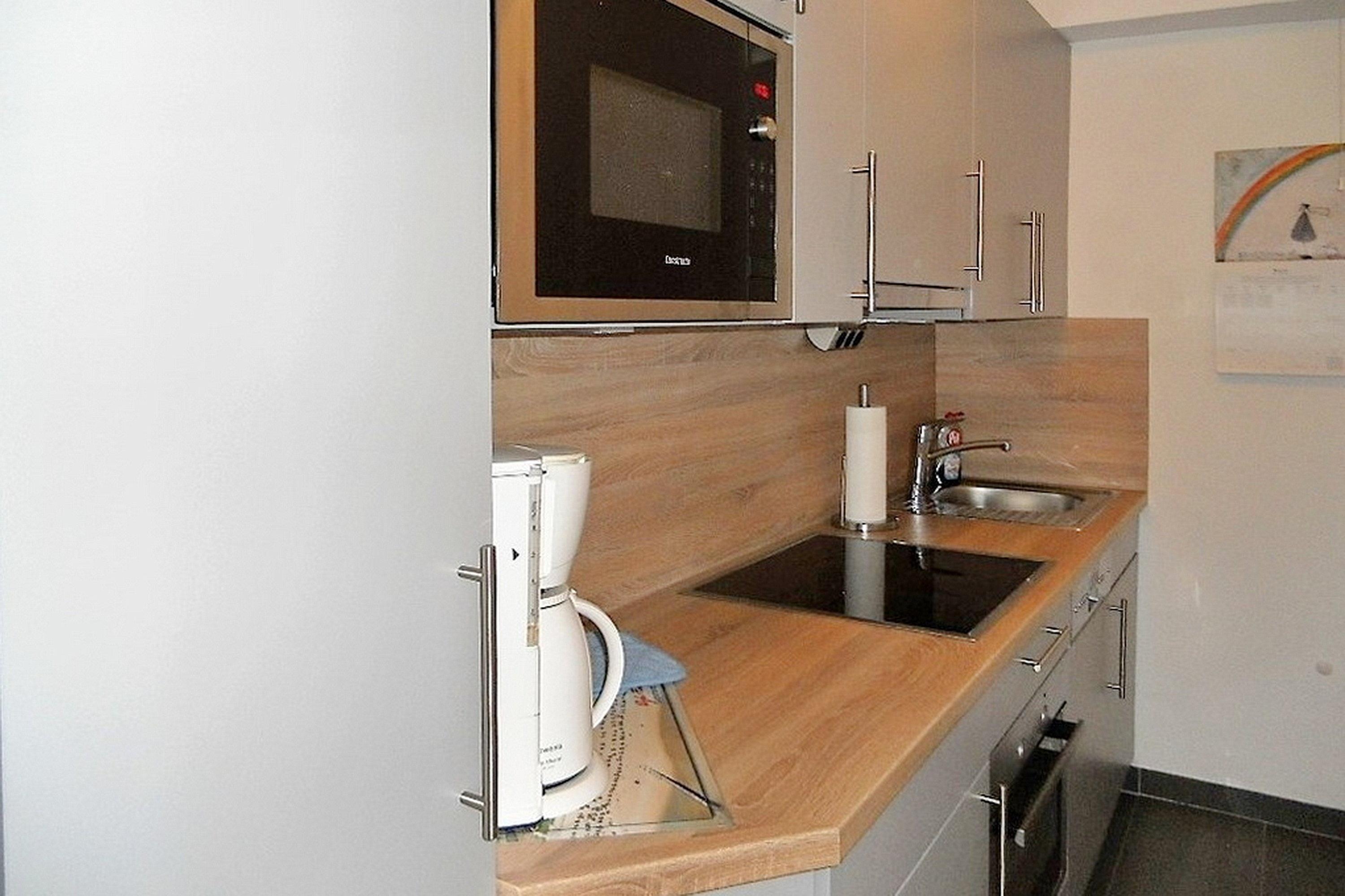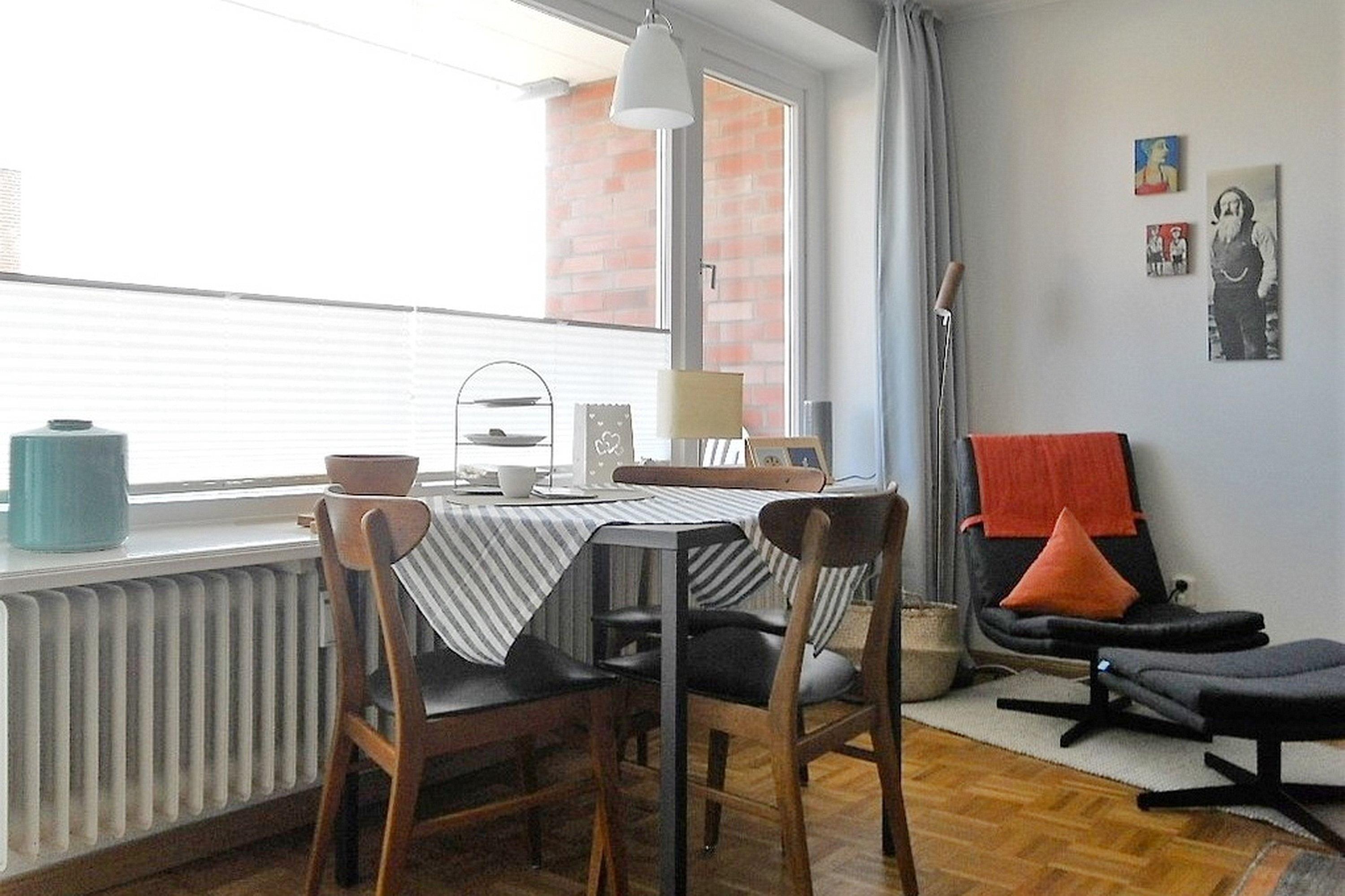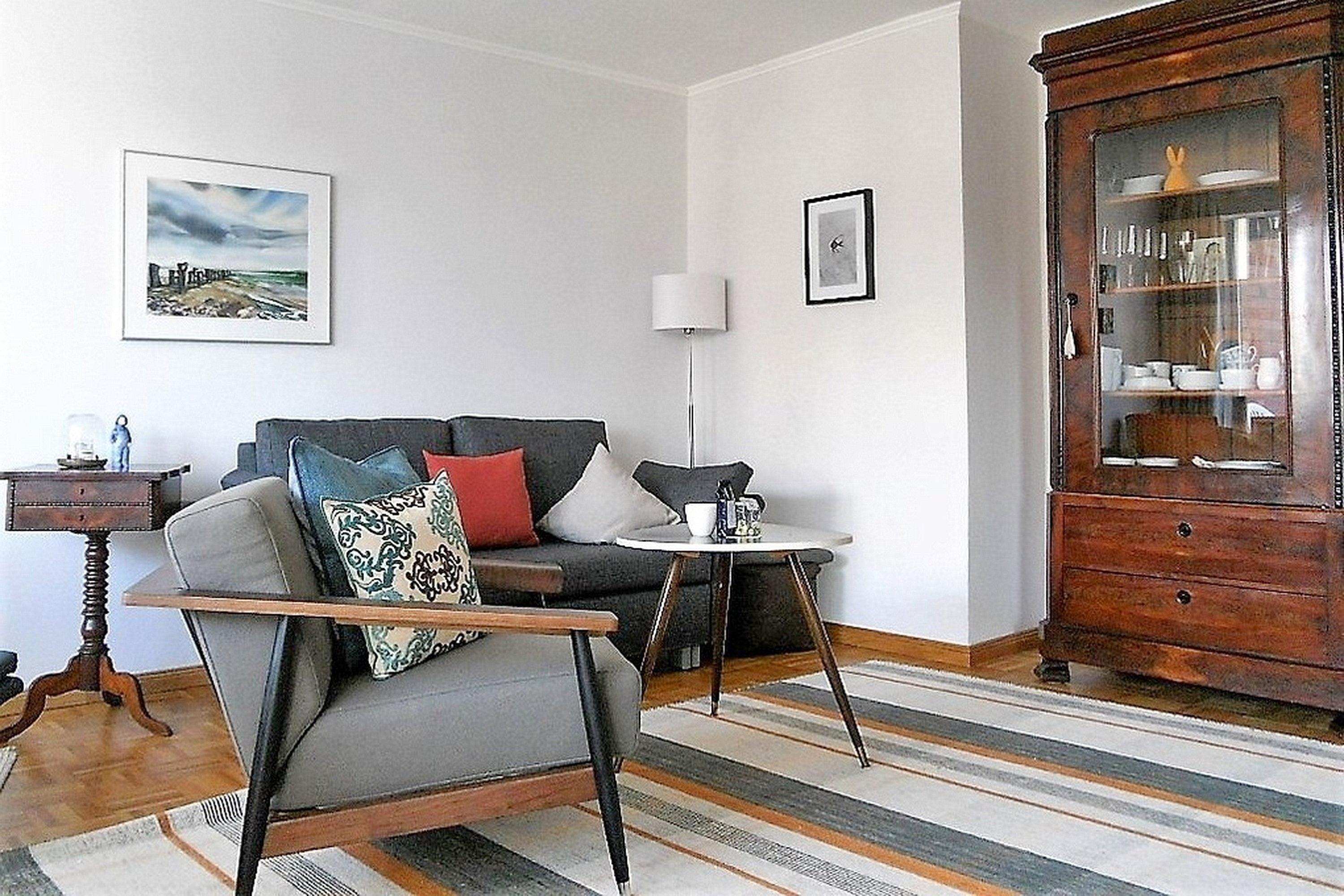 Nur wenige Gehminuten vom Südstrand entfernt befindet sich das Domizil Gmelinstraße 8. Die Eigentümer haben viel Wert auf hohen Komfort gelegt, der sich mit Modernität und Charme harmonisch verbindet. Der Wohnraum mit integrierter Essgruppe ist einladend hell und verfügt über WLAN, einen Flachbild-TV, Musikanlage (mit USB-Port), Telefon und wirkt durch die vielen hübschen Accessoires und die hochwertige Einrichtung sehr behaglich. Von hier aus gelangen Sie auf den Balkon mit Fliegengittertür, der herrliche Sonnenstunden verspricht. Das Schlafzimmer mit Doppelbett (180x200 cm) kann durch ein Rollo zusätzlich verdunkelt werden. Möchten Sie getrennt schlafen, befindet sich im Wohnzimmer eine bequeme Schlafcouch (130x205 cm). Die separate Küche mit kleinem Backofen, Mikrowelle, Geschirrspüler, eine Senseo-Kaffeemaschine und Wasserkocher ist gut ausgestattet, so dass das Kochen Freude macht. Probieren Sie doch vielleicht die friesischen Gerichte aus und genießen Sie diese am gemütlichen Essplatz, der sich direkt an der großen Fensterfront befindet. Das kleine Bad mit Dusche ist funktional und fein. Das Haus verfügt über einige Parkplätze und im Untergeschoss des Hauses finden Sie einen Waschraum mit Waschmaschine und Trockner, die gegen eine geringe Gebühr genutzt werden dürfen. Ihre Wohnung erreichen Sie bequem mit dem Aufzug oder Sie nutzen die Treppen. In der näheren Umgebung befindet sich der Südstrand mit einem beliebten Strandcafé, einem Schlachter und Bäcker, dem Pfannkuchenhaus, einigen Restaurants und ein kleiner Edekaladen. Nur wenige Schritte entfernt erreichen Sie schon das Meer und können den Föhrer Strand, die kreisenden Möwen über dem Wasser und die belebende Nordseeluft genießen. Schon jetzt verspricht das Domizil Gretchens To Huus herrliche Urlaubstage..