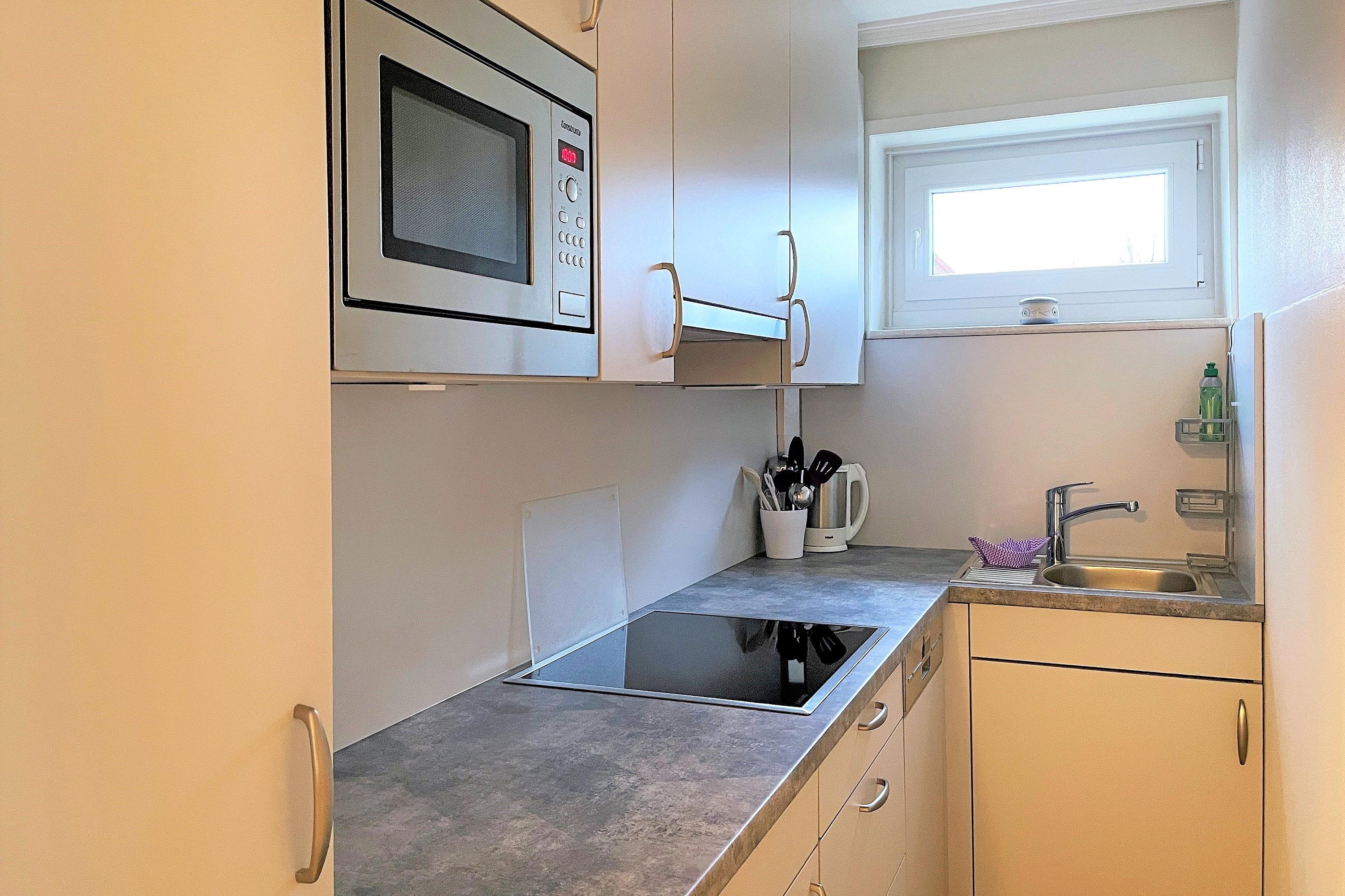 Nur wenige Gehminuten vom Südstrand entfernt, befindet sich unsere gemütliche Ferienwohnung "Lüttje Stuuv" mit ca. 42 qm im Erdgeschoss des Hauses. Der Wohnraum ist ebenso wie die übrige Wohnung hell und einladend gestaltet und die großen Fenster lassen reichlich Tageslicht hineinfluten. Relaxen Sie hier auf der bequemen Couch bei einem schönen Film oder nutzen Sie den integrierten Essbereich für einen lustigen Spieleabend. Von hier aus gelangen Sie auch auf den Balkon, wo Sie die gute Föhrer Luft bei einem interessanten Buch genießen können. Das Schlafzimmer ist mit einem Doppelbett (140 x 200 cm) ausgestattet, alternativ können Sie auch die Ottomane (80x200 cm) nutzen, wenn Sie getrennt nächtigen möchten. Das helle Duschbad ist funktional und verfügt zusätzlich über ein Fenster. In der gut ausgestatteten Küche können Sie sich selbst versorgen, wenn Sie nicht irgendwo in einem der netten Cafés oder Restaurants gehen essen möchten. Der praktische Mini-Backofen Airfryer ist hier ein wahres Allround-Talent und die Kaffeemaschine Senseo Duo erlaubt sowohl die Nutzung mit gemahlenem Kaffee als auch mit Kaffeepads. Machen Sie sich gleich selbst einen Eindruck und schauen Sie sich die Bilder der Wohnung an.. Wir freuen uns auf Sie!
