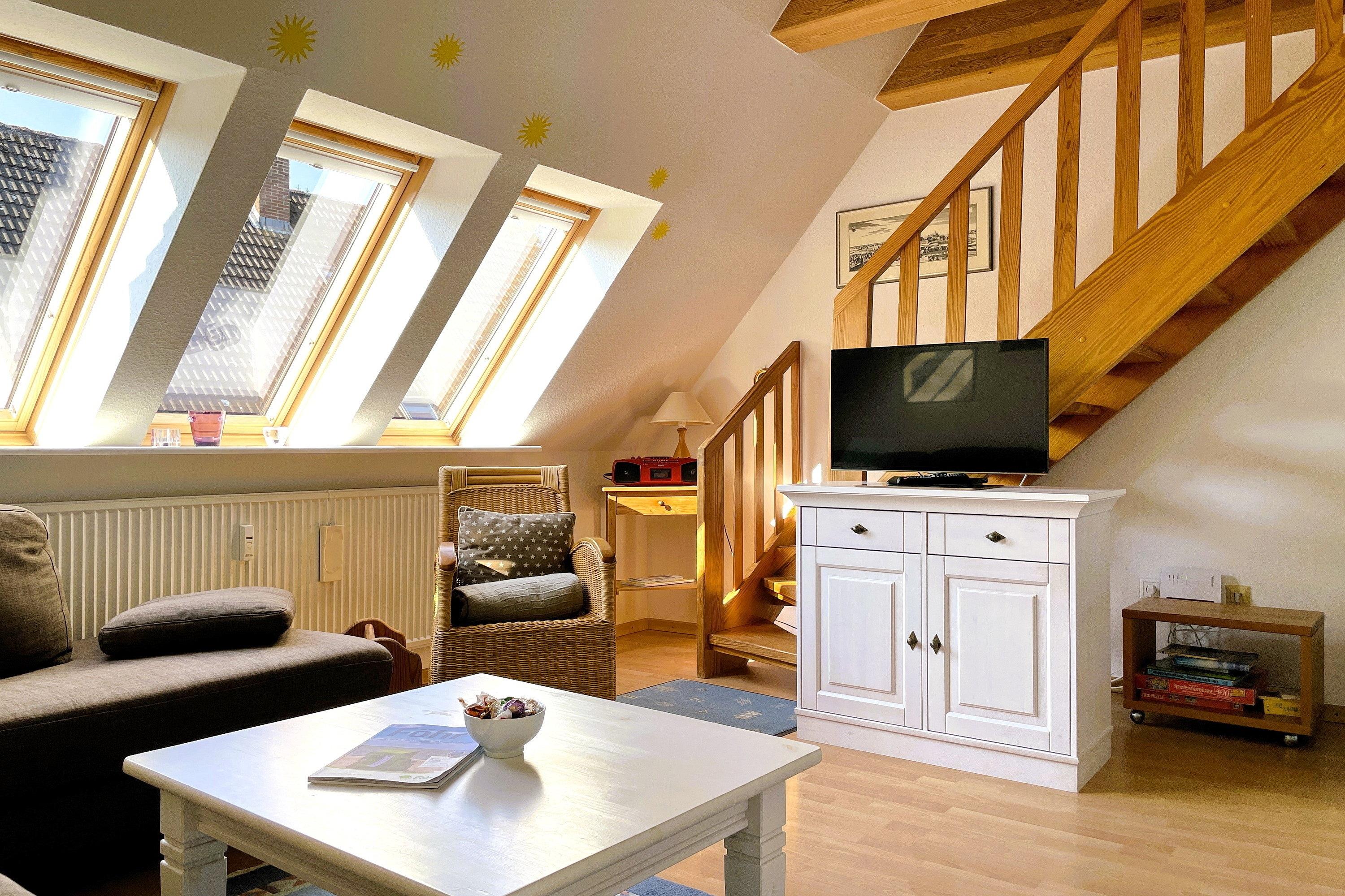 Nur wenige Metern entfernt vom beliebten Wyker Südstrand befindet sich in der Gmelinstraße diese hübsch eingerichtete Wohnung mit offener Schlafgalerie.