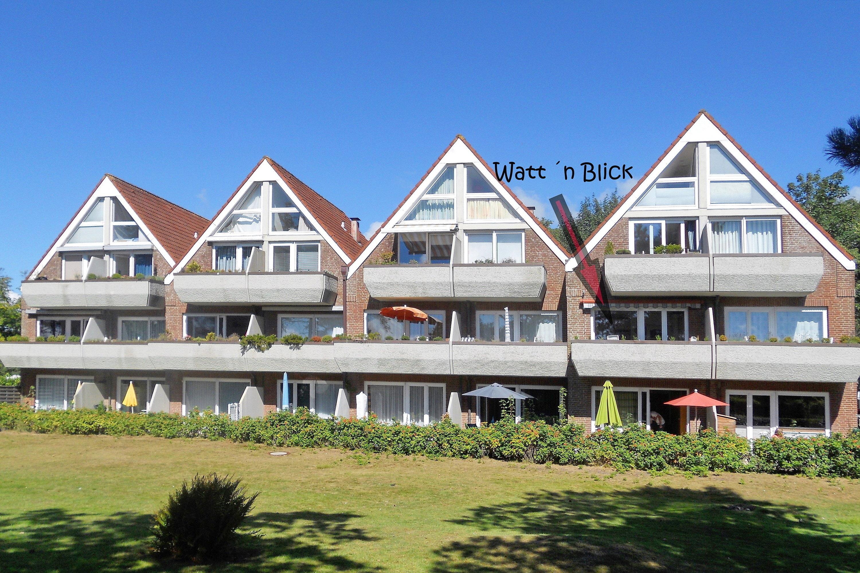 In einer schönen und gepflegten Anlage mehrerer Reihenhäuser befindet sich unsere Wohnung "Watt'n Blick" sehr ruhig gelegen und nur wenige Gehminuten entfernt vom Meer und dem Wyker Leuchtturm .