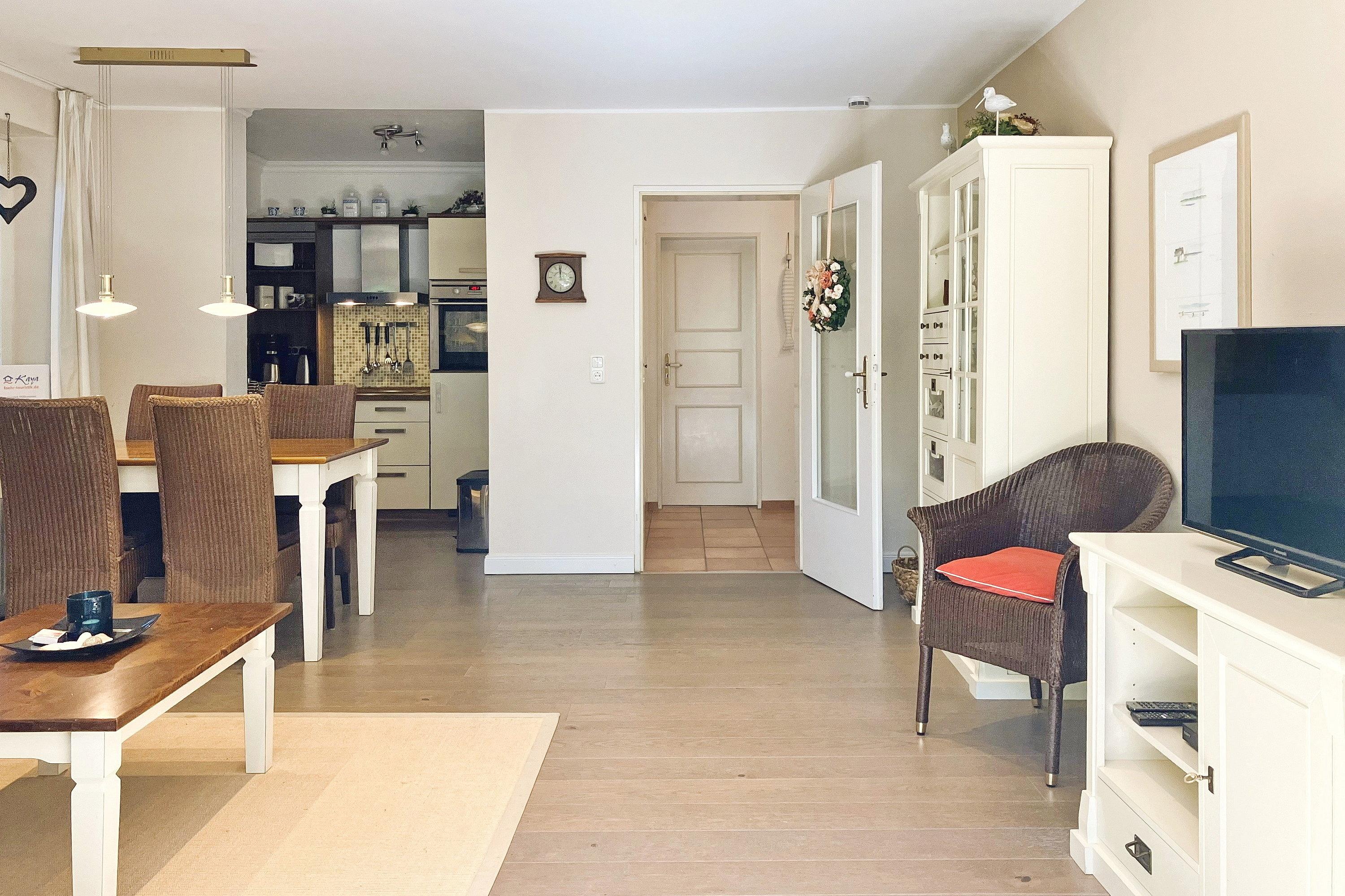 Früher war Föhr als die "grüne Insel" bekannt und in unserer "Wohnung 12 am Südstrand" wird man daran erinnert. Nur ca. 200m entfernt vom beliebten Wyker Südstrand liegt die Unterkunft mitten im alten Kurpark mit seinem vielseitigen Baumbestand. Hier können bis zu 4 Personen entspannen und vom stressigen Alltag abschalten. Genießen können Sie nicht nur die Lage inmitten der Natur, sondern auch Ihr Feriendomizil mit der hochwertigen und geschmackvollen Einrichtung, die keine Wünsche offen lässt. Zwei gemütliche Schlafzimmer, ein Bad mit ebenerdiger Dusche und der weitläufige Wohnbereich mit bequemer Sitzgruppe, Essecke und Küchenzeile sind charmant und gepflegt. Auf Ihrer Terrasse wartet in den Sommermonaten (ca. Mai bis ca. September) ein eigener Strandkorb auf Sie, der das Föhr-Urlaubs-Feeling vollendet. Buchen Sie gleich Ihren nächsten Föhr-Aufenthalt in unserer Wohnung 12 am Südstrand.