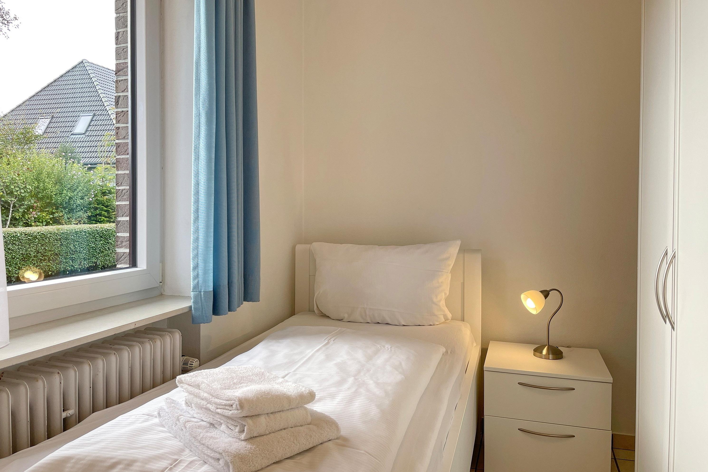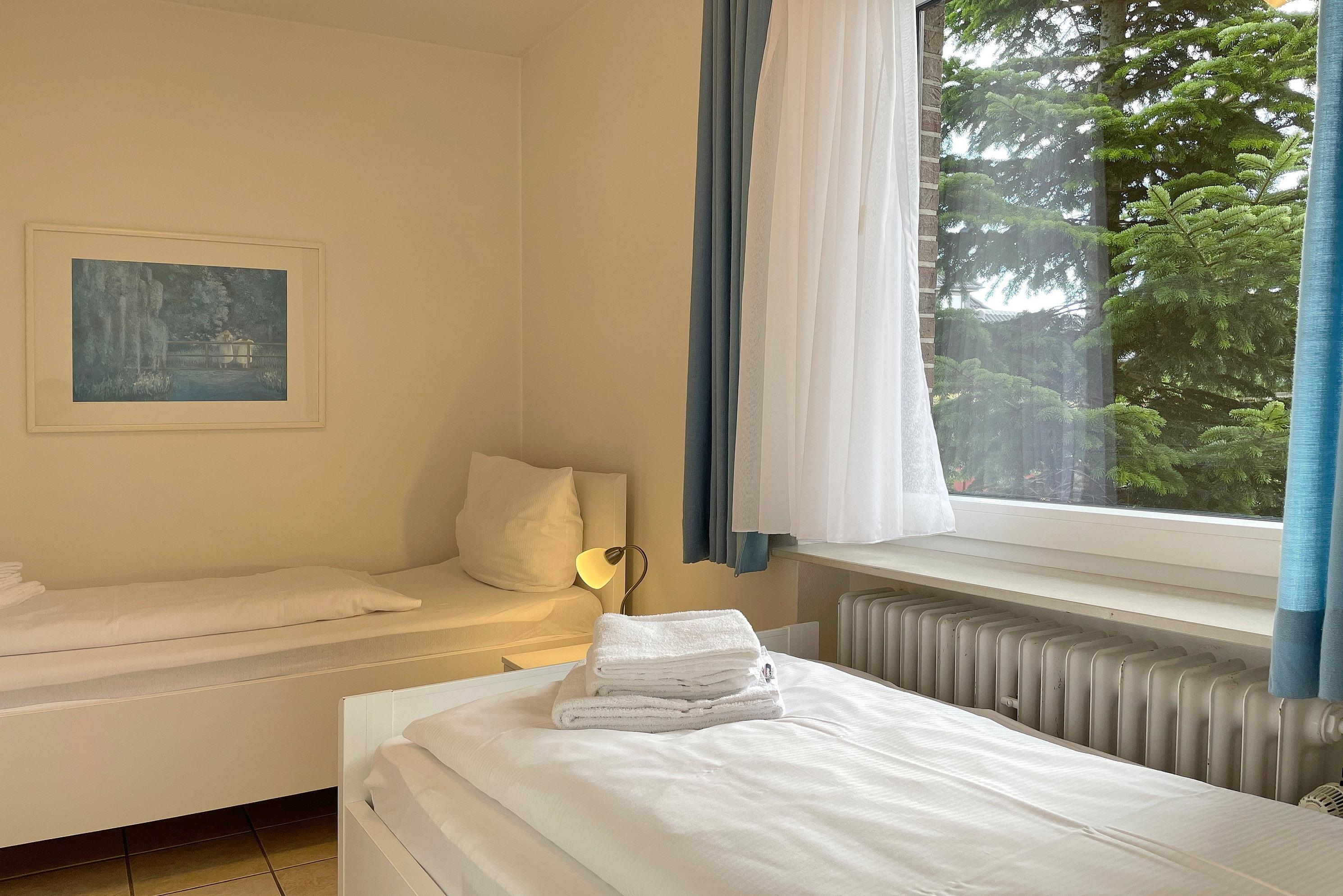 In zentrale und ruhiger Lage befindet sich die Anlage Gästehäuser Lindemann mit seinen 6 Ferienwohnungen auf einem 2000 qm großen und gepflegten Grundstück. Verbringen Sie Ihren Urlaub in einer der freundlich eingerichteten ca. 42 qm großen Ferienwohnungen, die alle sehr ähnlich eingerichtet sind und einen erholsamen Urlaub für 2 Personen anbieten. Das Wohnzimmer mit integrierter Essecke und Küchenzeile ist gemütlich eingerichtet und mit Flachbild-TV, W-Lan und Telefon ausgestattet. Von hier aus gelangen Sie auf die Terrasse, die in den Sommermonaten mit Gartenmöbeln ausgestattet ist. Die neu eingebaute Küchenzeile mit Mikrowelle, Geschirrspüler, Ceranfeldherd und Kühlschrank mit Gefrierfach lädt zum Kochen ein. Weiterhin erreichen Sie über den Flur das Badezimmer mit Dusche, Fenster und Doppelwaschtisch sowie ein Schlafzimmer mit 2 Einzelbetten (90 x200 cm) und Kleiderschrank. Das im Wohnzimmer befindliche Schrankbett (180 x 200 cm) dient als Ausweichmöglichkeit, falls Sie getrennt schlafen möchten. Die Wohnungen eignen sich auch hervorragend für befreundete Pärchen, die zusammen Ihren Urlaub verbringen, doch gerne ein wenig Privatsphäre dabei haben möchten. Sie finden in unmittelbarer Nähe alles, was Sie benötigen vom Einkaufladen, über den Bäcker, zu gemütlichen Cafés und Restaurants bis zur Wyker Innenstadt. Strand und Meer sind auch nicht weit entfernt und jederzeit einen Spaziergang wert. Ein gemeinschaftlicher Parkplatz am Haus und eine gemeinschaftlich, nutzbare Waschmaschine runden das Angebot ab.