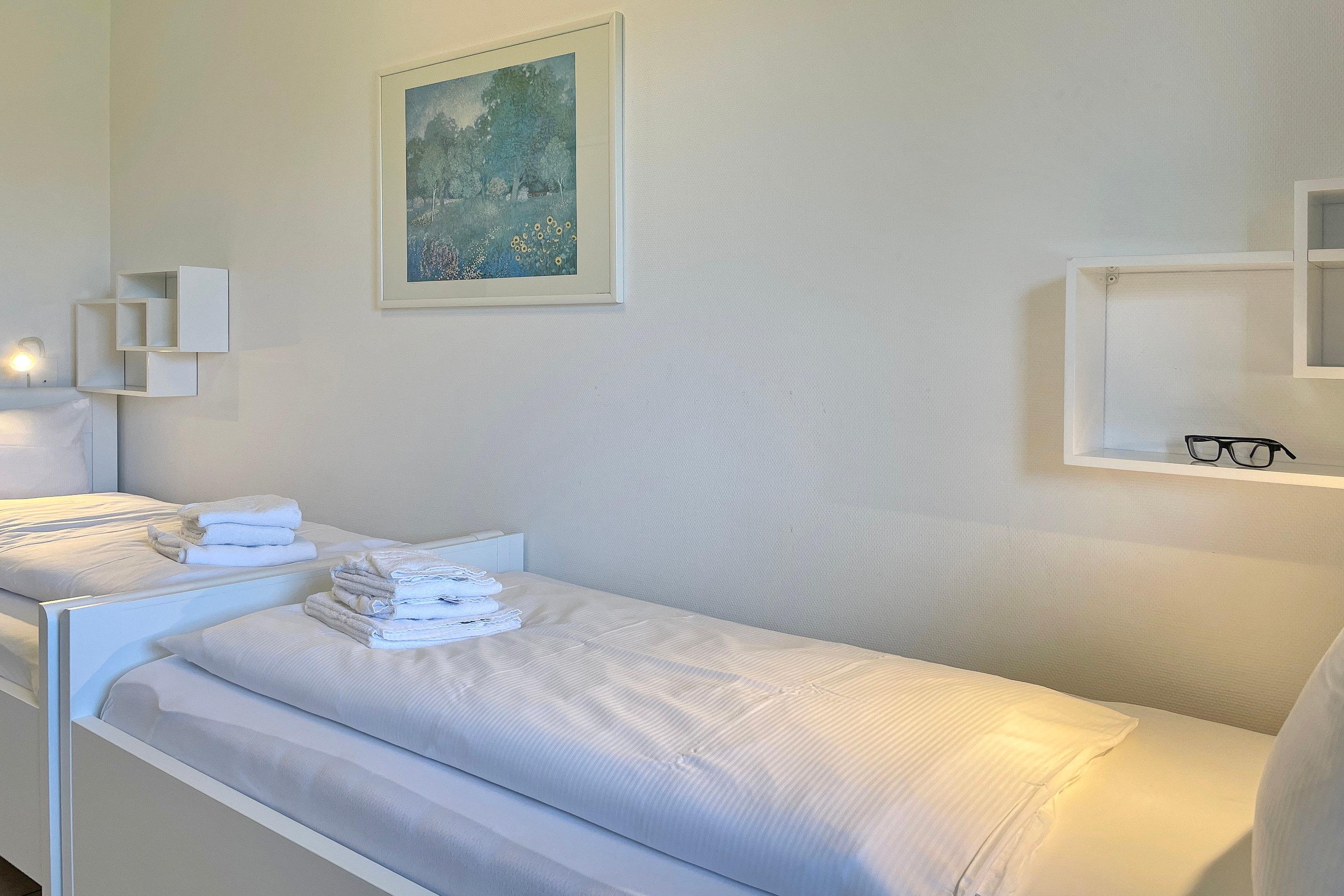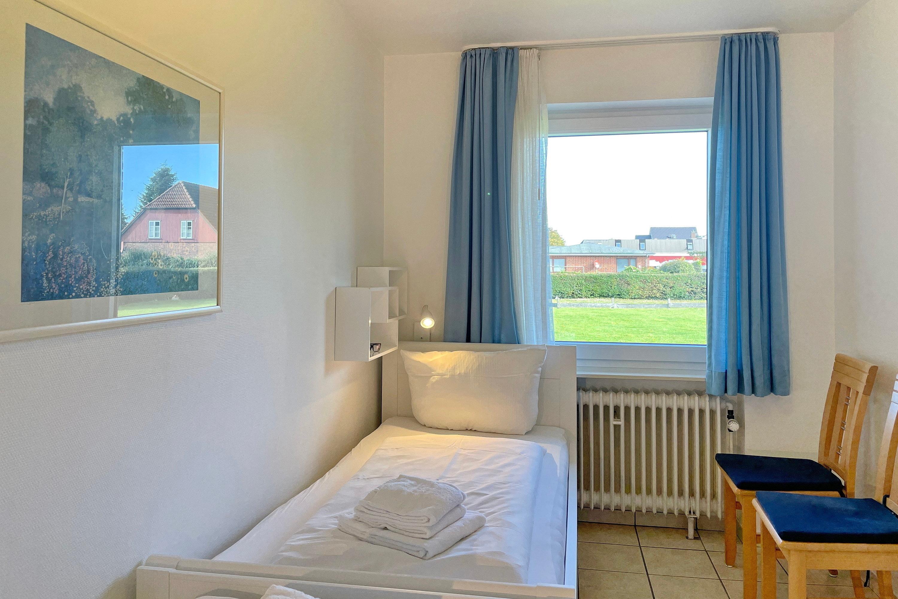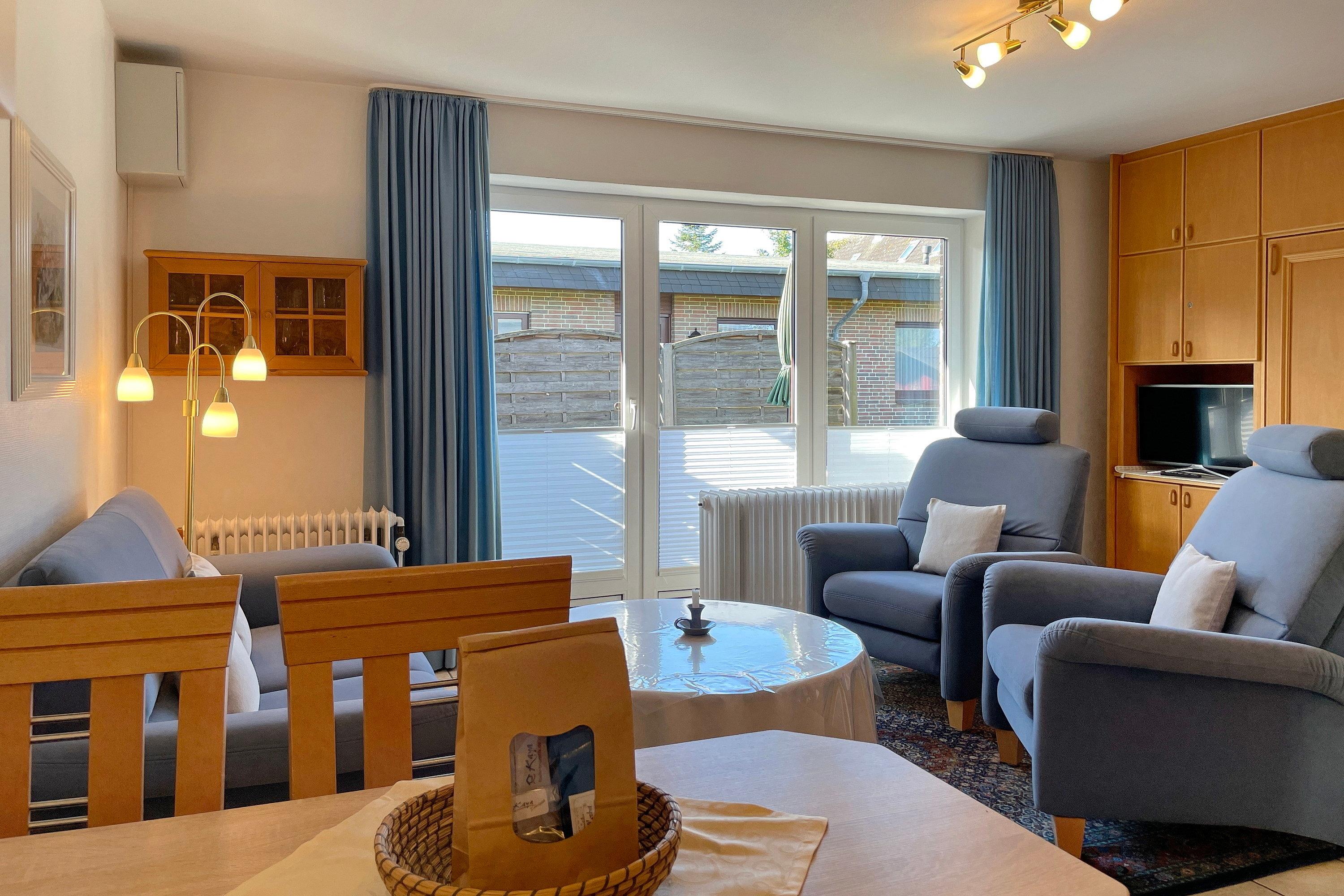 In zentrale und ruhiger Lage befindet sich die Anlage Gästehäuser Lindemann mit seinen 6 Ferienwohnungen auf einem 2000 qm großen und gepflegten Grundstück. Verbringen Sie Ihren Urlaub in einer der freundlich eingerichteten ca. 42 qm großen Ferienwohnungen, die alle sehr ähnlich eingerichtet sind und einen erholsamen Urlaub für 2 Personen anbieten. Das Wohnzimmer mit integrierter Essecke und Küchenzeile ist gemütlich eingerichtet und mit Flachbild-TV, W-Lan und Telefon ausgestattet. Von hier aus gelangen Sie auf die Terrasse, die in den Sommermonaten mit Gartenmöbeln ausgestattet ist. Die neu eingebaute Küchenzeile mit Mikrowelle, Geschirrspüler, Ceranfeldherd und Kühlschrank mit Gefrierfach lädt zum Kochen ein. Weiterhin erreichen Sie über den Flur das Badezimmer mit Dusche, Fenster und Doppelwaschtisch sowie ein Schlafzimmer mit 2 Einzelbetten (90 x200 cm) und Kleiderschrank. Das im Wohnzimmer befindliche Schrankbett (180 x 200cm) dient als Ausweichmöglichkeit, falls Sie getrennt schlafen möchten. Die Wohnungen eignen sich auch hervorragend für befreundete Pärchen, die zusammen Ihren Urlaub verbringen, doch gerne ein wenig Privatsphäre dabei haben möchten. Sie finden in unmittelbarer Nähe alles, was Sie benötigen vom Einkaufladen, über den Bäcker, zu gemütlichen Cafés und Restaurants bis zur Wyker Innenstadt. Strand und Meer sind auch nicht weit entfernt und jederzeit einen Spaziergang wert. Ein gemeinschaftlicher Parkplatz am Haus und eine gemeinschaftlich, nutzbare Waschmaschine runden das Angebot ab.