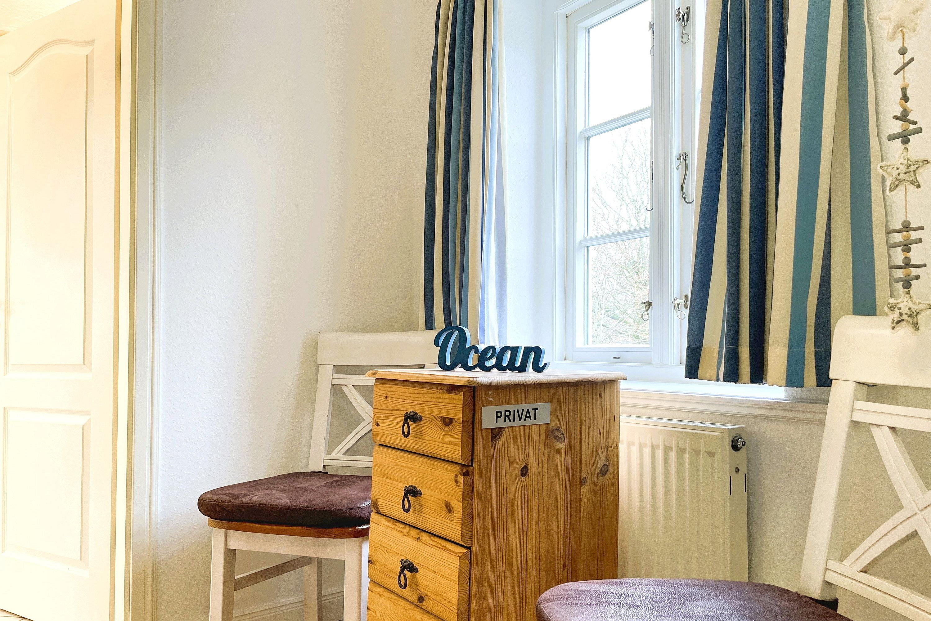 Der Bäcker befindet sich ebenfalls in fußläufiger Entfernung. Direkt hinter dem Haus befindet sich ein Waldstück, dass zum Spazierengehen einlädt. Kinder werden sich an der gemeinschaftlich nutzbaren Spielecke mit Klettergerüst, Schaukel und Sandkasten erfreuen und können in der näheren Umgebung zwei weitere Spielplätze erkunden oder Sie machen einen Waldspaziergang zum Abenteuerspielplatz Löwenhöhle. Von der Strandstraße erreichen Sie des Weiteren auch die Inseldörfer mit PKW oder Rad gut, die viele Angebote bereithalten sei es der Hofladen in Alkerum, das beliebte Café Stellys Hüs in Oldsum oder die Lembecksburg in Borgsum. Die Wyker Innenstadt erreichen Sie mit dem Fahrrad in 15 Minuten, die zum Bummeln einlädt. Der PKW-Stellplatz befindet sich direkt vor der Tür.