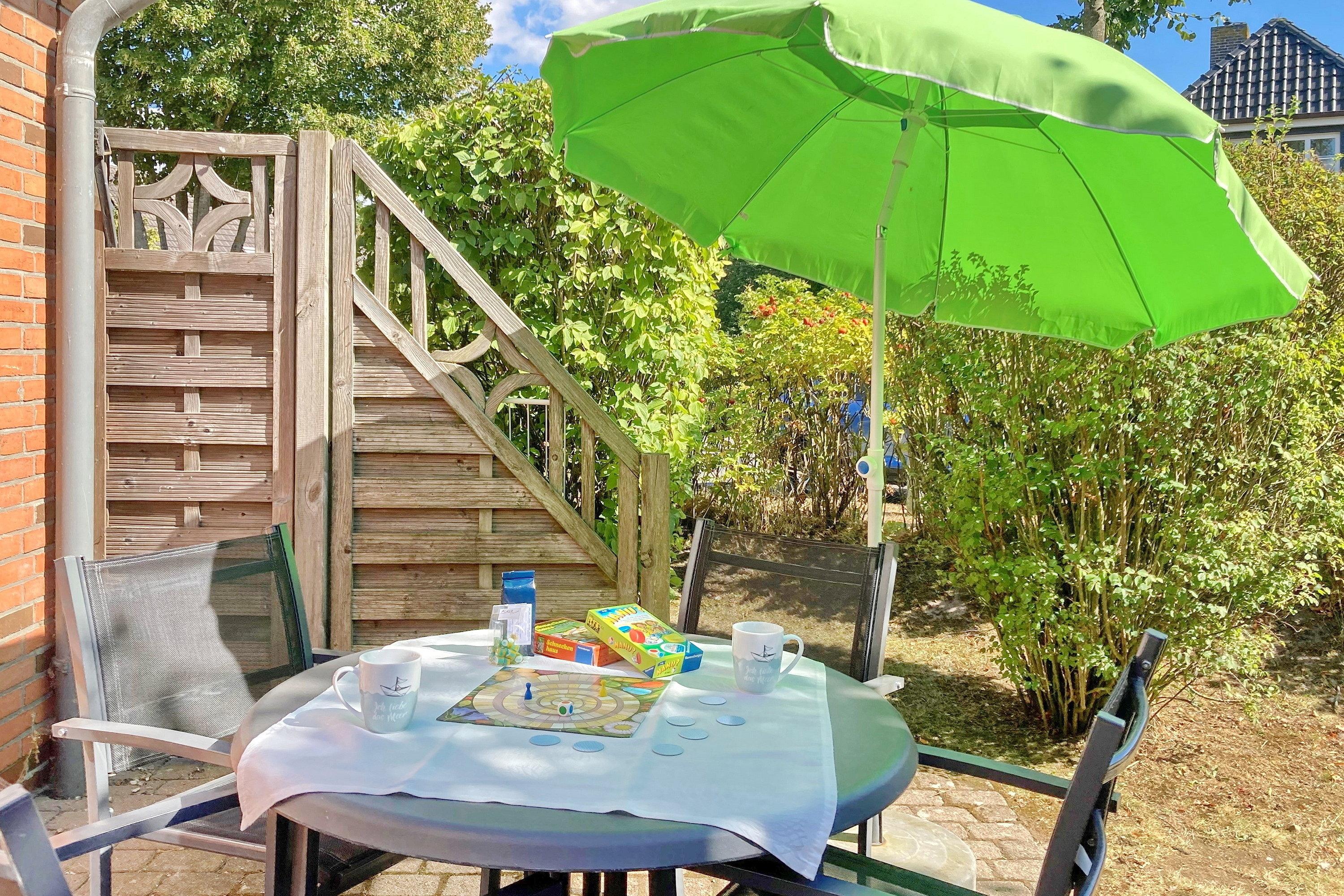 Charmantes Ferienhaus mit Terrasse, Spielplatz und kostenlosem Strandkorb in Wyk, nur 1 km vom Südstrand entfernt.