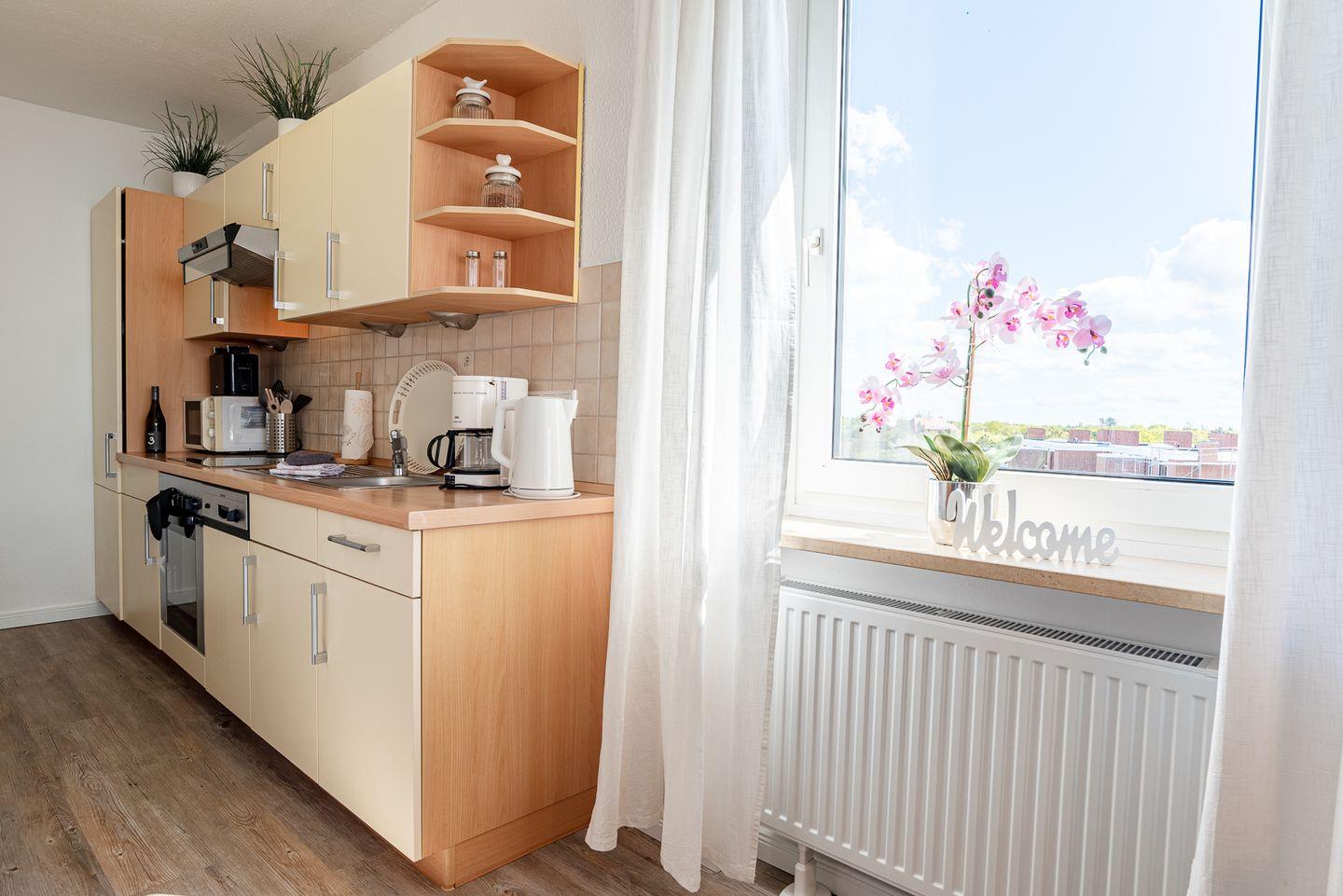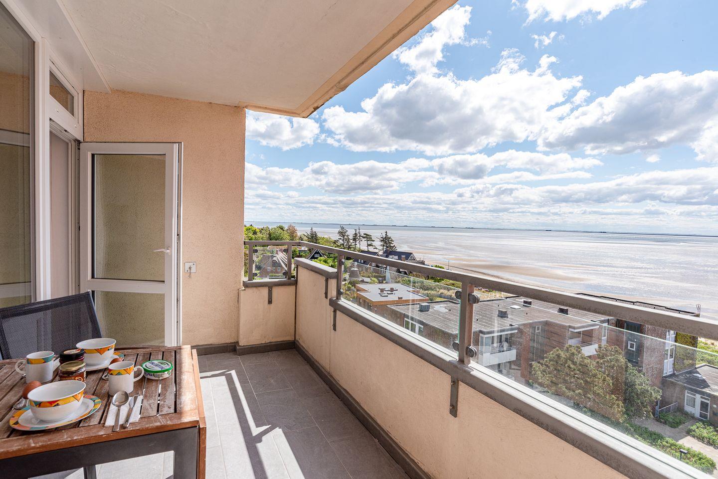 Genießen Sie im 6. Stock mit Südbalkon den traumhaften Blick auf die Halligen, Amrum und die Nordsee in Wyk.