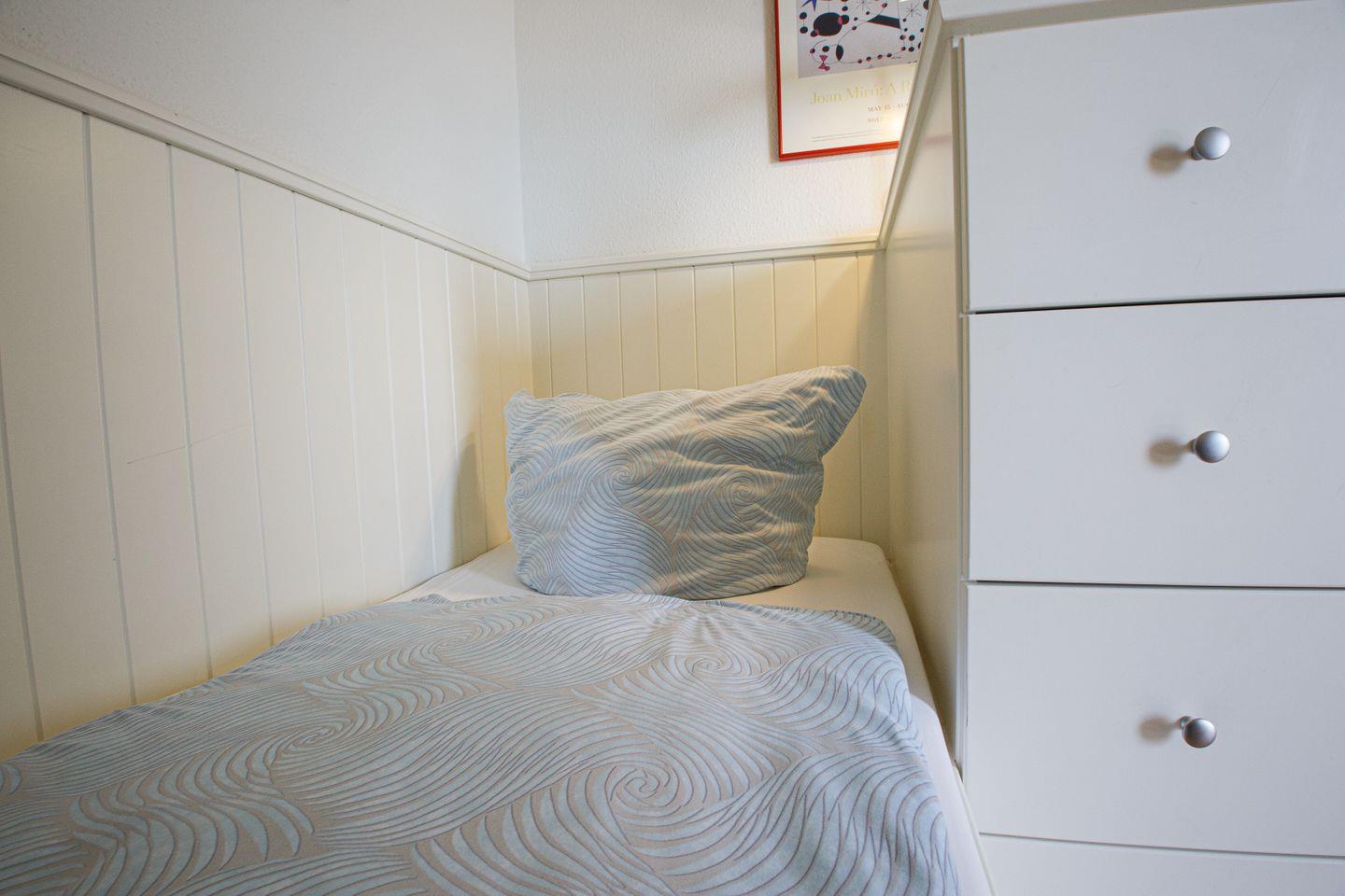 Meeresrauschen liegt im VI. OG im Haus Uthlande , ist ca. 55 qm groß und für 4 Personen eingerichtet. Sie besteht aus einem Wohnraum, zwei Schlafräumen, einer vom Wohnzimmer abgehenden Küchenzeile, einem Duschbad mit WC sowie einer Diele mit Abstellecke. Der vom Wohnzimmer aus zugängliche, überdachte Balkon hat volle Südlage und bietet einen herrlichen Blick zum Strand, zur Nordsee und den vorgelagerten Halligen. Balkonmöbel sind vorhanden. Der gesamte Wohn- und Schlafbereich ist mit Laminatboden ausgestattet. Ein Schlafraum verfügt über ein Doppelbett, der zweite Schlafraum über zwei Einzelbetten. Bei dieser Wohnung haben Sie Schwimmbadbenutzung im Hause und WLAN-Nutzung inklusive.