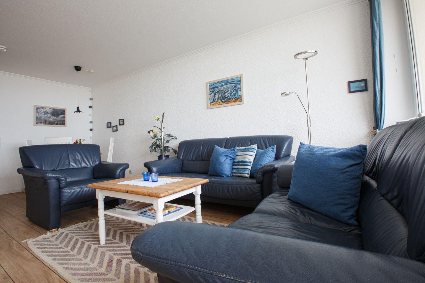 Unser Ferienobjekt "Sonnendeck" liegt im 4. OG und bietet für bis zu vier Personen Platz . Die gemütlich und komplett eingerichtet Wohnung besteht aus einem Wohnzimmer, zwei Schlafräumen, einer vom Wohnzimmer abgehenden, getrennten Küche, Diele und einem modernen Duschbad mit WC. Die Wohnung wurde umfassend renoviert. Alle Räume sind im modernen Landhausstil gehalten und mit hochwertigem Schiffsboden-Parkett ausgelegt. Der vom Wohnzimmer aus zugängliche Balkon in Südlage bietet einen herrlichen Blick über die Nordsee und Halligen. Balkonmöbel sind vorhanden. Fenster in jedem Raum des gesamten Wohn- und Schlafbereiches ermöglichen einen großzügigen Panoramablick auf das Wasser. Die Wohnung verfügt über einen kostenlosen WLAN-Zugang sowie Schwimmbad- und Saunanutzung im Hause.