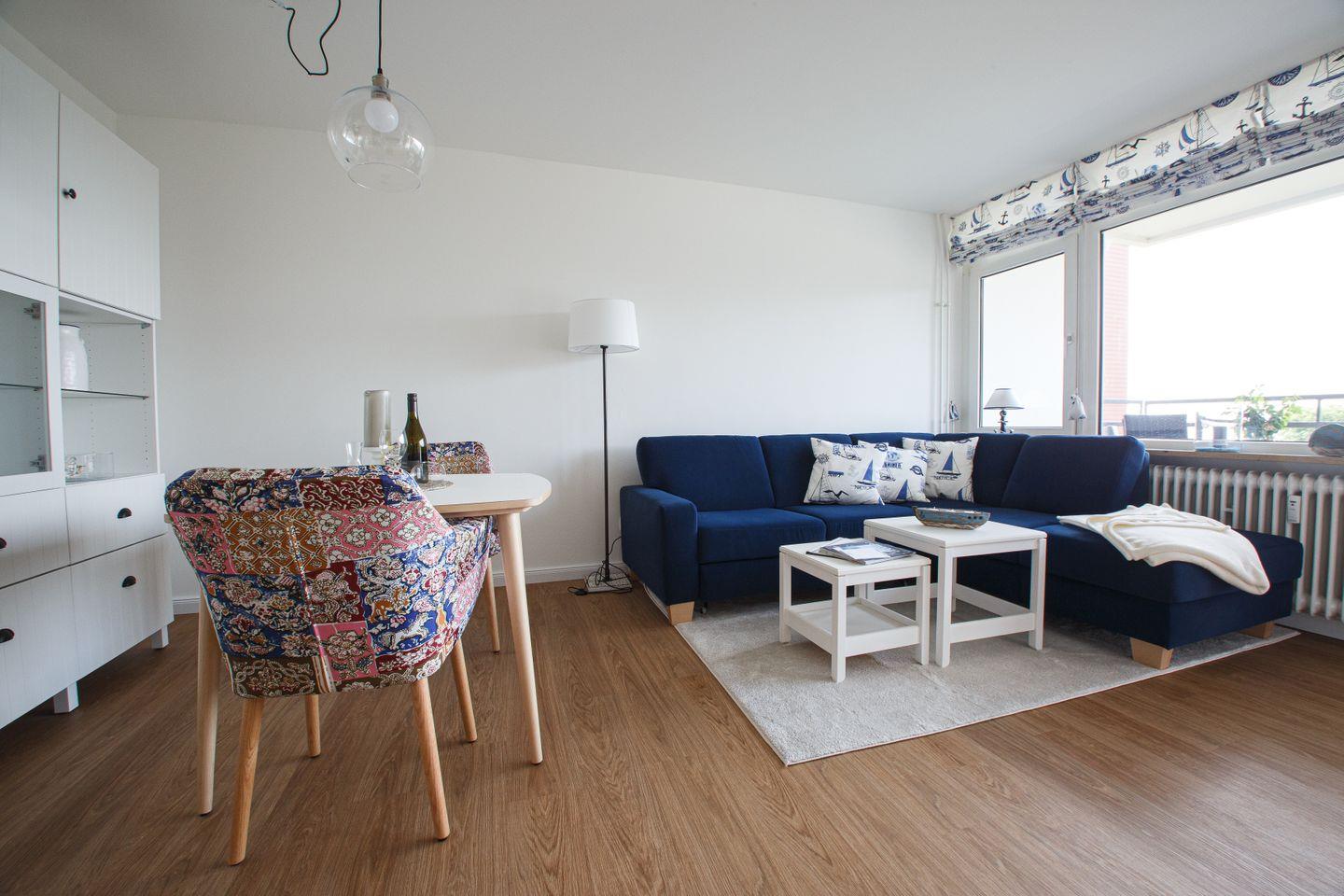 Die frisch renovierte Wohnung 13 trägt den Namen "Seestern" und bietet mit Südlage einen herrlichen Blick auf die Nordsee. Ihr Domizil befindet sich im zweiten Obergeschoss , bequem mit Fahrstuhl erreichbar. Unser Objekt bietet mit 45 qm Größe einen Entspannungsraum für bis zu 3 Personen. Sie besteht aus einem Wohnraum, einem Schlafraum mit Doppelbett (160 cm Breite), einer vollwertigen neuen Küche, einem Duschbad mit WC und einer Diele.