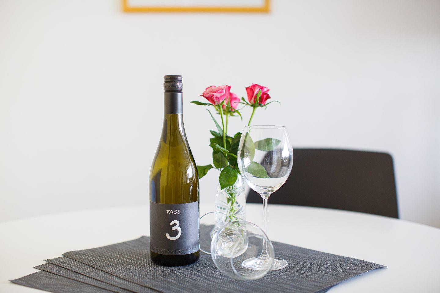 Das moderne Badezimmer ist mit einer Dusche mit Wanne, Waschbecken, Spiegel, Haartrockner, WC sowie Hand- und Badetüchern ausgestattet. Außerdem stehen Ihnen eine gemeinschaftlich nutzbare Waschmaschine und ein Trockner zur Verfügung. Staubsauger, Wäscheständer und Reinigungsmittel sind ebenfalls vorhanden, sodass die Alltagsorganisation erleichtert wird. Die Erstausstattung mit Bettwäsche, Handtüchern und Geschirrhandtüchern ist im Angebot enthalten.