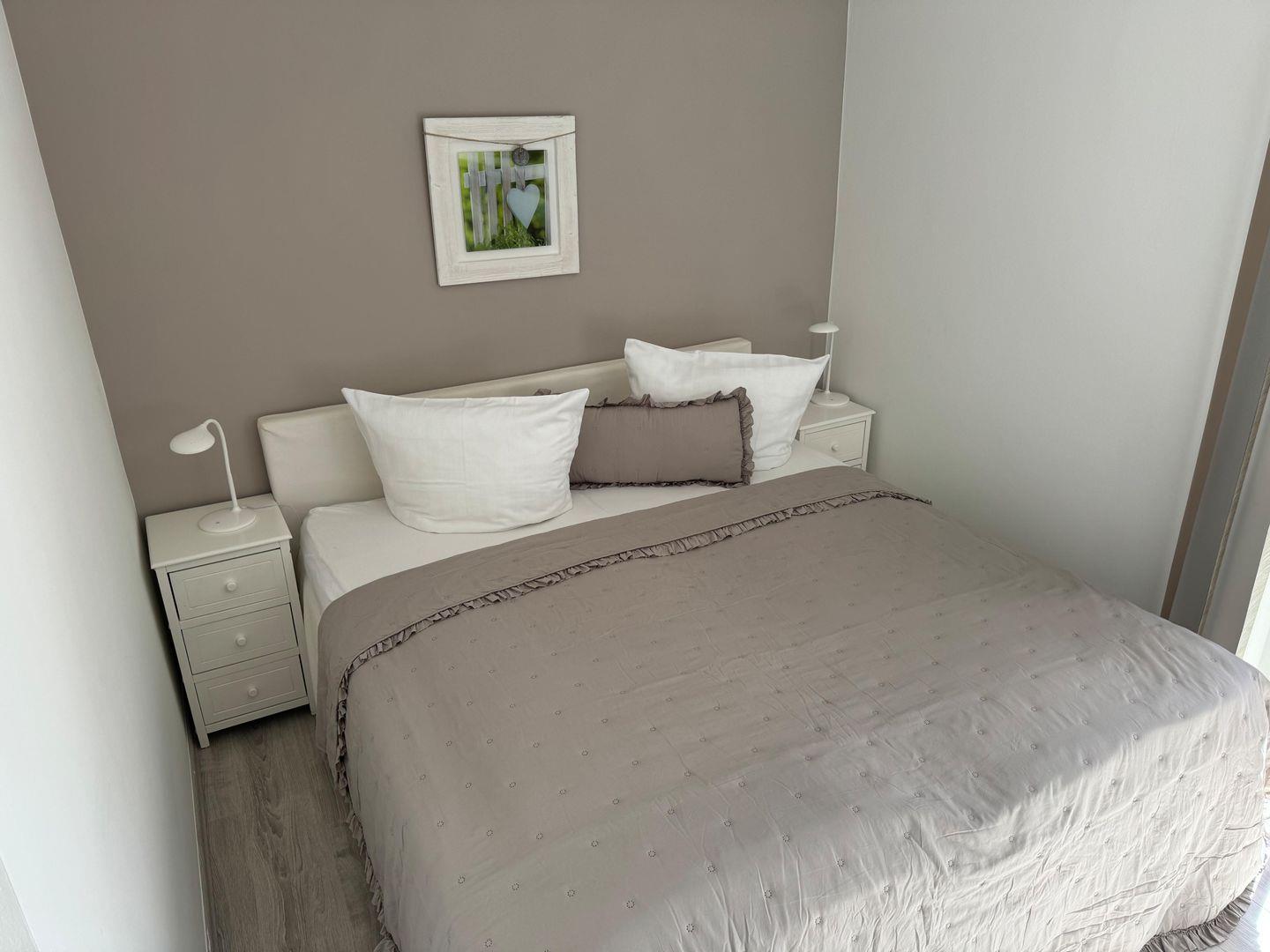 Im Erdgeschoss befinden sich zwei Schlafräume und das Duschbad. Vom Elternschlafzimmer aus haben Sie Zugang zur kleinen Terrasse.