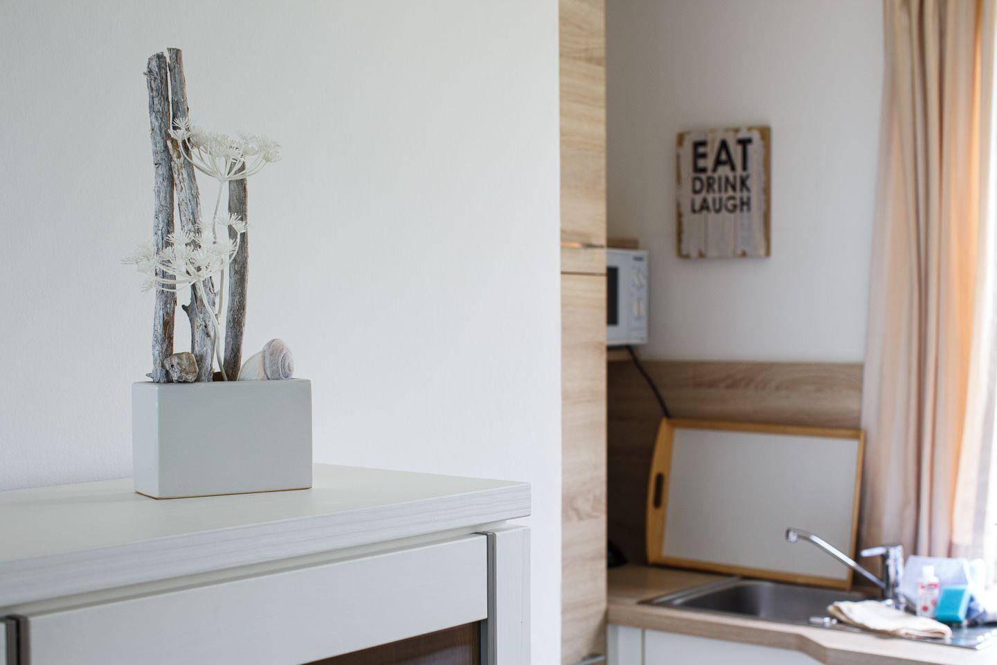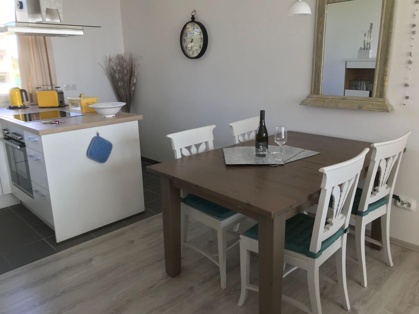 Im Obergeschoss können Sie von der gemütlichen Wohnküche direkt aufs Meer sehen und haben Zugang zum Balkon!
